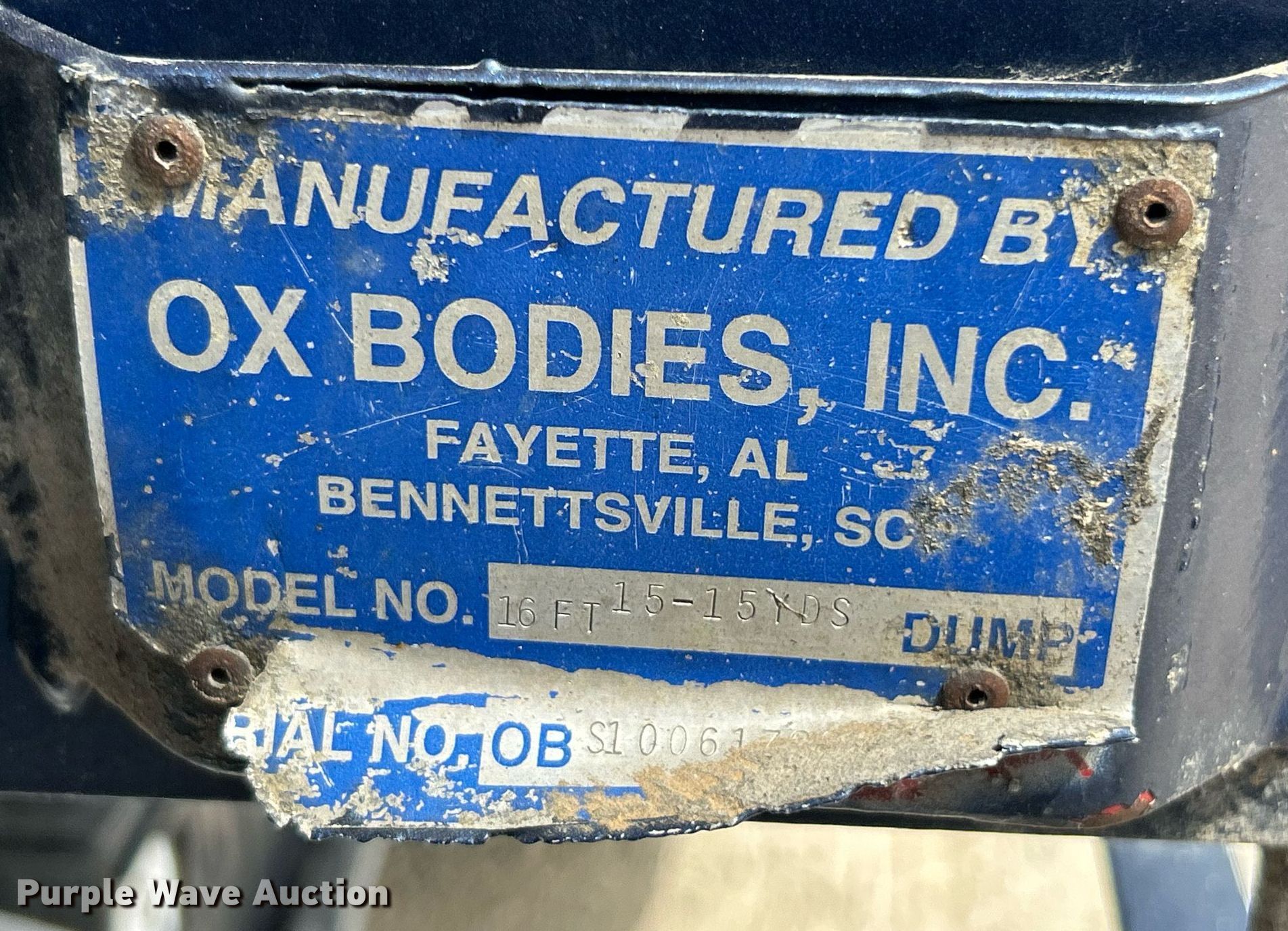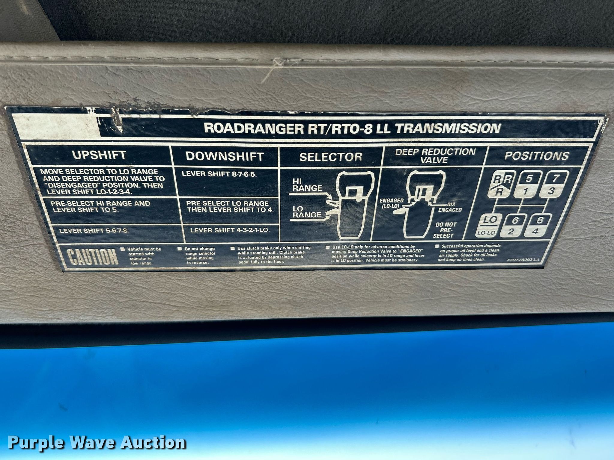 2007 Sterling L8500 dump truck. Miles: 353,399 on odometer, Hours: 6,477 on meter, VIN: 2FZHAWDJ47AY33050. Engine Mercedes Benz MBE-900, Displacement: 7.2L, Cylinders: 6, Fuel type: Diesel, Engine brake. Transmission Eaton Fuller 8LL, Manual, Speed: 10. Chassis Double frame, Axles: Triple, Pusher axle, Differential lock: Inter-axle, Suspension: Spring over walking beam, Brakes: Air, PTO, GVWR: 58,000 lbs FAWR: 18,000 lbs, IAWR: 20,000 lbs, RAWR: 20,000 lbs, Lift axle GAWR: 13,200 lbs. Interior AC, Heat, Cruise control. Features Dump bed Ox Bodies, Capacity: 15 cu.yd., 16' L x 96" W, Side height: 47", Bed type: Steel, Roll tarp, Ram: Single, End gate: Air operated. Tires Front: 315/80R22.5, Rear: 11R22.5, Lift axle: 255/70R22.5. Notes Engine replaced November 2024 at 344,030 miles. View repairs. Missouri title. Title distribution may be delayed up to 14 days from verification of funds. Premier Top Soil. Moscow Mills, MO 63362