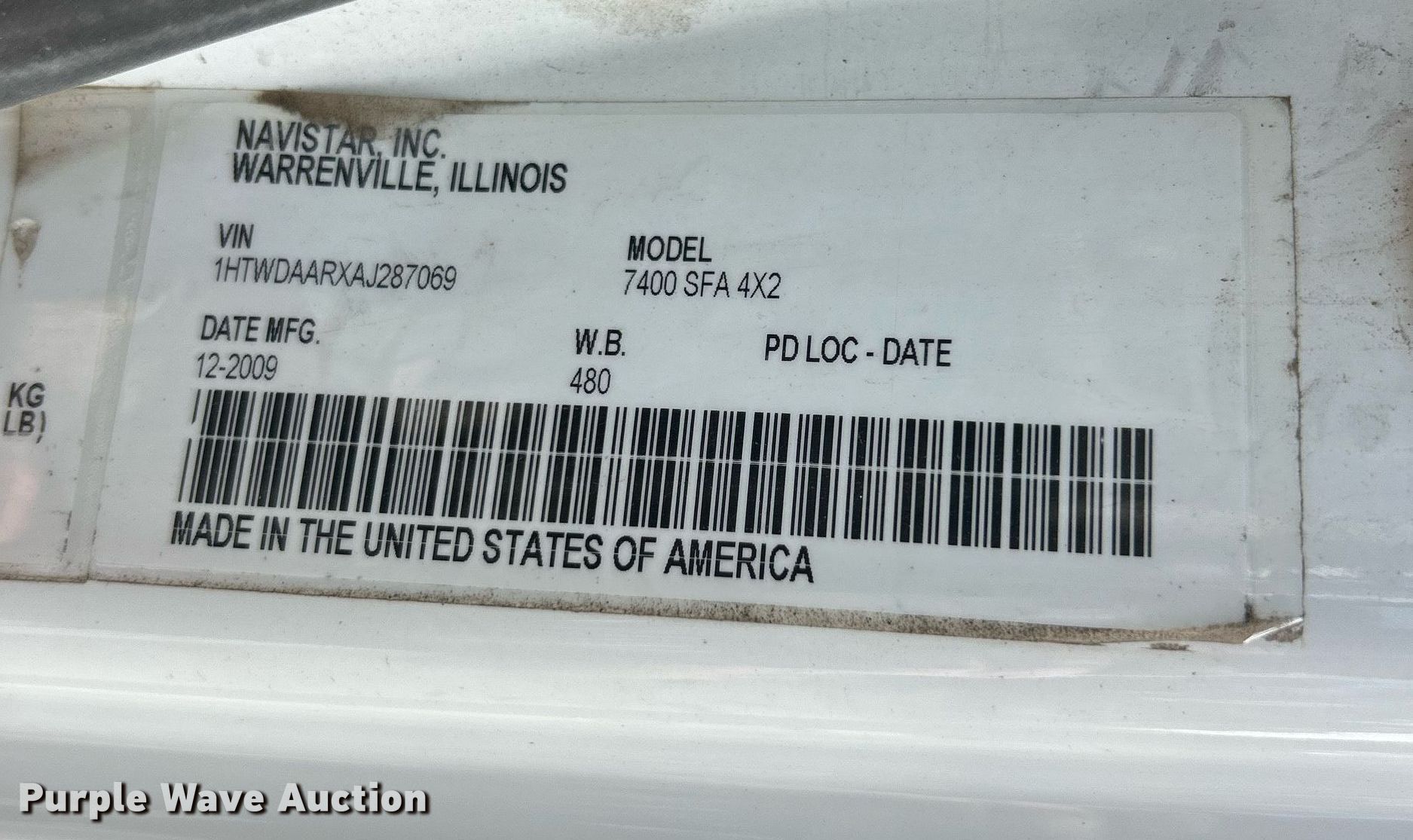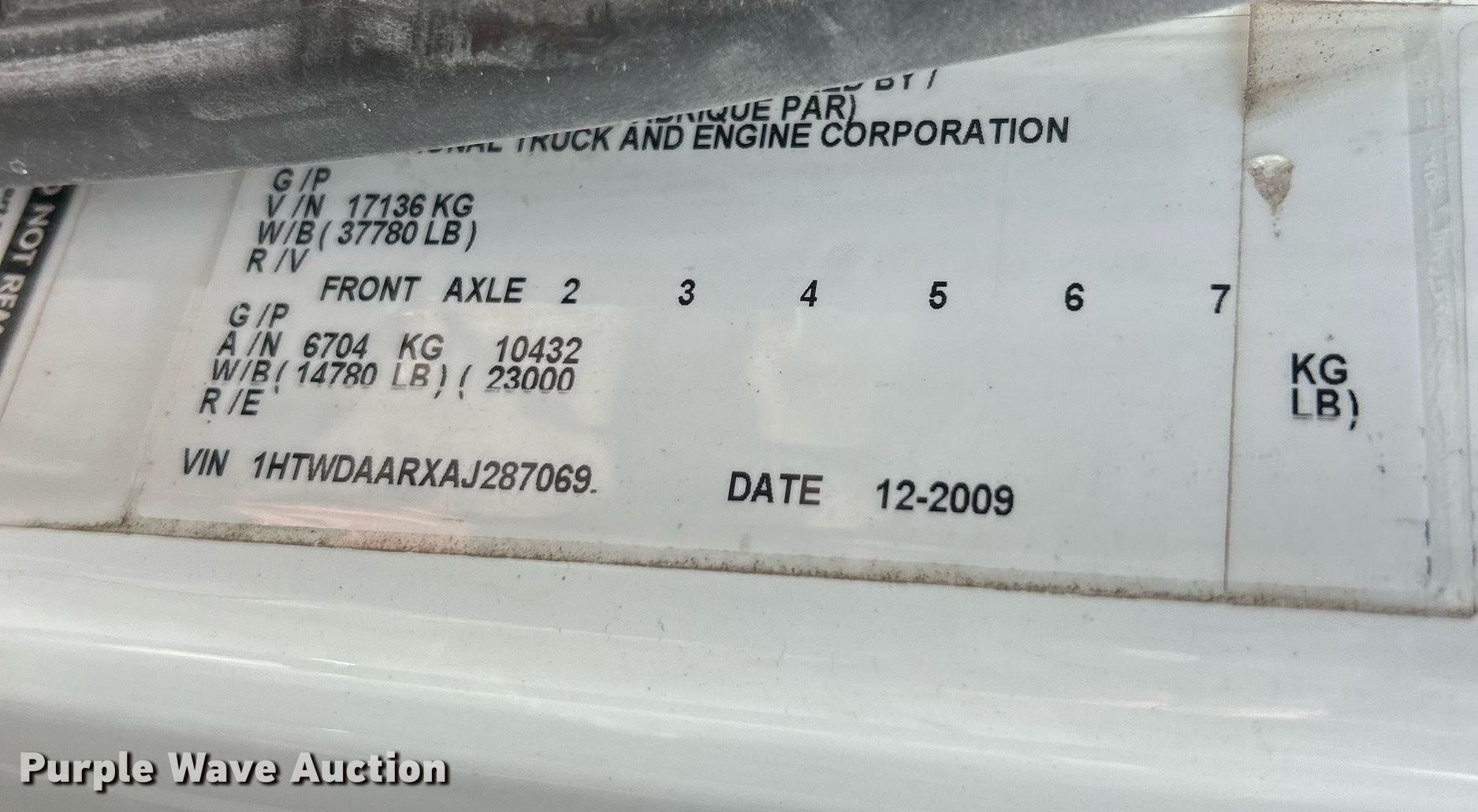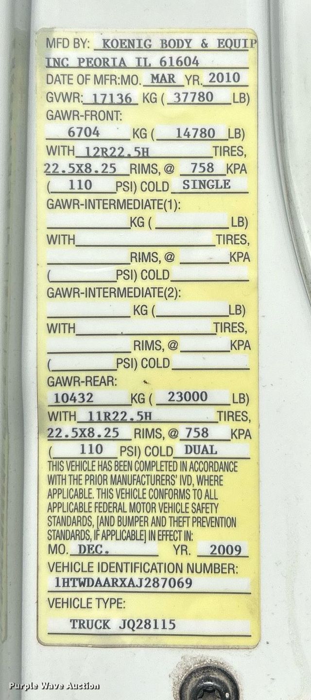 - VIN: 1HTWDAARXAJ287069