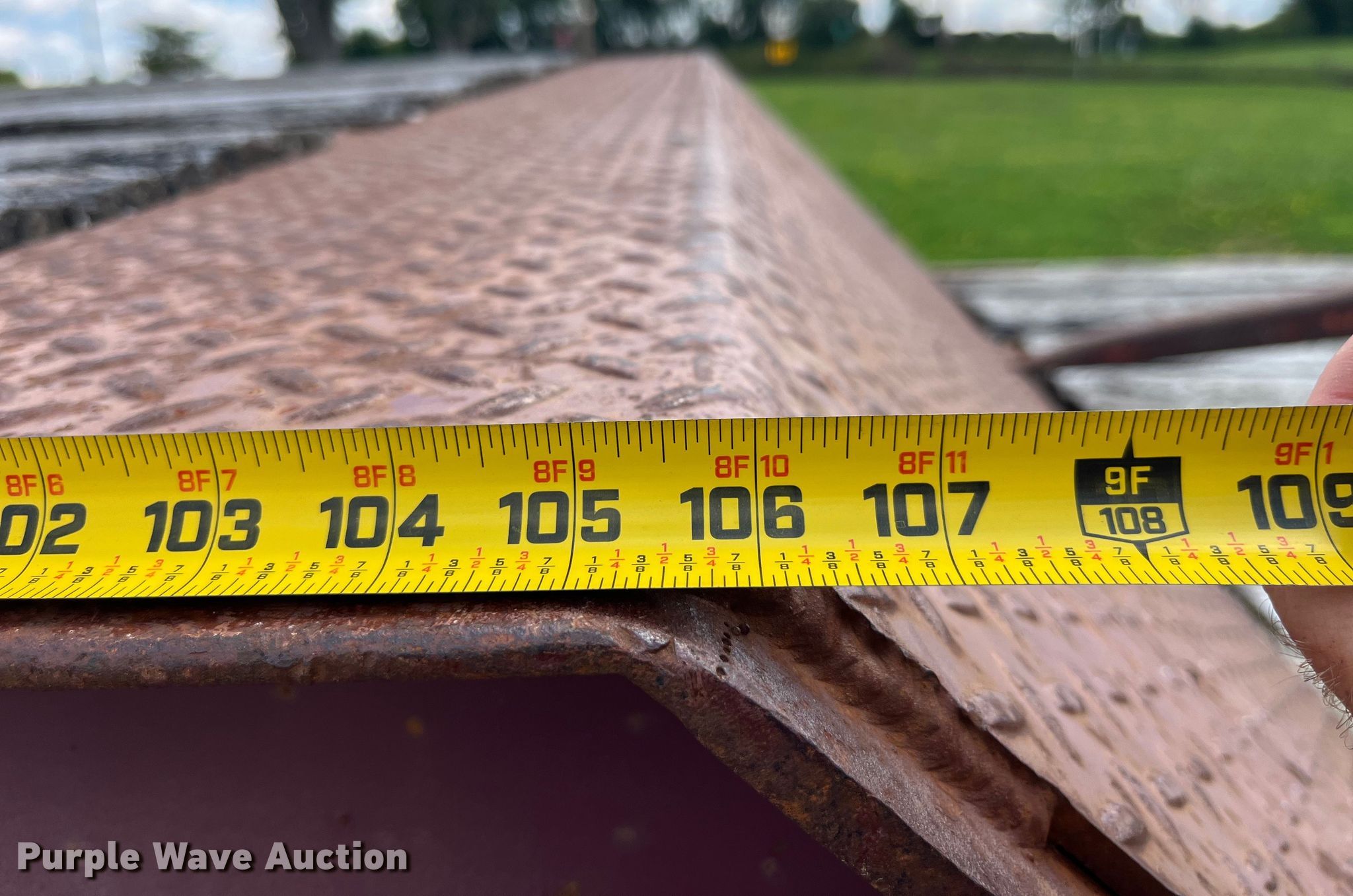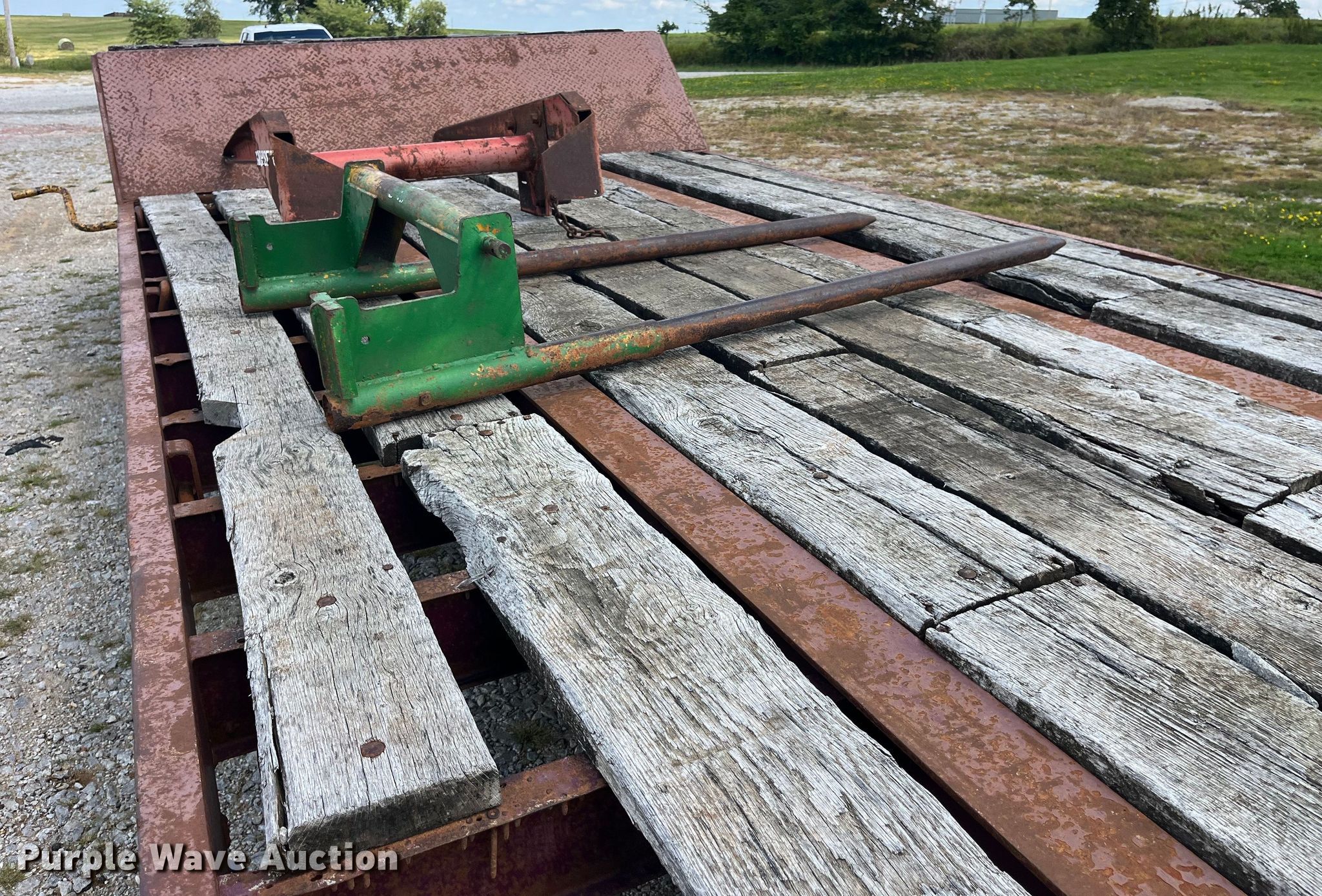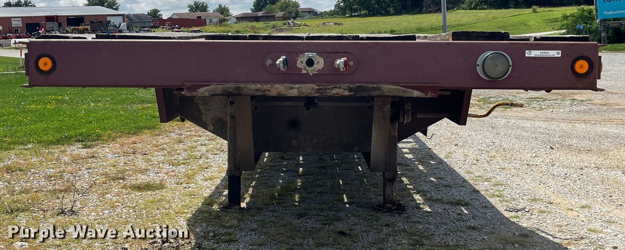 1991 Trail King drop deck equipment trailer. VIN: 1TKS04426MM028470. Dimensions Overall: 45' 8.5" L x 106" W, Deck: 343" L x 102" W, Top deck length: 106", Tail length: 60", Ramps: Manual Length: 65". Features Deck type: Steel, Wood. Chassis Landing gear: Dual, Suspension: Spring, Brakes: Air, Axles: Tandem. Tires Steel wheels, Size: 10R17.5. Notes Contents not included. Iowa title. The Machinery Barn. Centerville, IA 52544