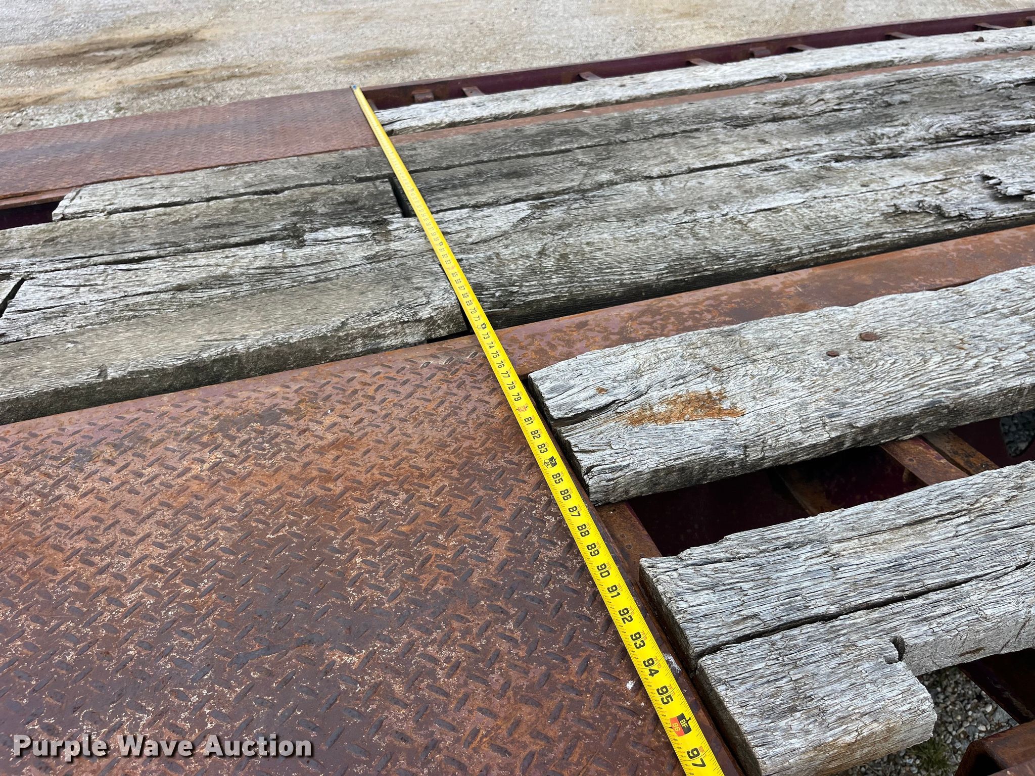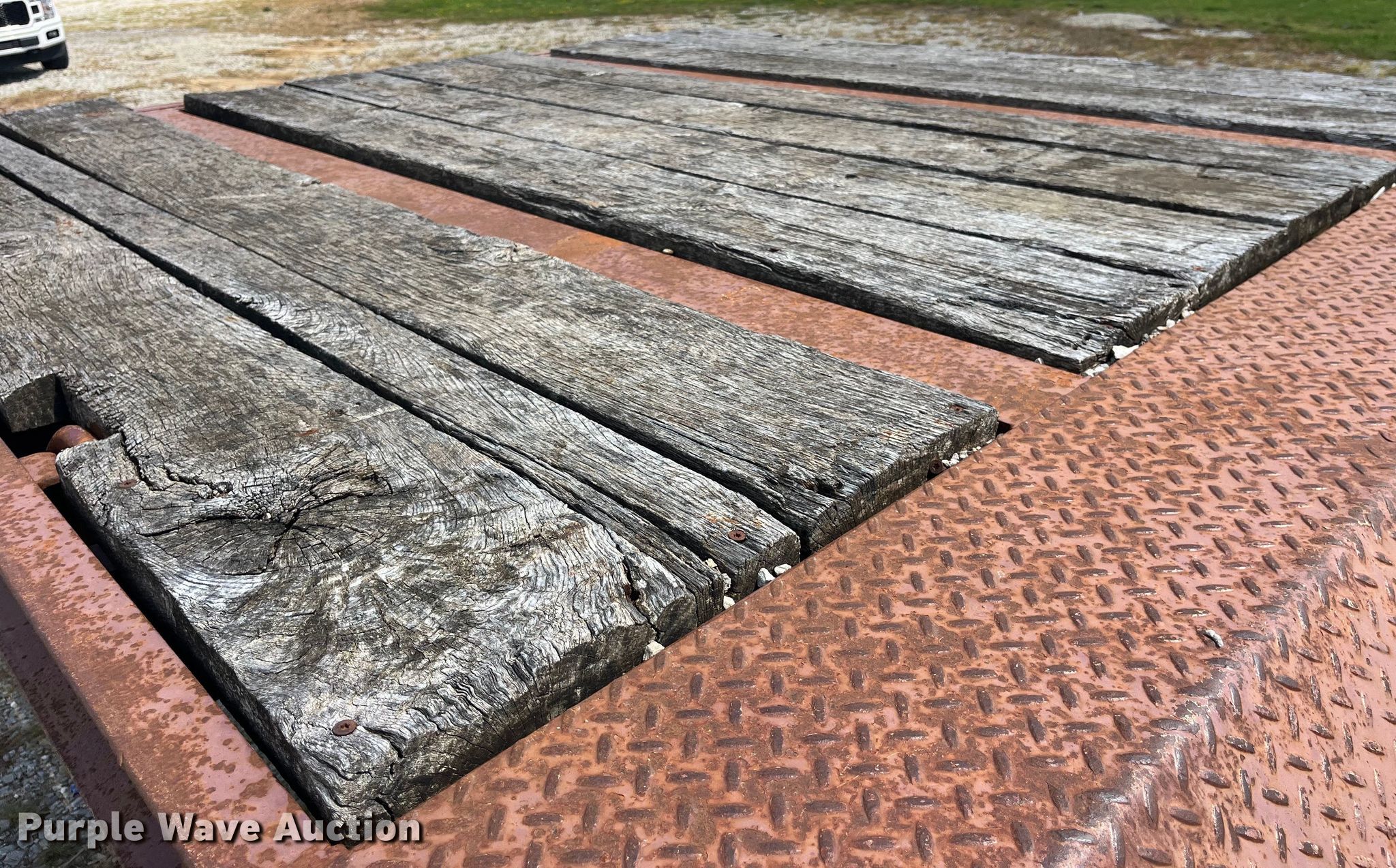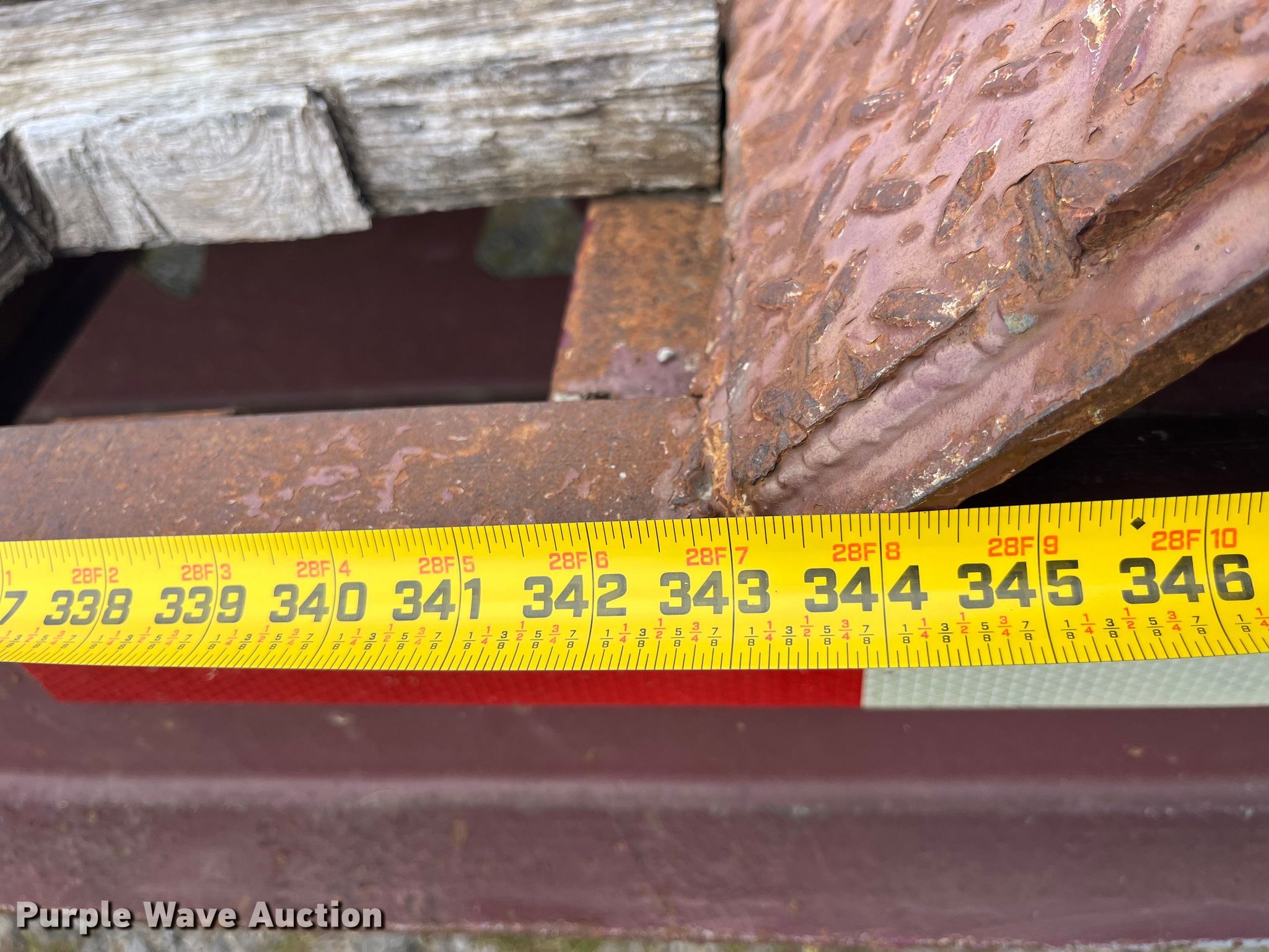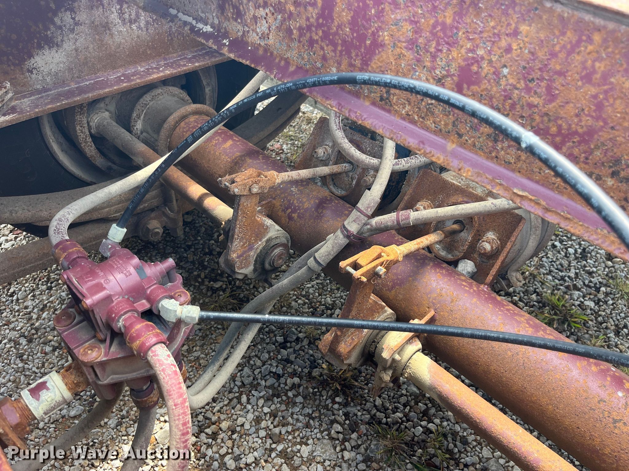 1991 Trail King drop deck equipment trailer. VIN: 1TKS04426MM028470. Dimensions Overall: 45' 8.5" L x 106" W, Deck: 343" L x 102" W, Top deck length: 106", Tail length: 60", Ramps: Manual Length: 65". Features Deck type: Steel, Wood. Chassis Landing gear: Dual, Suspension: Spring, Brakes: Air, Axles: Tandem. Tires Steel wheels, Size: 10R17.5. Notes Contents not included. Iowa title. The Machinery Barn. Centerville, IA 52544