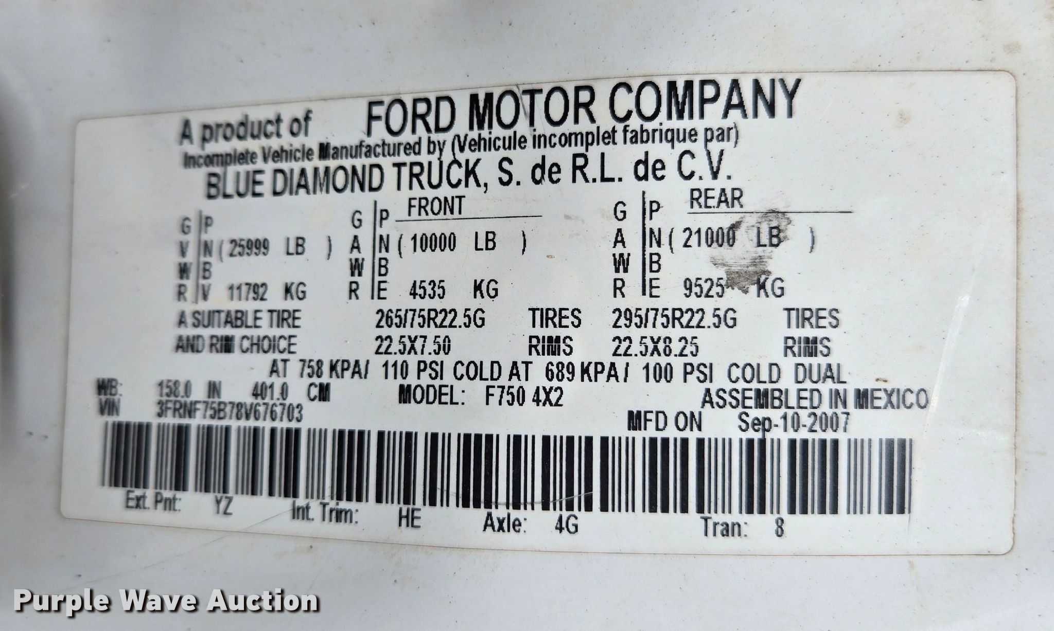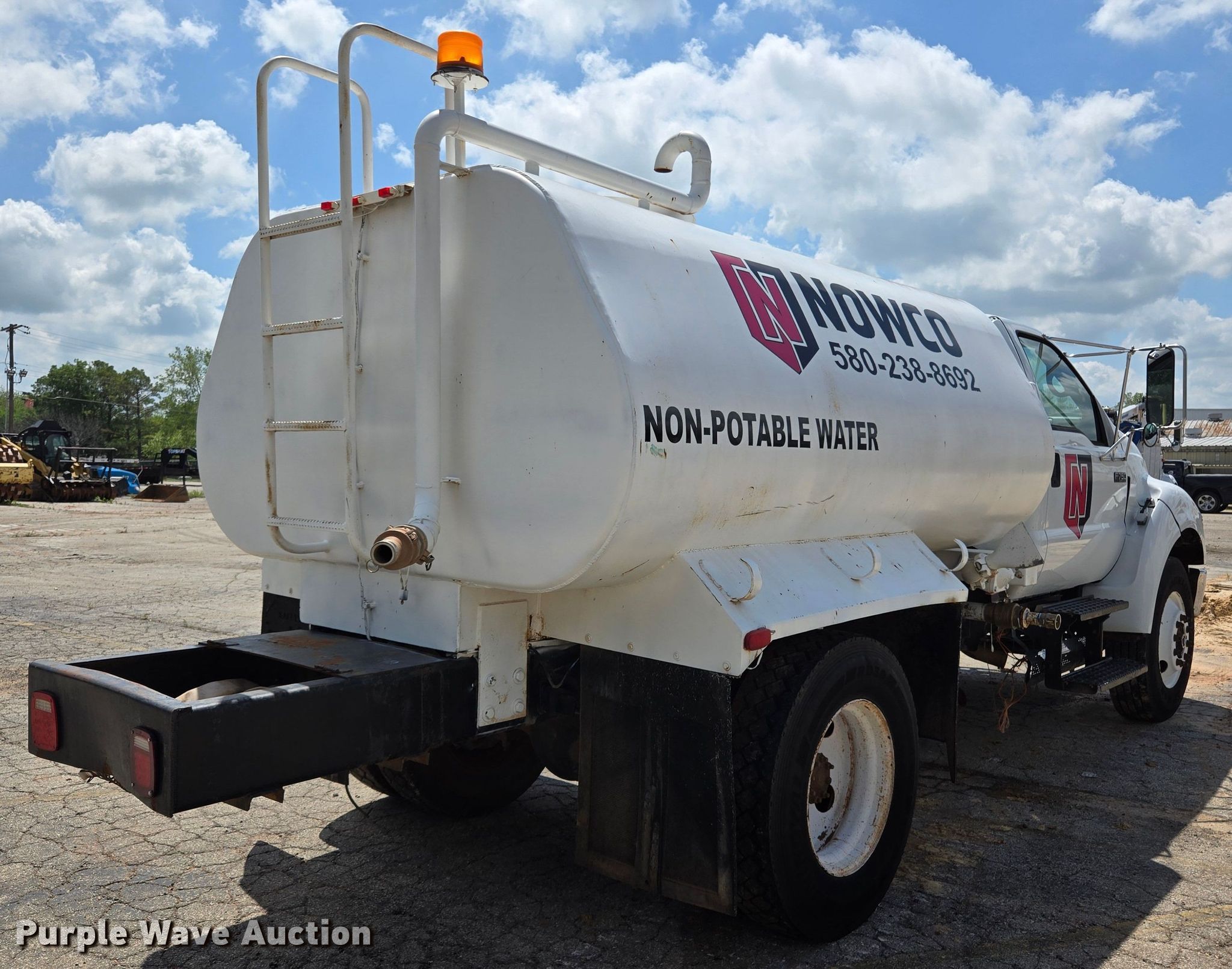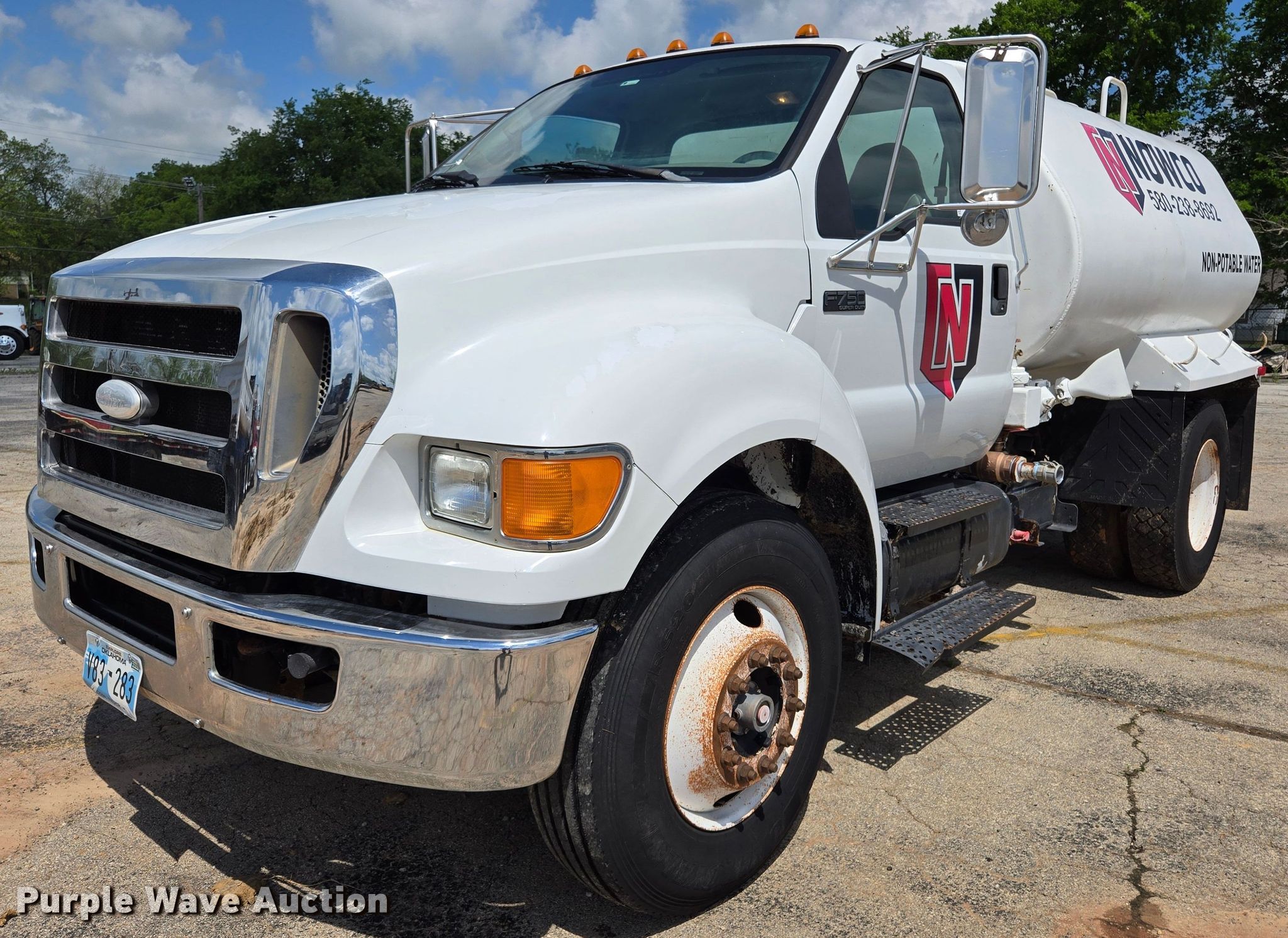 Purple Wave is selling a used Tank Truck or Water Truck in Oklahoma. This item is a 2008 Ford F750 Super Duty water truck with the following: Miles: 111,100 on odometer, VIN: 3FRNF75B78V676703