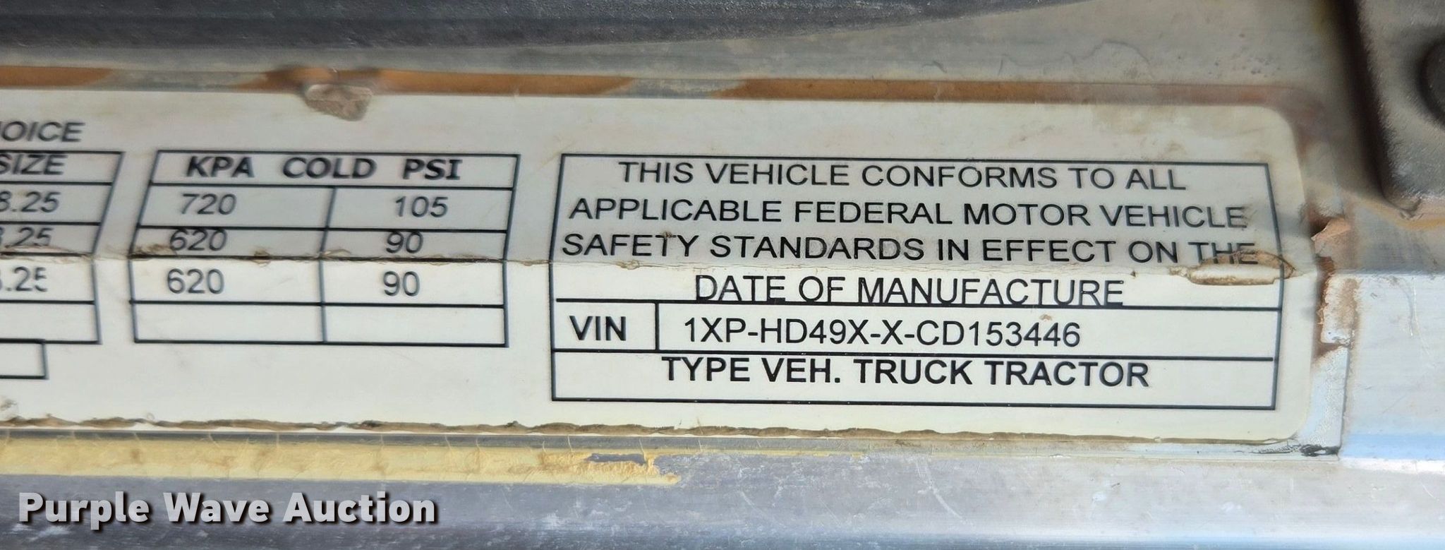 Purple Wave is selling a used Truck Tractor in Oklahoma. This item is a 2012 Peterbilt 386 semi truck with the following: Miles: 806,571 on odometer, Hours: 21,707 on meter, VIN: 1XPHD49XXCD153446