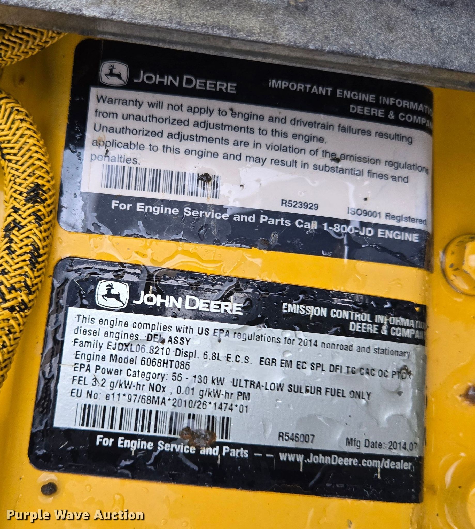 2014 John Deere 210G LC excavator. Hours: 5,087 on meter, Serial: 1FF210GXHEE522801. Engine John Deere 6068HT086, Displacement: 6.8L, Cylinders: 6, Fuel type: Diesel, kW: 130. Transmission Hydrostatic, Two speed travel. Operators station Enclosed cab, AC, Heat, Pattern changer. Features Boom Standard, Stick Stick length: 9' 6", Bucket Strickland, Width: 52", Cutting edge: Bolt-on, Teeth: 6, Bucket Width: 22", Teeth: 4, Bucket Width: 34". Tracks Width: 32", Steel, Grouser pads: Triple. Nowco Construction, LLC. Marietta, OK 73448