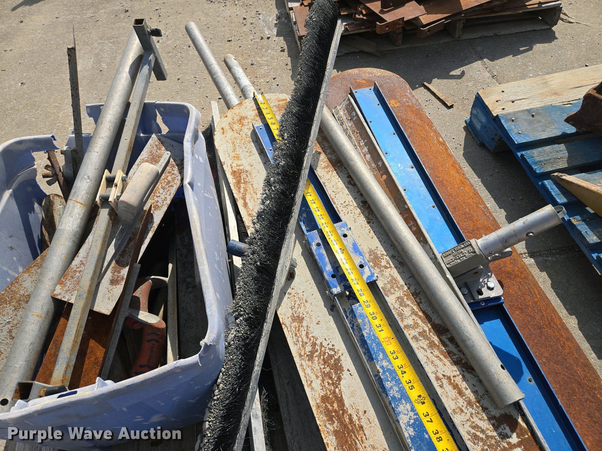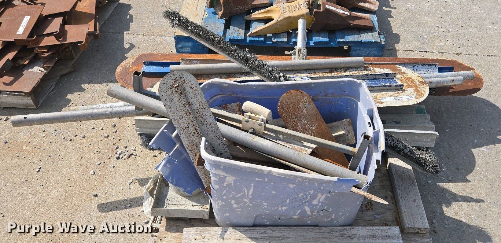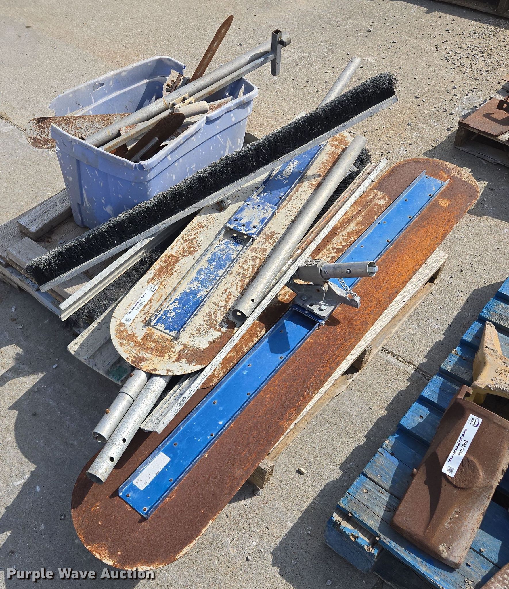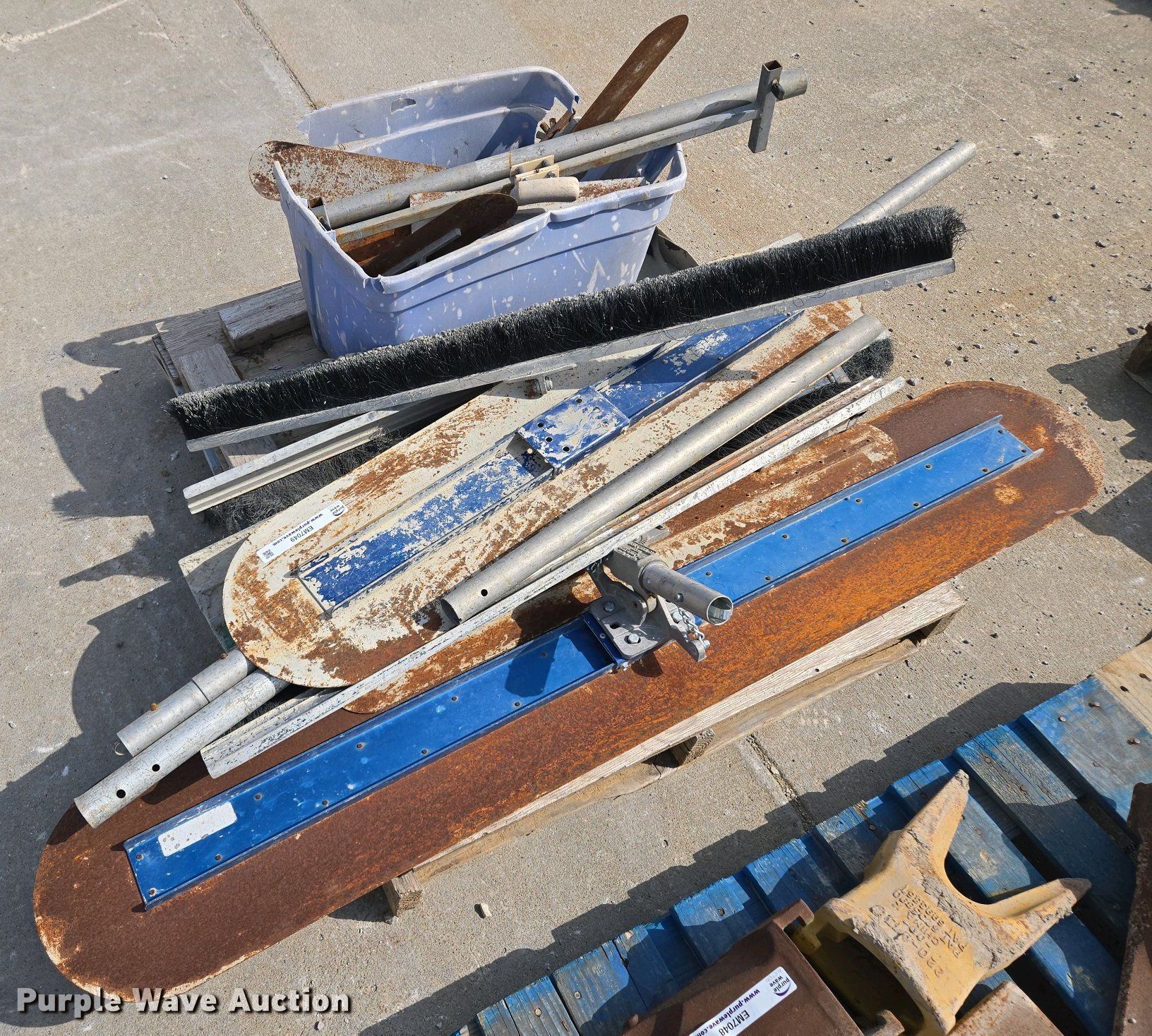 Purple Wave is selling a used Concrete Equip. or Acces. in Missouri. This item is a Concrete tools with the following: (2) finishing trowels, 4' W, 6' W, Bull float head, Concrete trowels, Brooms, Bull float pole