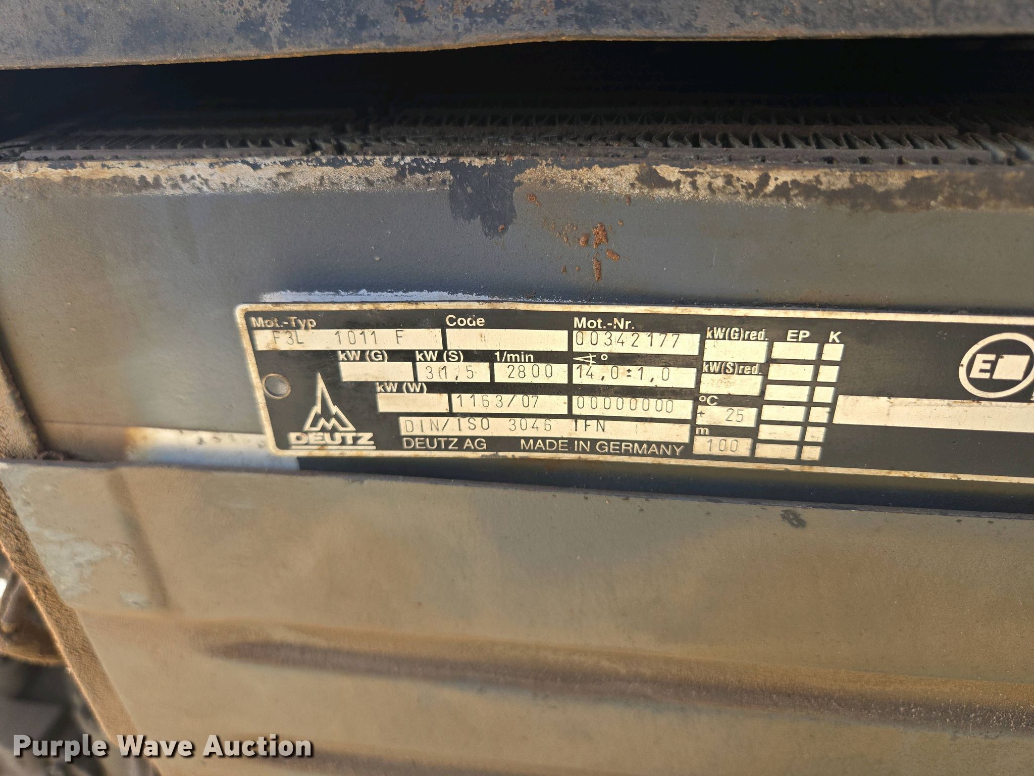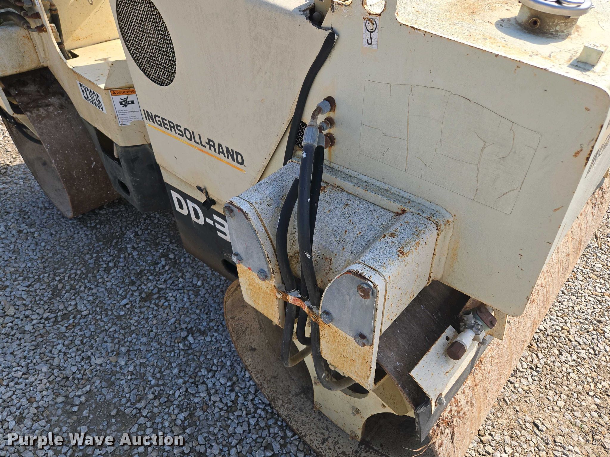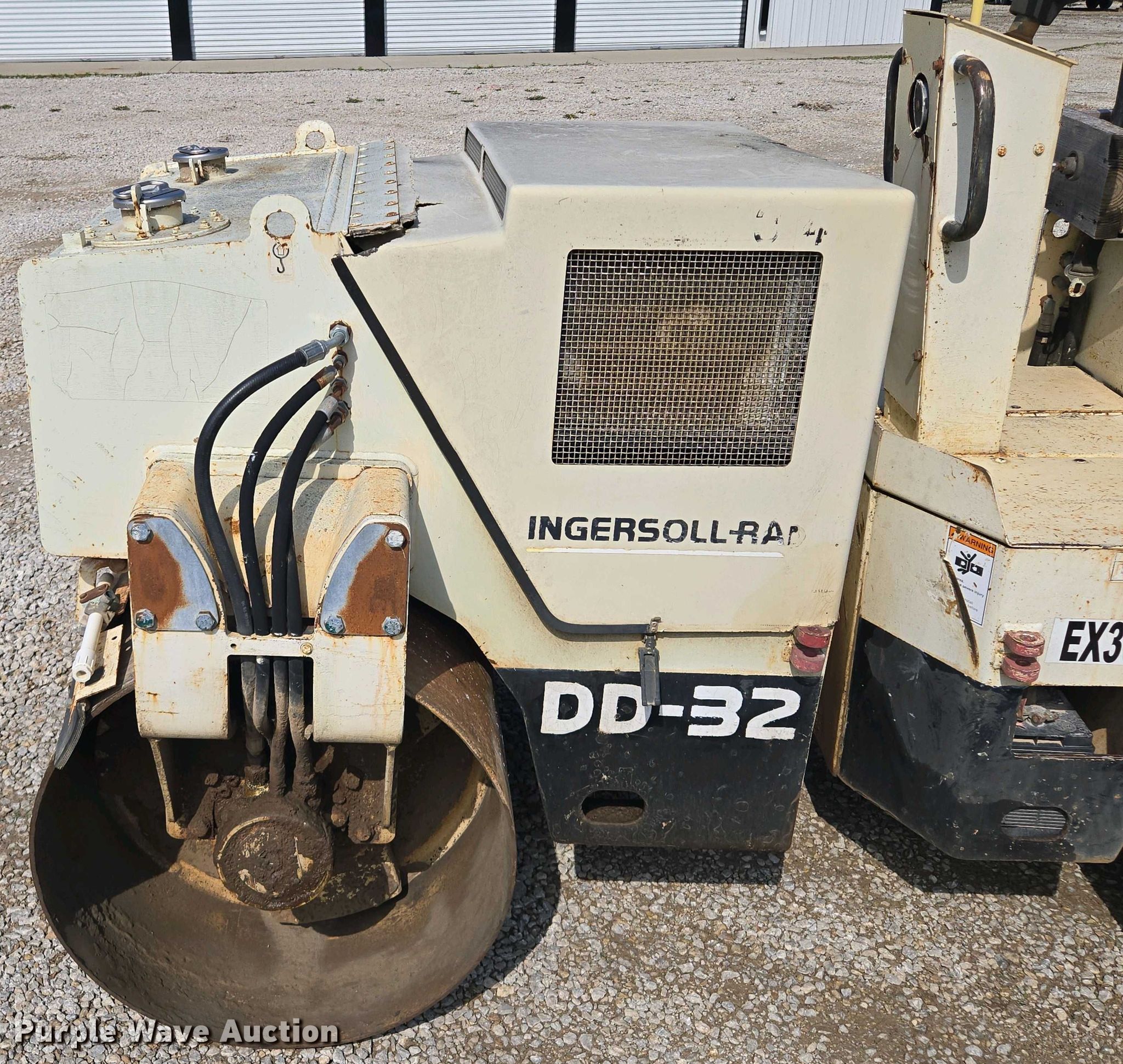 1987 Ingersoll Rand DD-32 double drum vibratory roller. Serial: 157562. Engine Deutz, Cylinders: 3, Fuel type: Diesel. Transmission Hydrostatic. Operators station OROPS. Features Drum: Smooth, Vibratory system: Double, Front drum Width: 52", Diameter: 28", Rear drum Width: 52", Diameter: 28", Drum scrapers: Front, Rear, Water spray applicator: Front, Rear. Notes Electrical issues, FNR switch. Precision Construction & Contracting, LLC. Holden, MO 64040