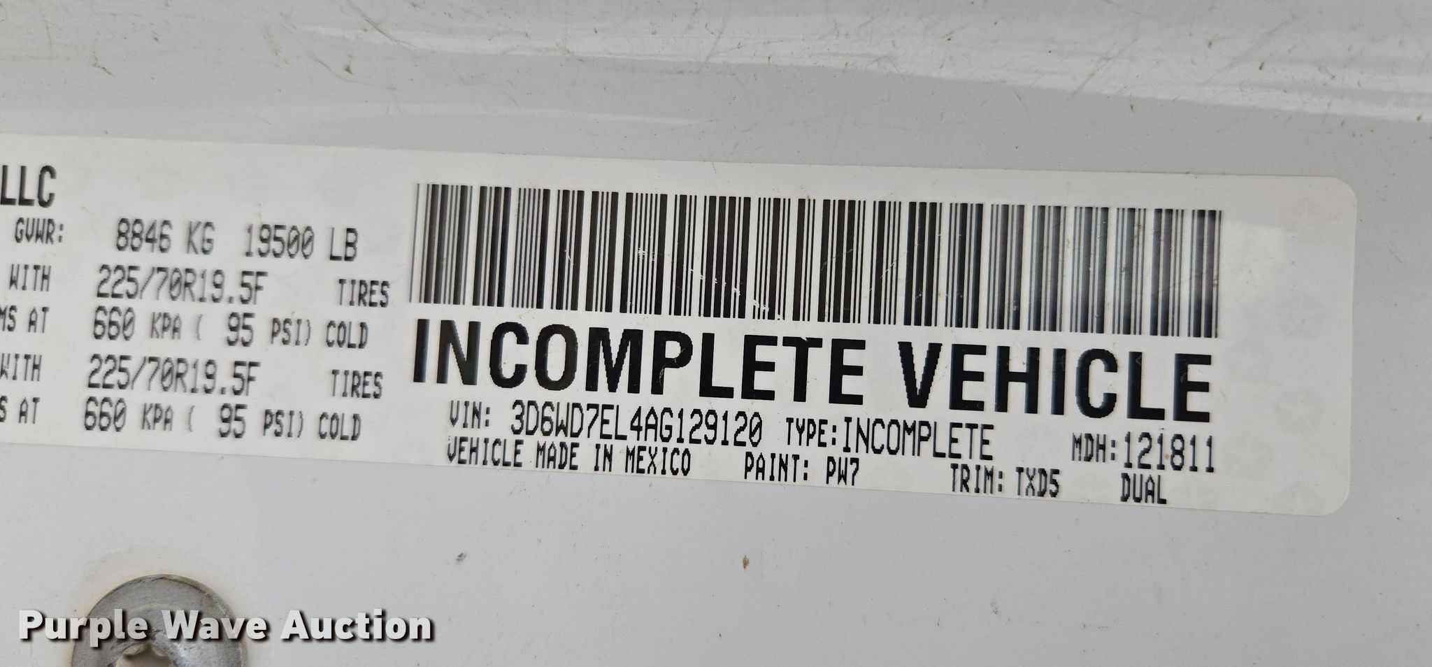 - VIN: 3D6WD7EL4AG129120