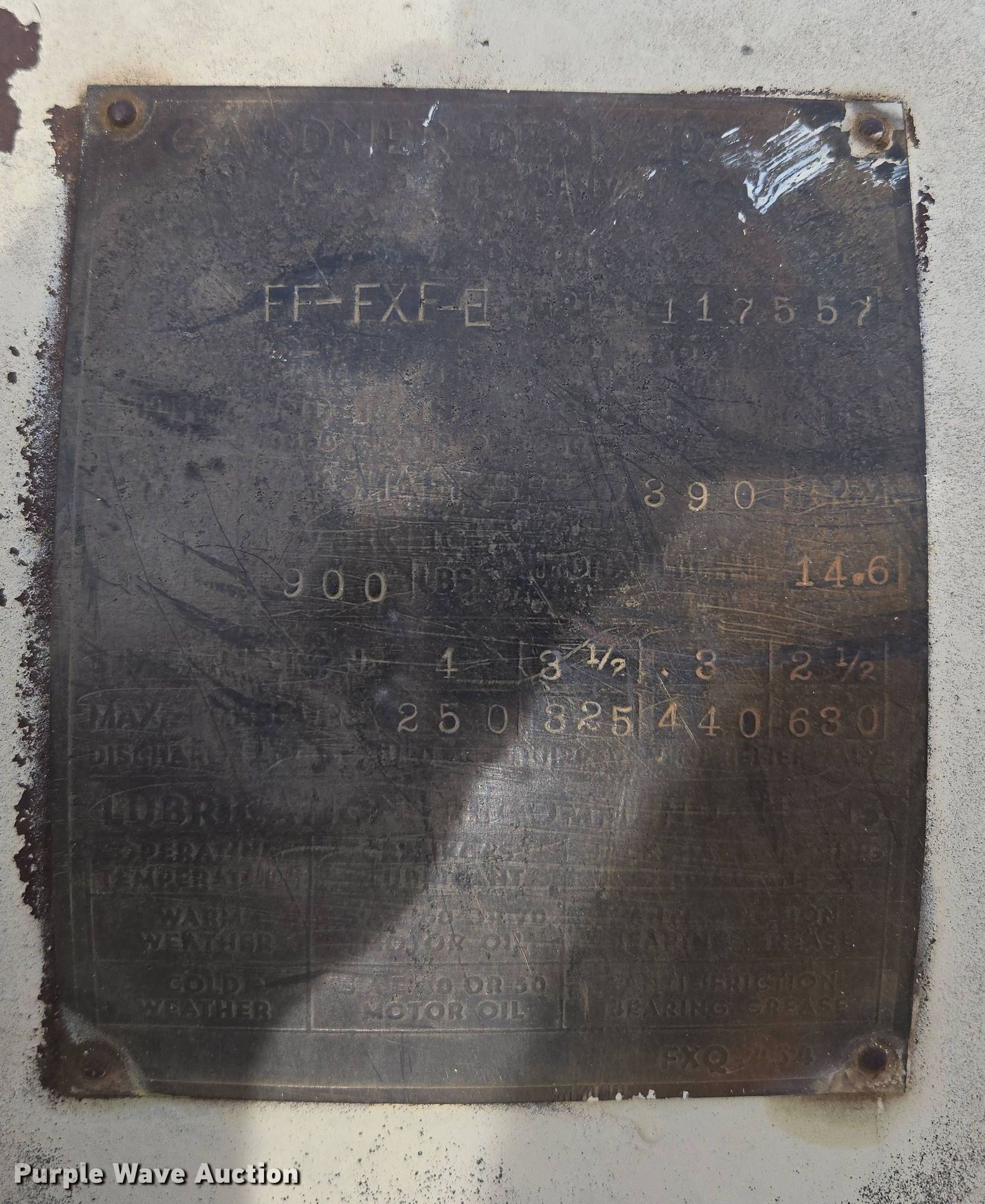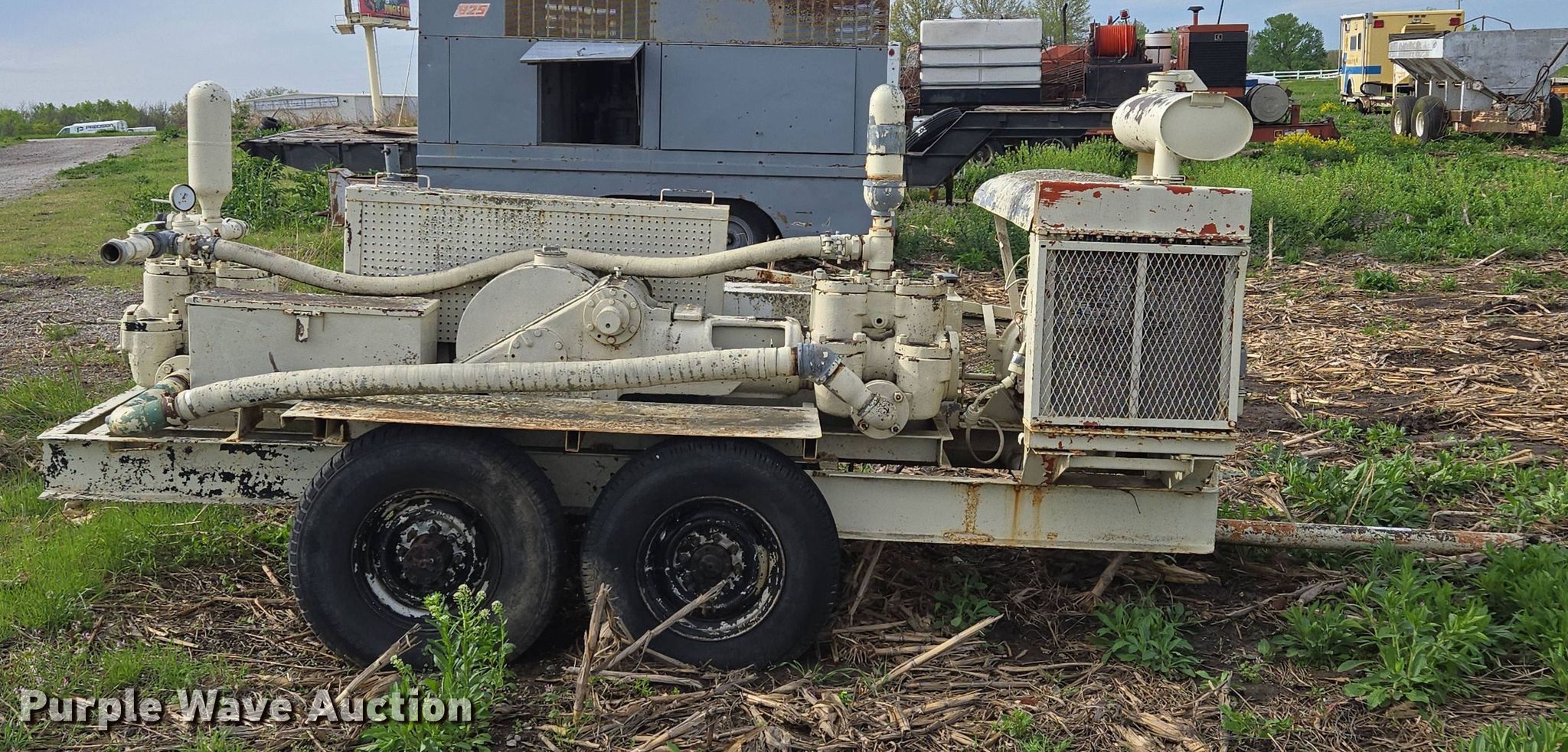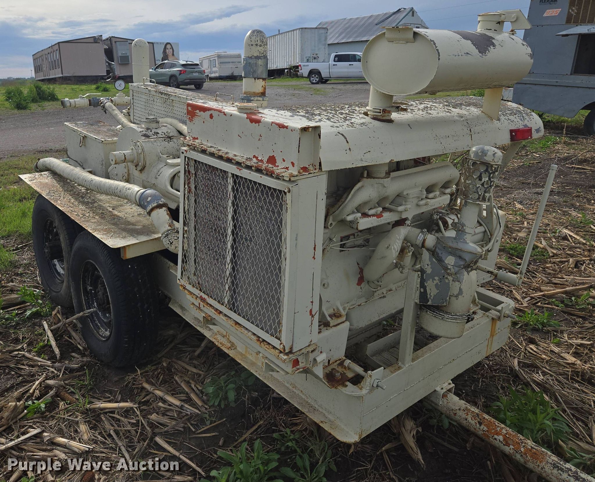 Mud pump. Dimensions. Overall: 17' L x 80" W, Deck: 12' L x 80" W. Engine Waukesha Motor Co VRG31OU, Cylinders: 6, Fuel type: Diesel. Features PTO: Rockford PTA-31027, (2) Gardner Denver FFFXFE pumps. Chassis Axles: Tandem. Tires Steel wheels, Size: 285/75R16. Notes Battery missing, Unknown operating condition. This is worksite support equipment and will not come with a title. Transfer of ownership documentation will be a bill of sale. Gary Sisk Drilling. Odessa, MO 64076