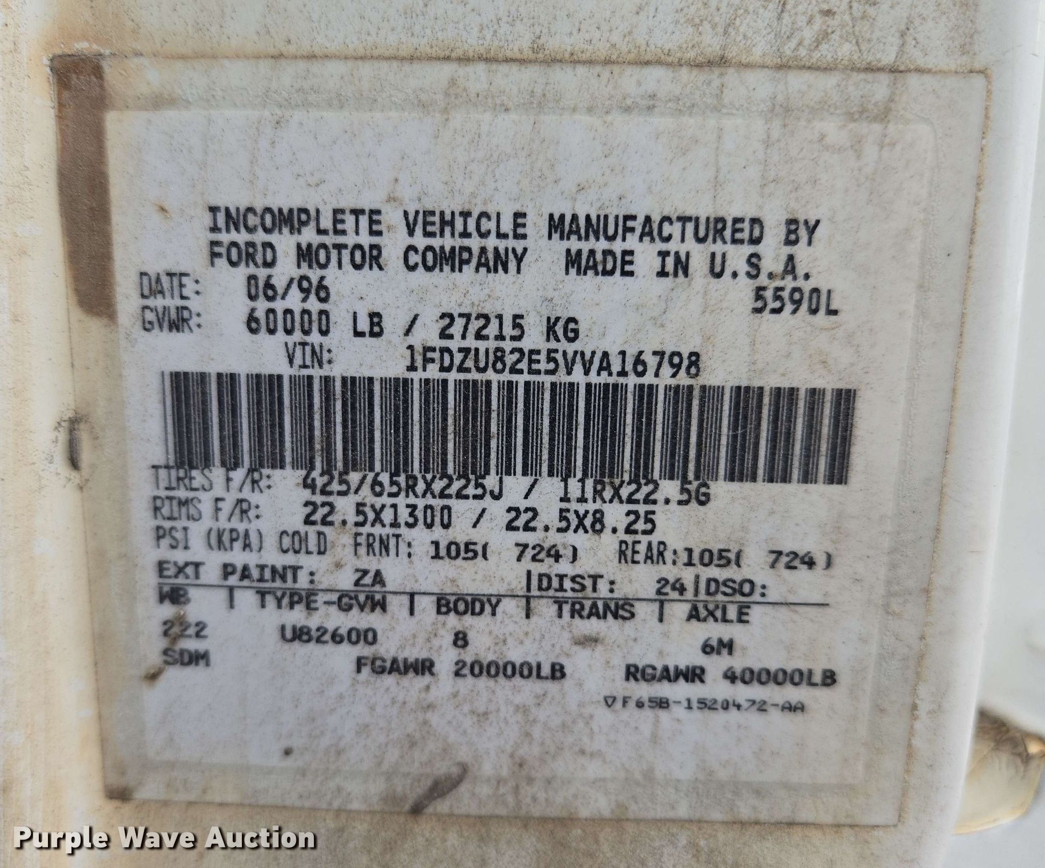 Purple Wave is selling a used Ready Mix or Pump Truck in Missouri. This item is a 1997 Ford LT8000 ready mix truck with the following: Miles: 160,641 on odometer, VIN: 1FDZU82E5VVA16798