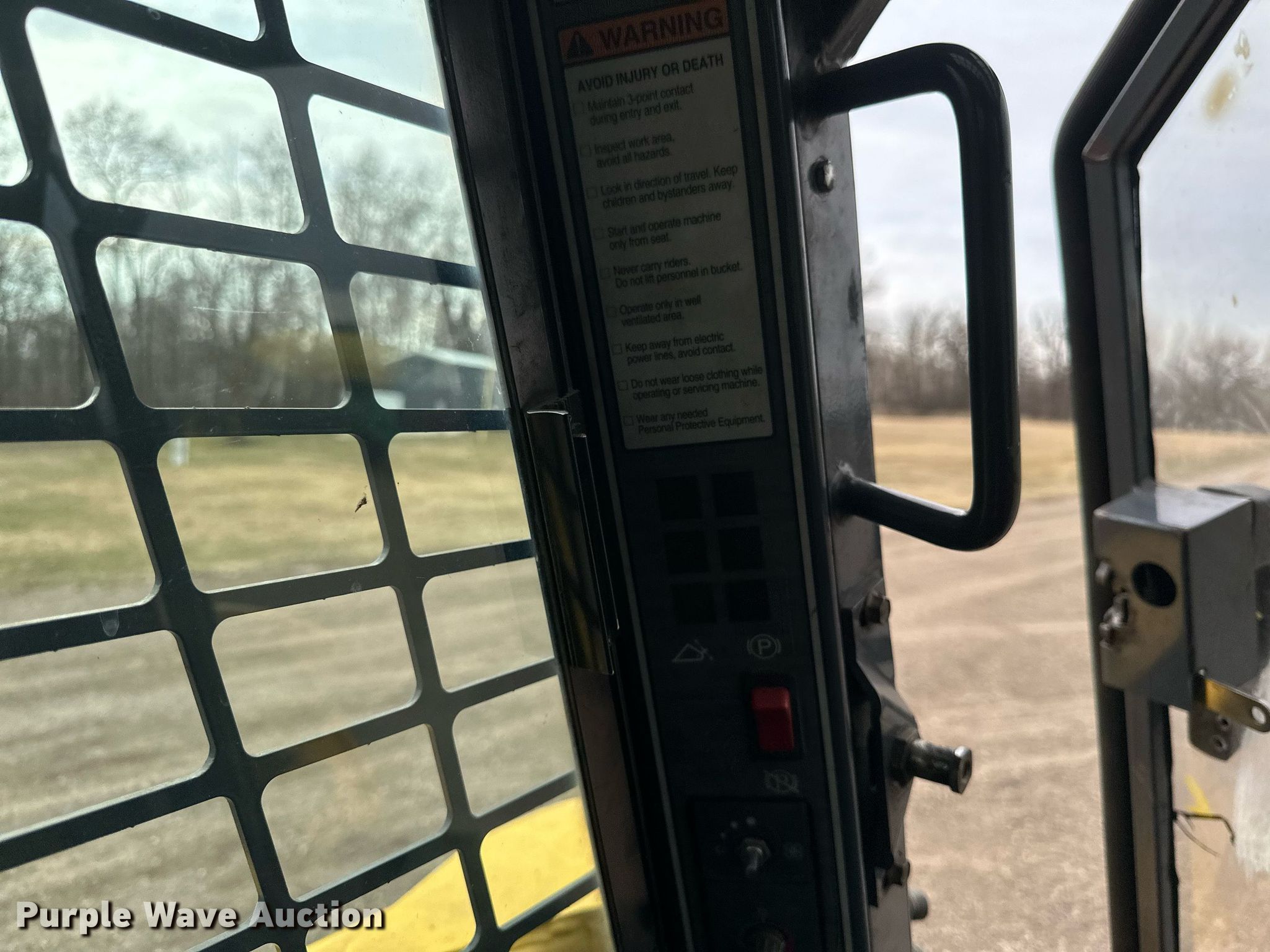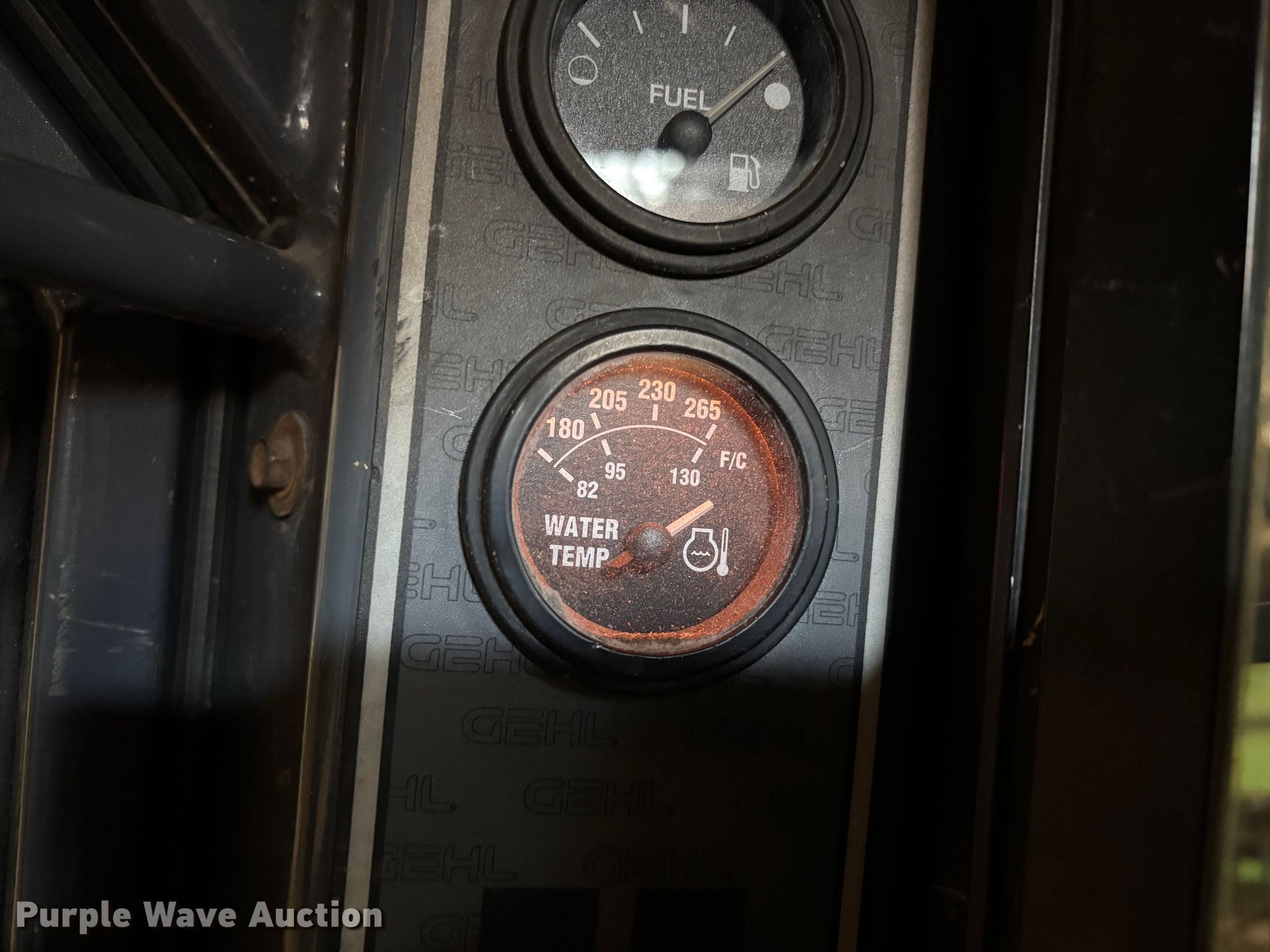 2005 Gehl 7810 skid steer loader. Hours: 2,805 on meter, Serial: 903841. Engine Perkins, Displacement: 4.4L, Fuel type: Diesel, kW: 4. Transmission Hydrostatic, Two speed travel. Operators station Enclosed cab, Heat, Bucket control: Hand. Features Auxiliary hydraulics High flow, Bucket Edge, Width: 78", Cutting edge: Weld-on. Tires Size: 14-17.5. Notes Non-operational coolant temp gauge. Thief River Falls, MN 56701