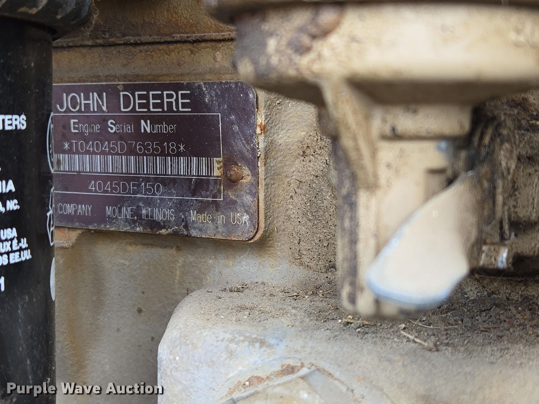 Ingersoll-Rand P185WJD air compressor. Hours: 3,571 on meter, Actual hours unknown, Serial: 289387UEI221. Engine John Deere 4045DF150, Serial: T04045D763518, Displacement: 4.5L, Cylinders: 4, Fuel type: Diesel. Features Air compressor CFM: 185, PSI: 100. Trailer 12' L x 67" W, Ball hitch size: 2", Suspension: Torsion, Axles: Single, Tire size: P215/75R15. Notes Contents included, Hour meter damaged, Non-operational fuel injection pump, lines disconnected , Flat tire, Tires damaged, Non-operational unit. Clay Sandidge. Niangua, MO 65713