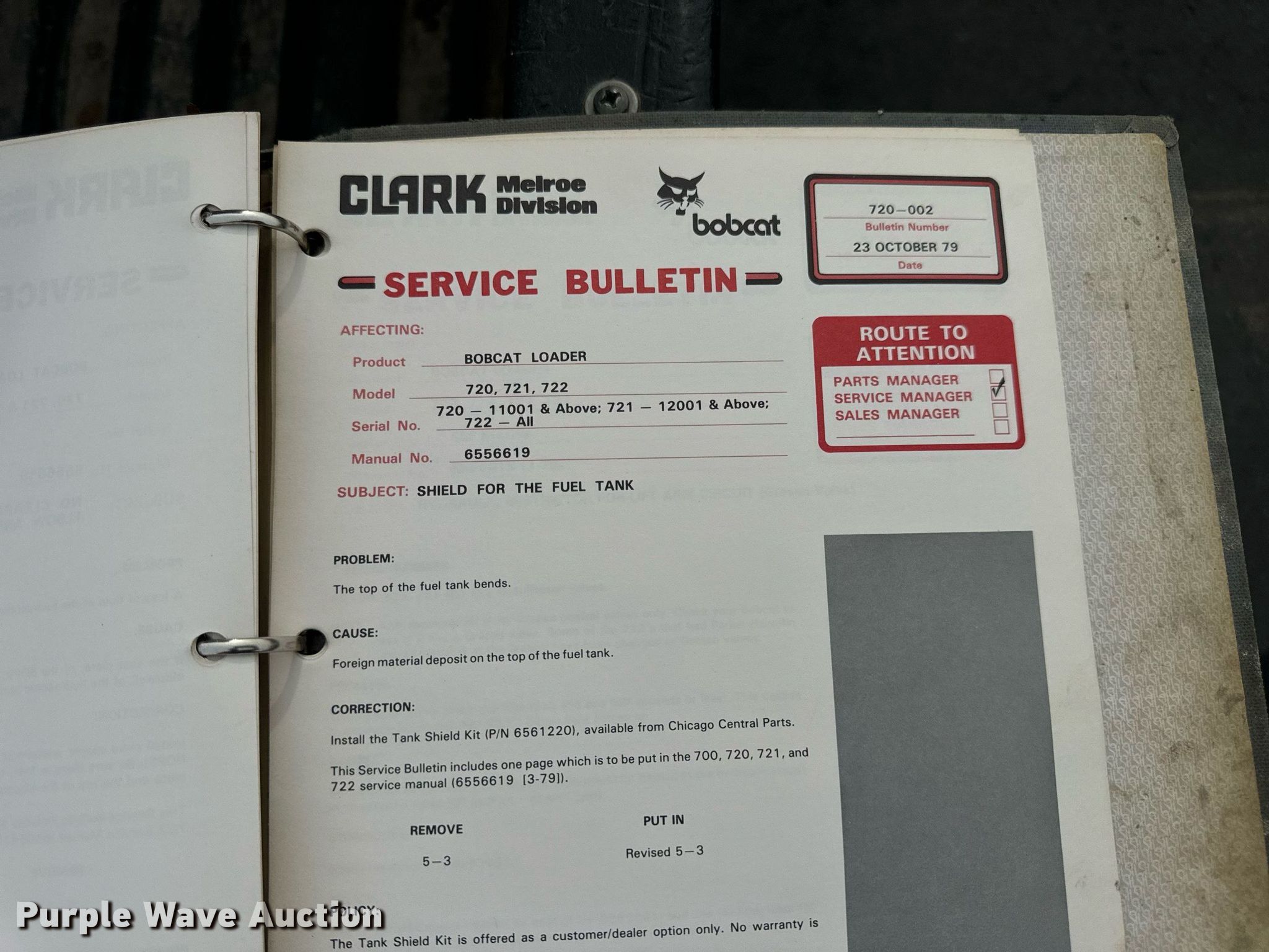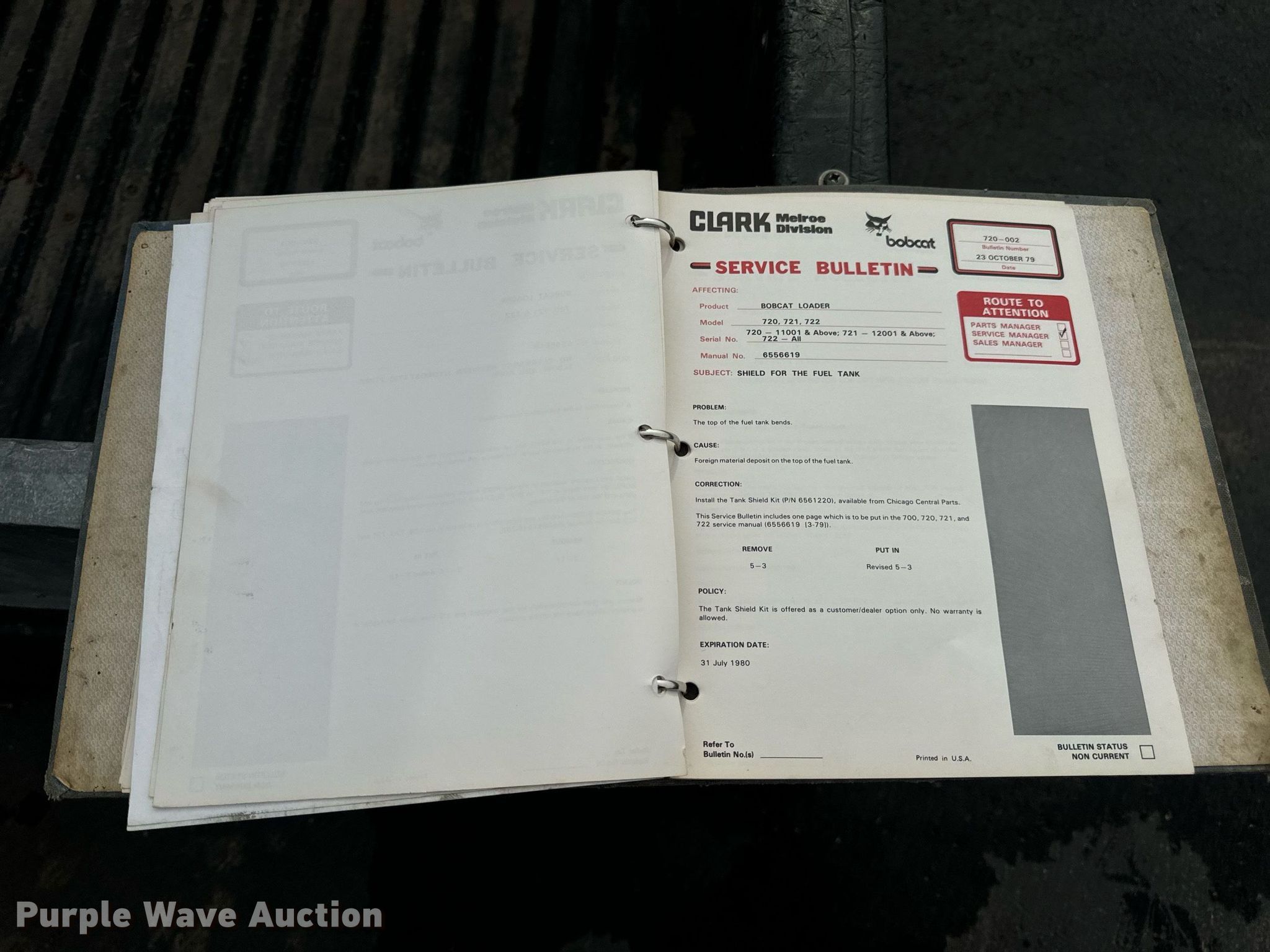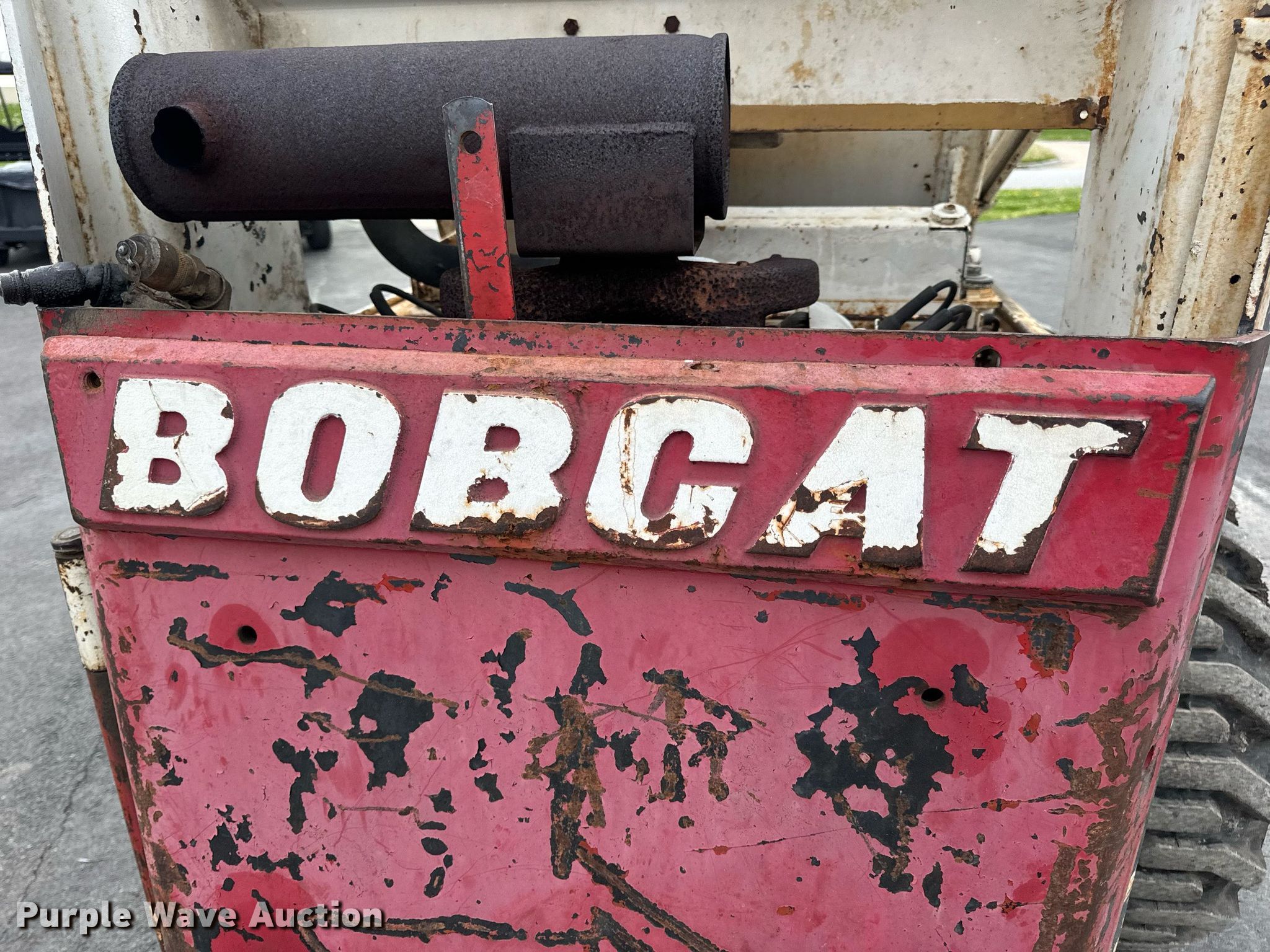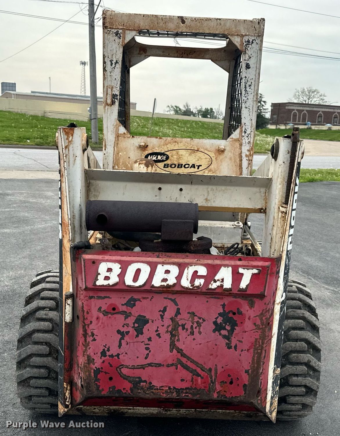 Bobcat M-700 skid steer loader. Hours: 2,230 on meter, Serial: 4957-C-1364UGM. Engine Cylinders: 4, Fuel type: Gas. Transmission Hydrostatic. Operators station Bucket control: Foot. Features Auxiliary hydraulics, Quick coupler: Manual, Bucket Width: 61", Cutting edge: Weld-on, Forks Length: 36", Box blade Width: 73", Cutting edge: Bolt-on. Tires Size: 10-16.5. Notes Box blade cutting edge damaged, Bucket damaged, cracked, Hydraulic leak, Hydraulic hoses damaged, cracking. Johnson Auto Used Cars & Golf Carts. Marshall, MO 65340