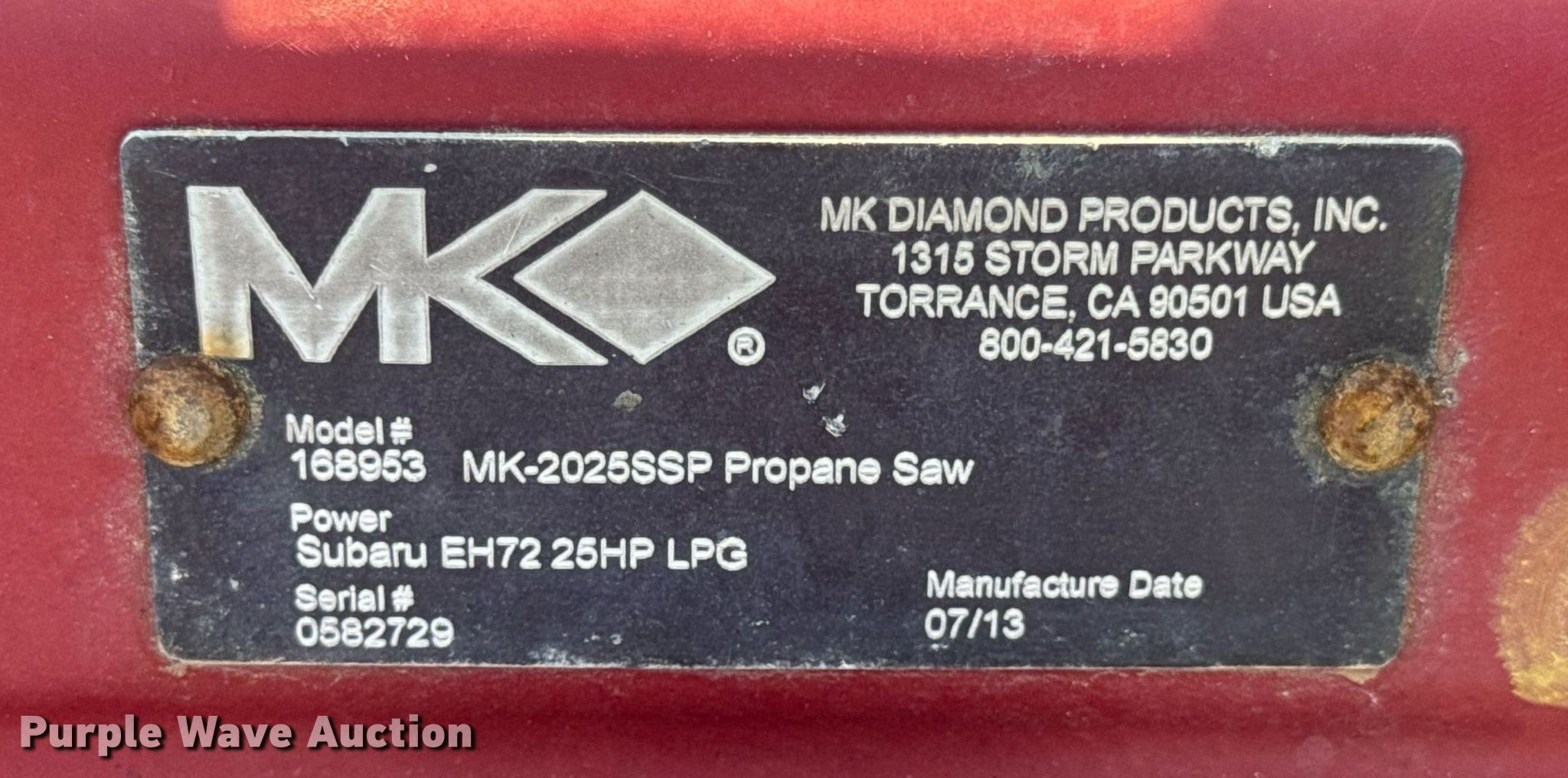 2013 MK Diamond MK-2025SSP concrete saw has sold in New Bloomfield, Missouri for $71.50. Item EN4513 sold on May 22nd, 2025.