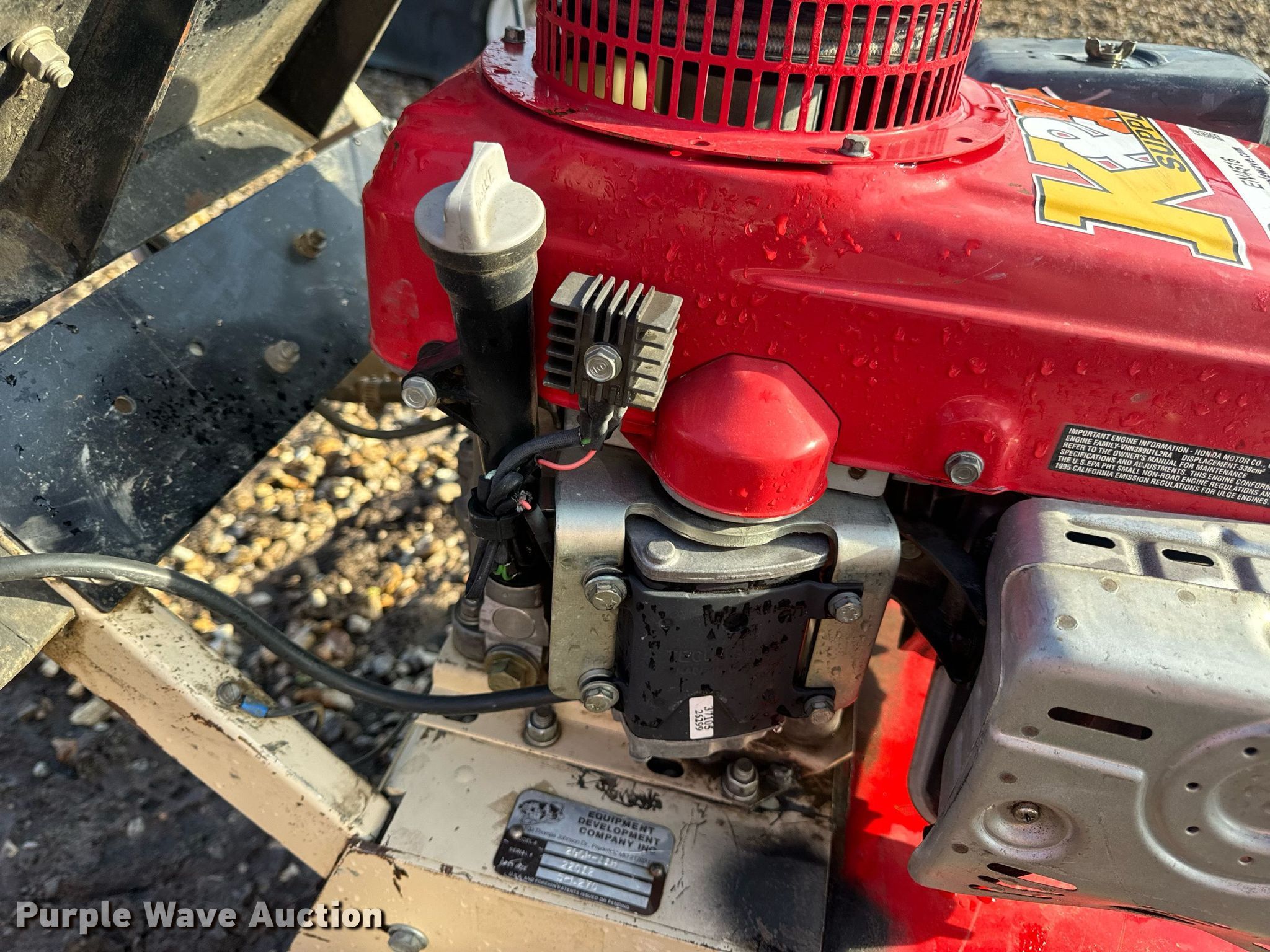 Edco 2GCP-11H concrete grinder. Serial: 22012. Engine Honda GXV340, Cylinders: 1, Fuel type: LPG LP bottle: Not included. Features Dual disc. Notes Non-operational pull cord. T&R Equipment. New Bloomfield, MO 65080