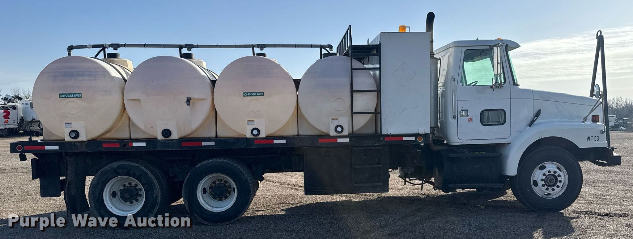 Purple Wave is selling a used Tank Truck or Water Truck in Kansas. This item is a 1992 White-GMC WB water truck with the following: Miles: Unknown, VIN: 4V1JDBDE7NR816248, Unit #: WT53