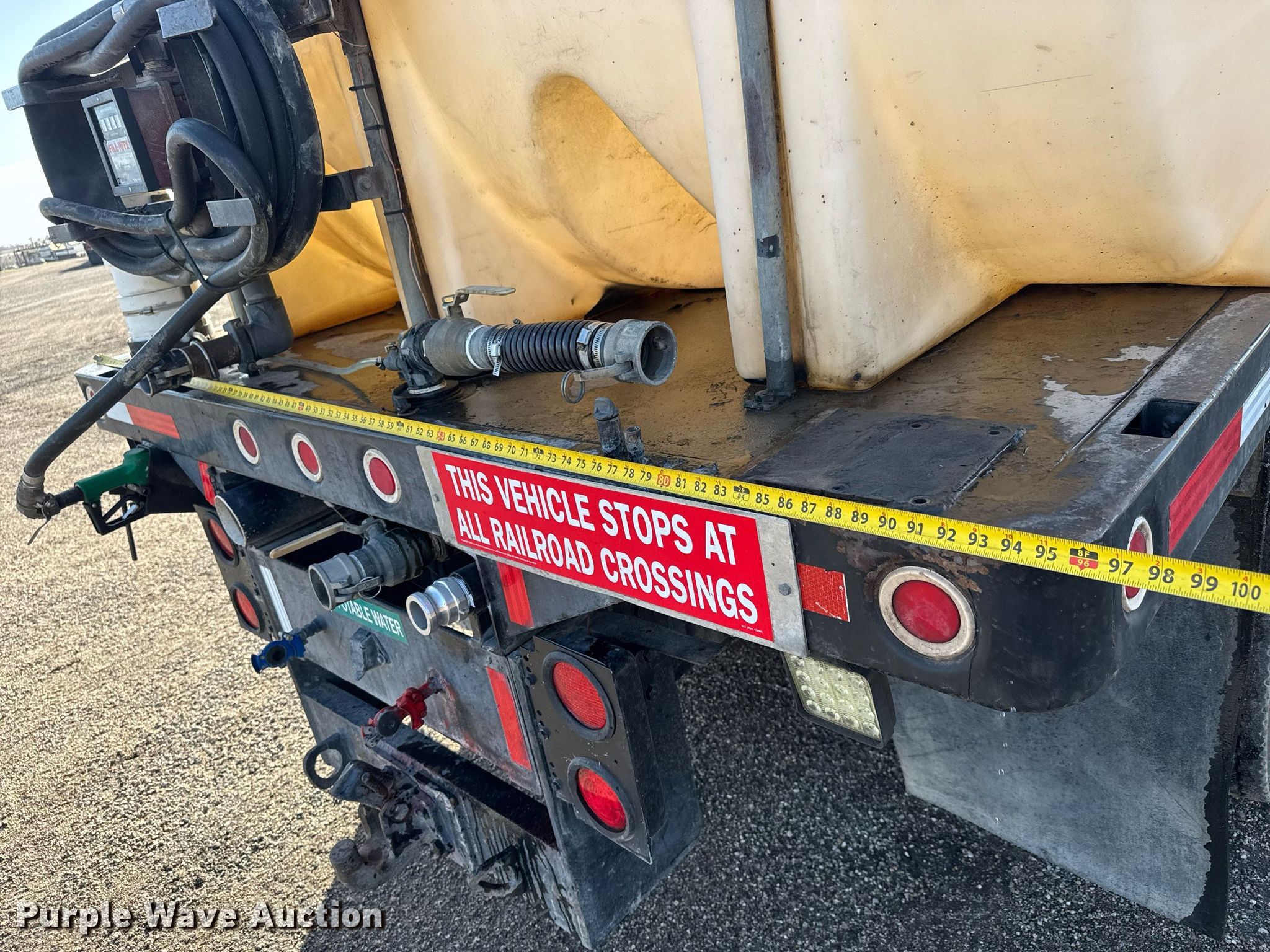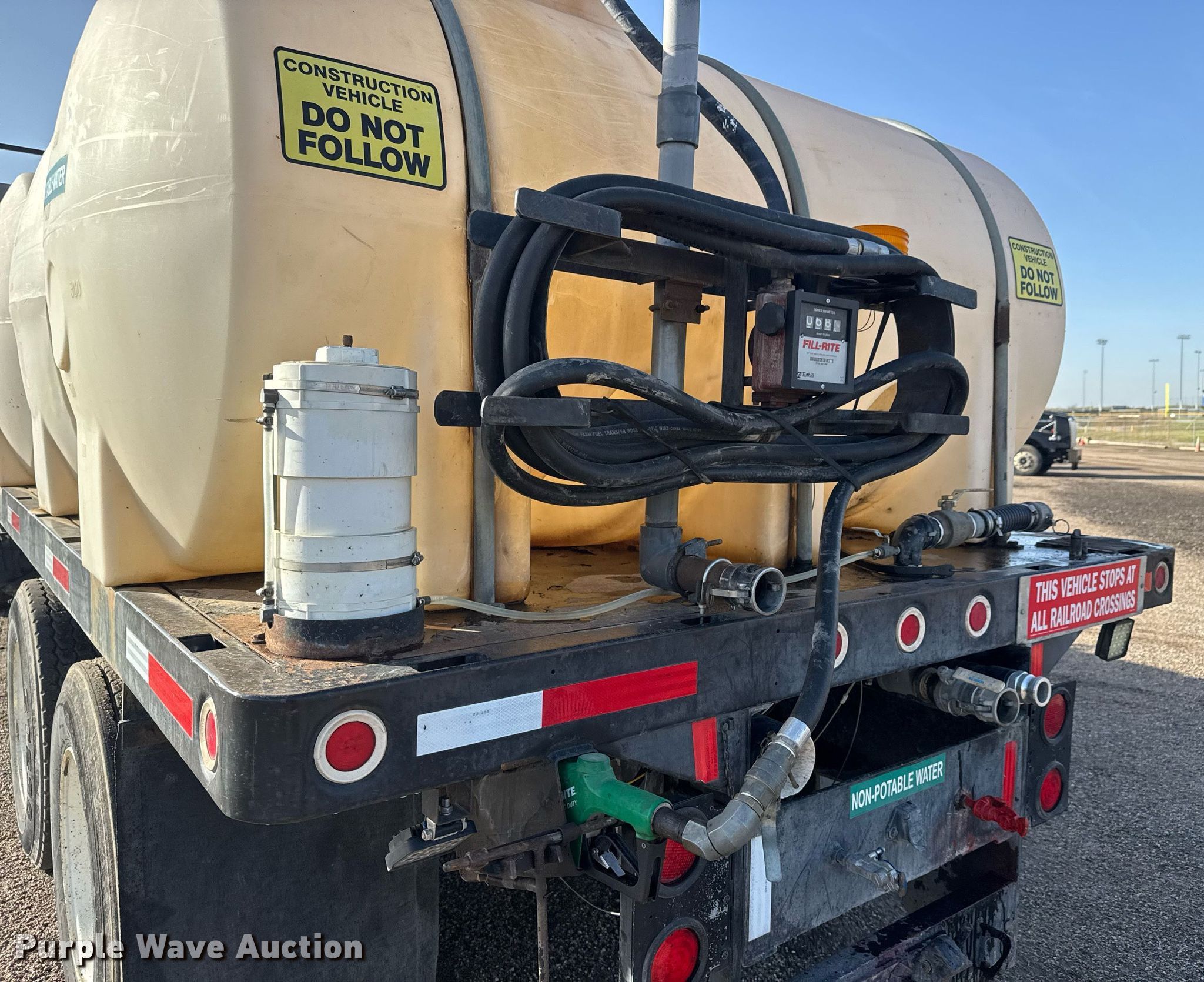 1992 White-GMC WB water truck. Miles: Unknown, VIN: 4V1JDBDE7NR816248, Unit #: WT53. Engine Caterpillar 3176, Displacement: 10.3L, Cylinders: 6, Fuel type: Diesel. Transmission Eaton Fuller Roadranger, Manual, Speed: 9. Chassis Axles: Tandem, Differential lock: Inter-axle, Suspension: Spring, Brakes: Air. Interior AC, Heat, Heated mirrors, Cruise control. Features Bed / tank 20' L x 96" W, (4) poly tanks Capacity: 750 gallons, Top fill, Rear drain: 2", Rear outlet: 2", Auxiliary fuel tank Tuthill Fill-Rite Series 900 meter, Tuthill Fill-Rite FR3200 pump.. Tires Front: 315/80R22.5, Rear: 275/80R22.5. Notes Windshield chipped or cracked, Non-operational odometer. Kansas title. Mileage has not been verified. Exempt will be written in the odometer disclosure on the title. Dustrol Inc.. Towanda, KS 67144