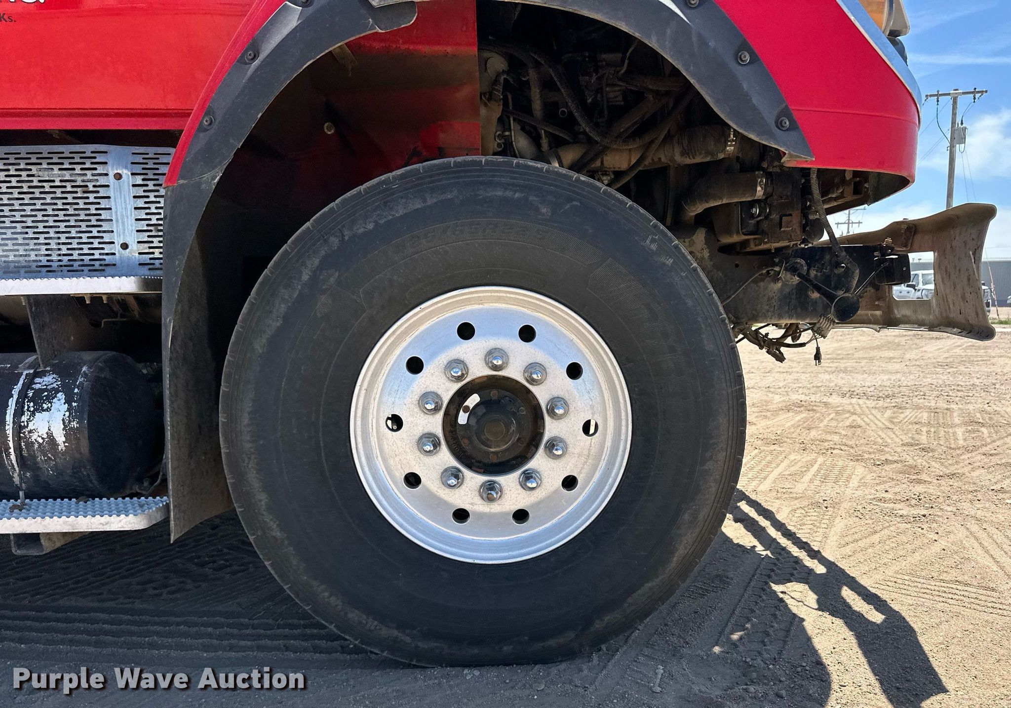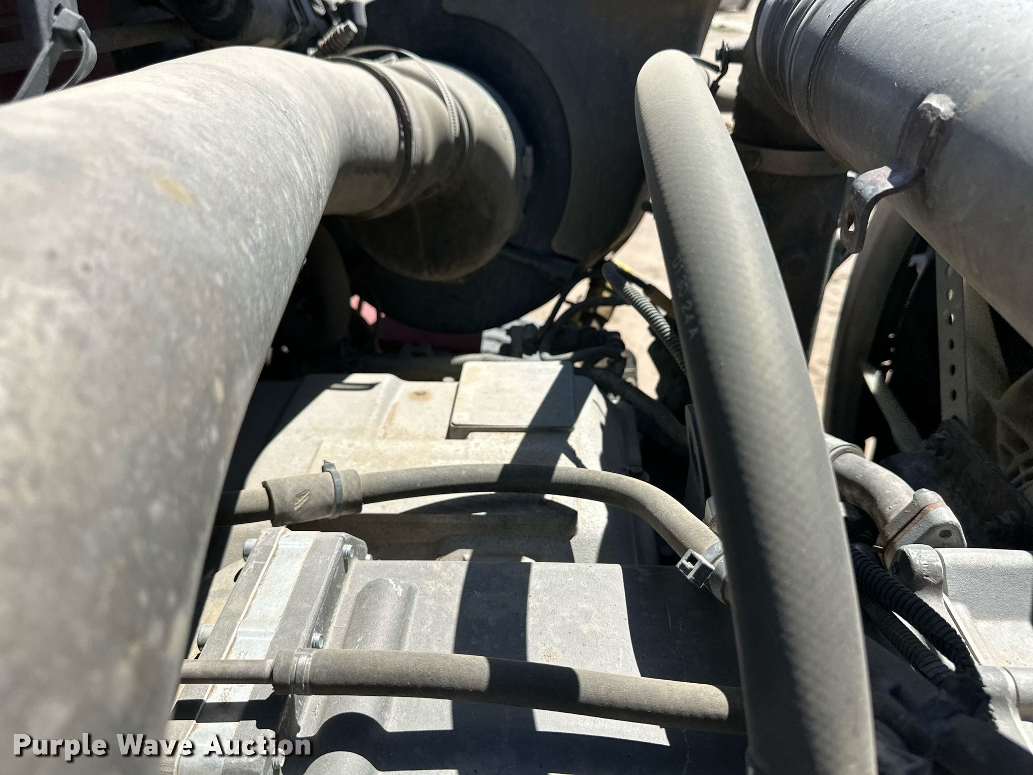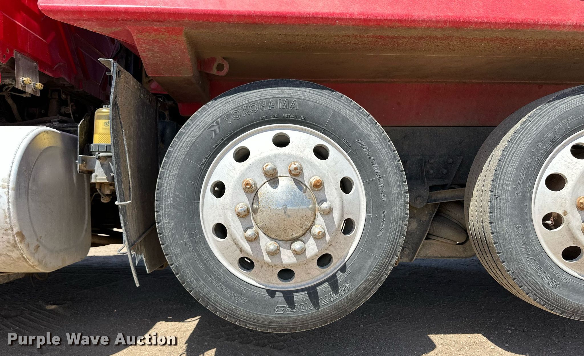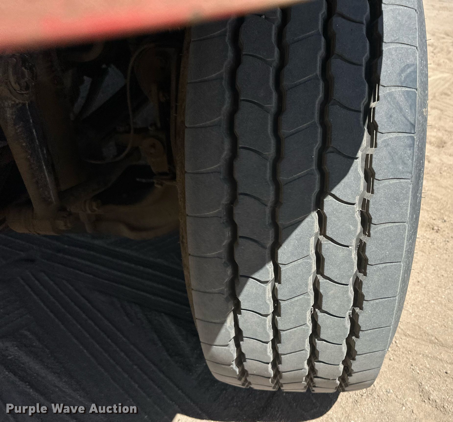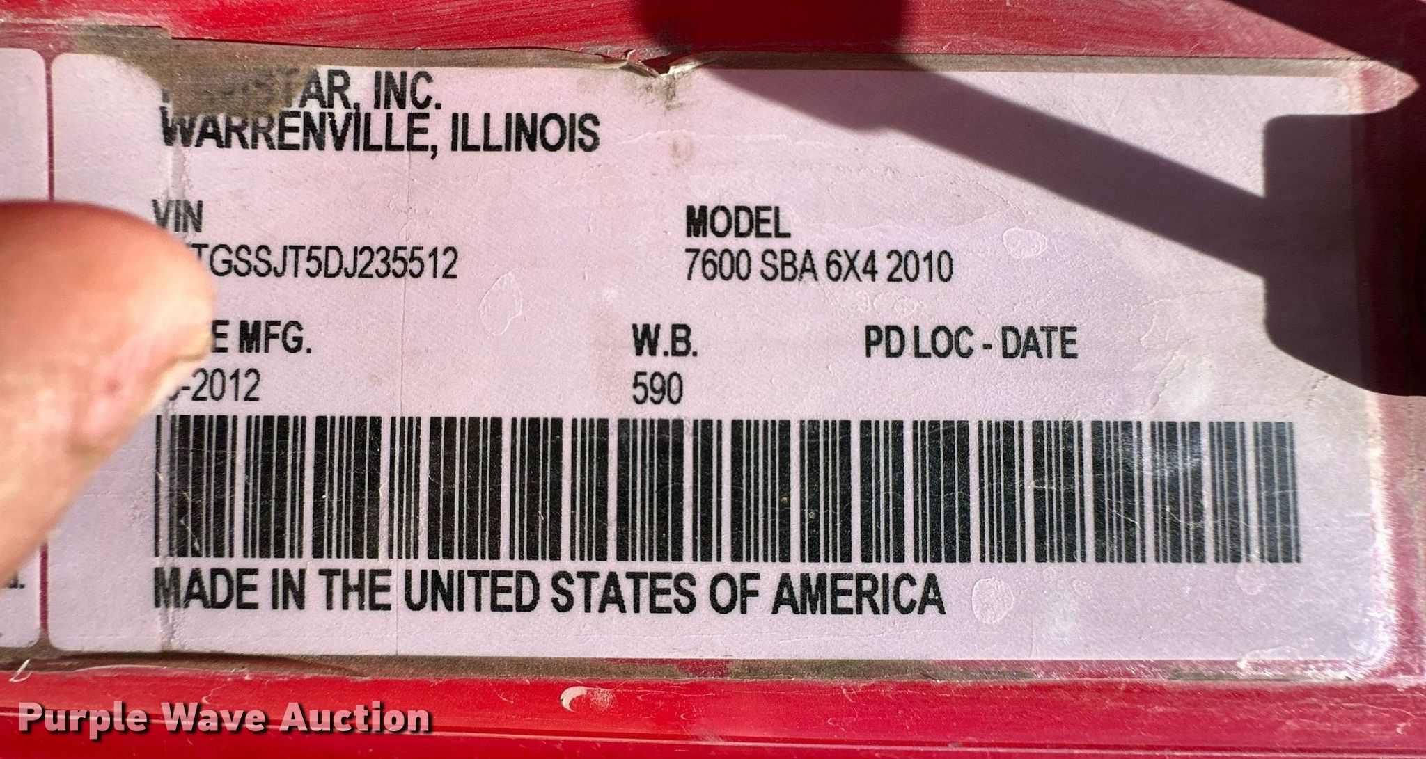 2013 International WorkStar 7600 dump truck. Miles: 691,572 on odometer, Hours: 21,515 on meter, VIN: 1HTGSSJT5DJ235512. Engine International, Displacement: 13L, Cylinders: 6, Fuel type: Diesel. Transmission Eaton Fuller, Manual. Chassis Axles: 4, Pusher axle Steerable, Differential lock: Full, Suspension: Spring over walking beam, Brakes: Air, PTO, Wheelbase: 590". Interior AC, Heat, Heated mirrors, Power windows, Cruise control. Features Dump bed 18' L x 99" W, Bed type: Steel, Roll tarp, Ram: Single, End gate: Air operated. Tires Front: 425/65R22.5, Rear: 11R22.5, Lift axle: 255/70R22.5. Notes Dash warning indicator: Check engine, ABS. Kansas title. Title distribution may be delayed up to 14 days from verification of funds. Huber Sand Inc.. Garden City, KS 67846
