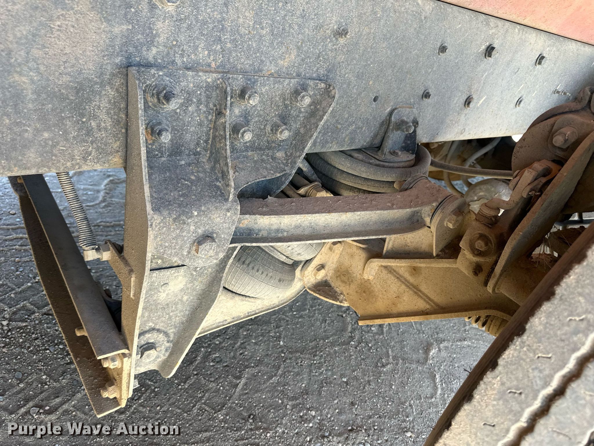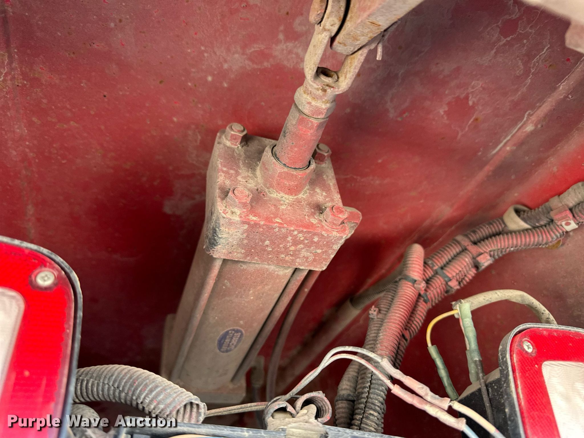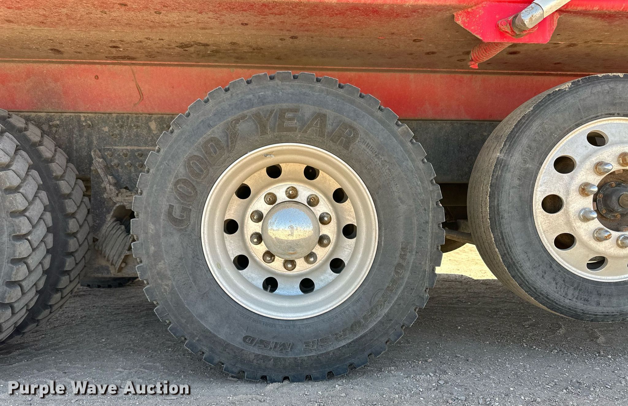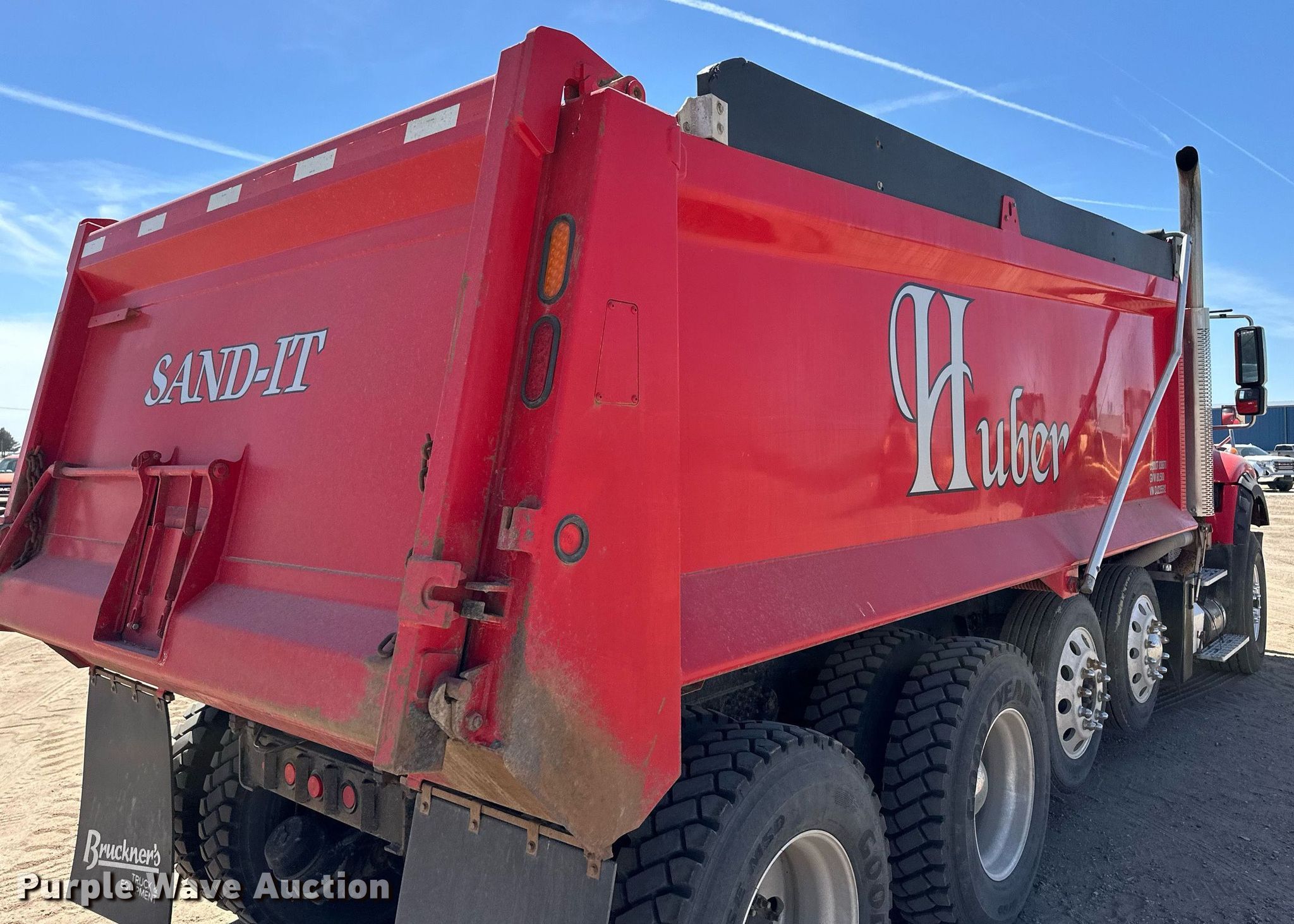 2013 International WorkStar 7600 dump truck. Miles: 691,572 on odometer, Hours: 21,515 on meter, VIN: 1HTGSSJT5DJ235512. Engine International, Displacement: 13L, Cylinders: 6, Fuel type: Diesel. Transmission Eaton Fuller, Manual. Chassis Axles: 4, Pusher axle Steerable, Differential lock: Full, Suspension: Spring over walking beam, Brakes: Air, PTO, Wheelbase: 590". Interior AC, Heat, Heated mirrors, Power windows, Cruise control. Features Dump bed 18' L x 99" W, Bed type: Steel, Roll tarp, Ram: Single, End gate: Air operated. Tires Front: 425/65R22.5, Rear: 11R22.5, Lift axle: 255/70R22.5. Notes Dash warning indicator: Check engine, ABS. Kansas title. Title distribution may be delayed up to 14 days from verification of funds. Huber Sand Inc.. Garden City, KS 67846