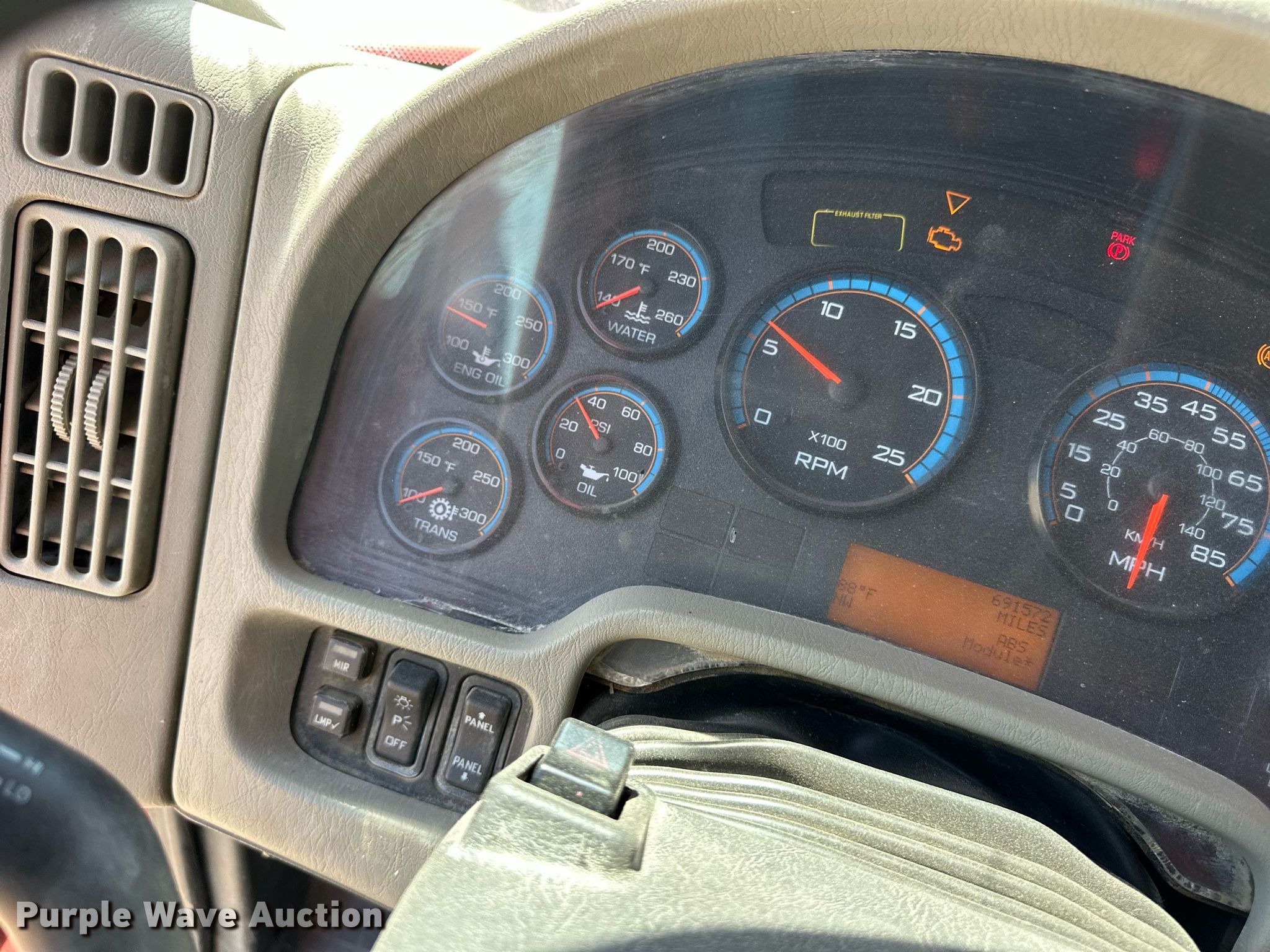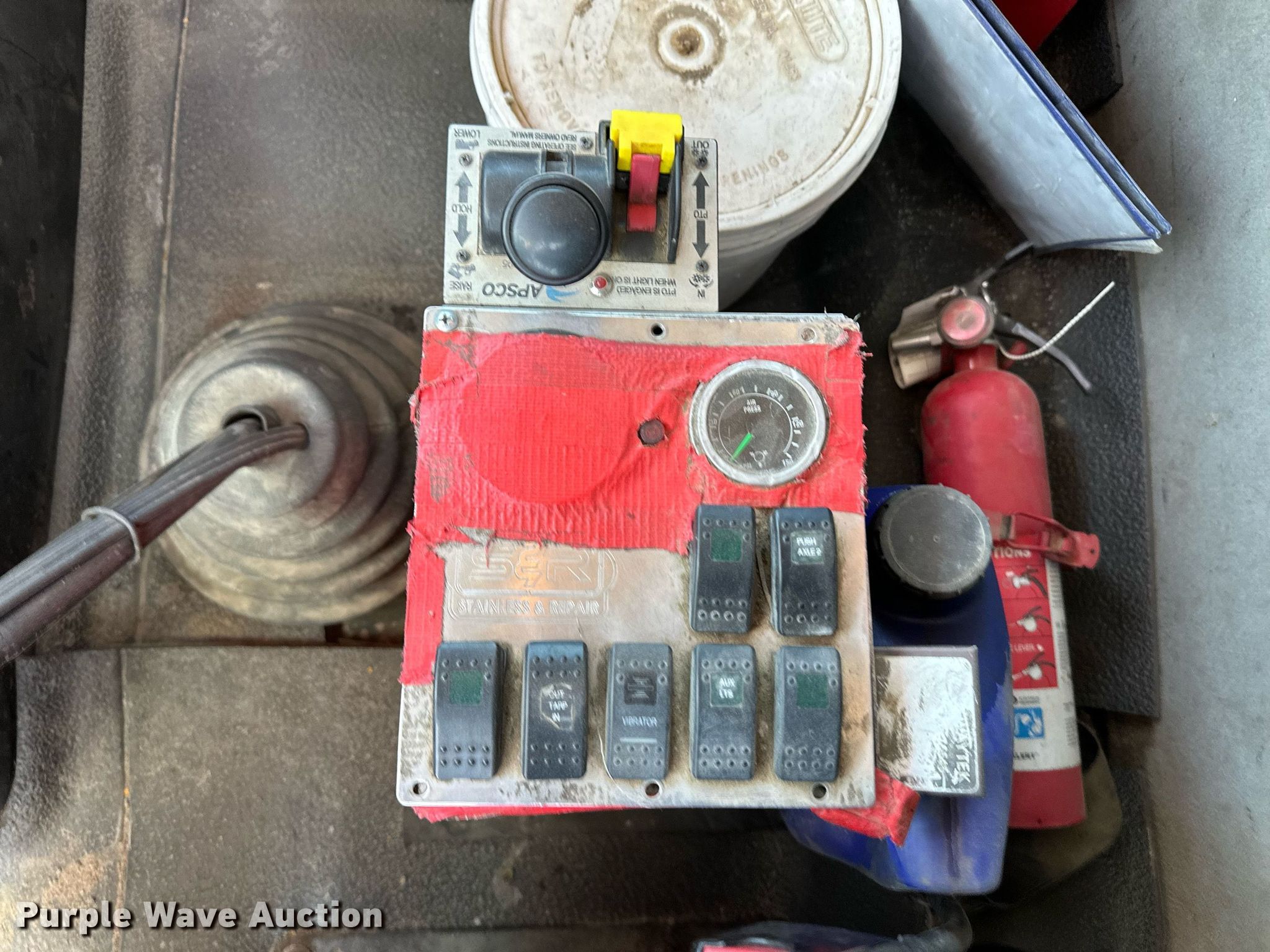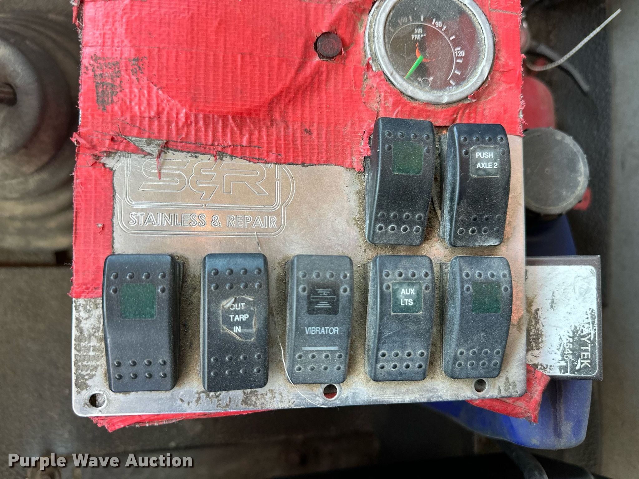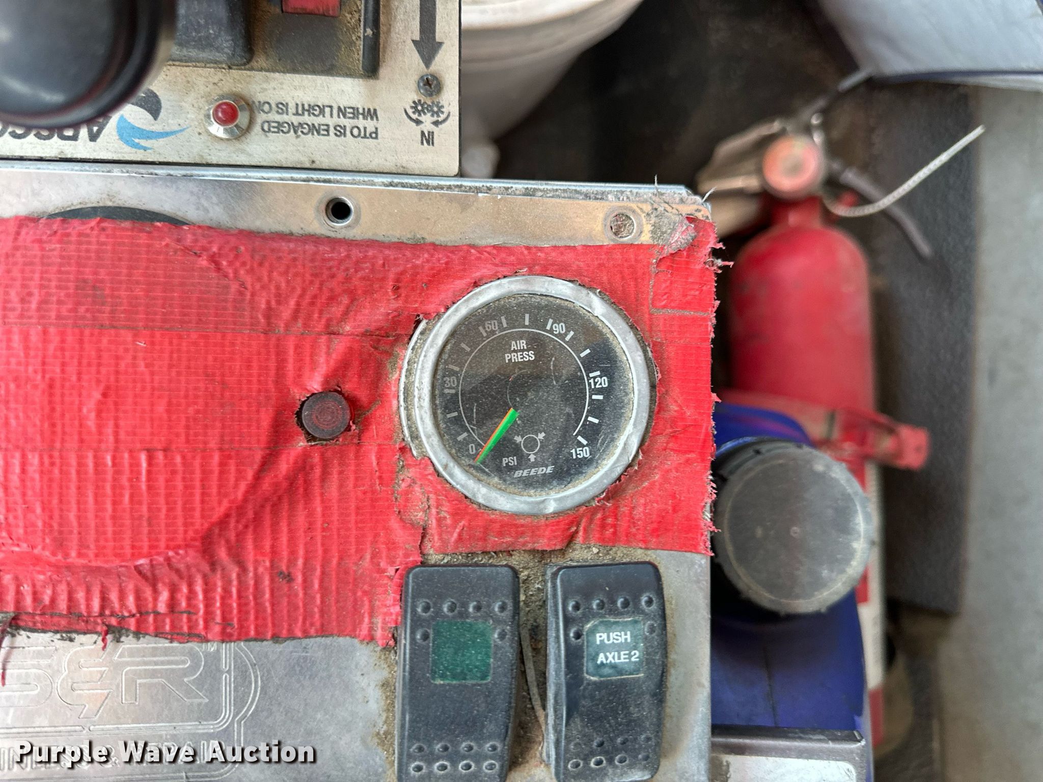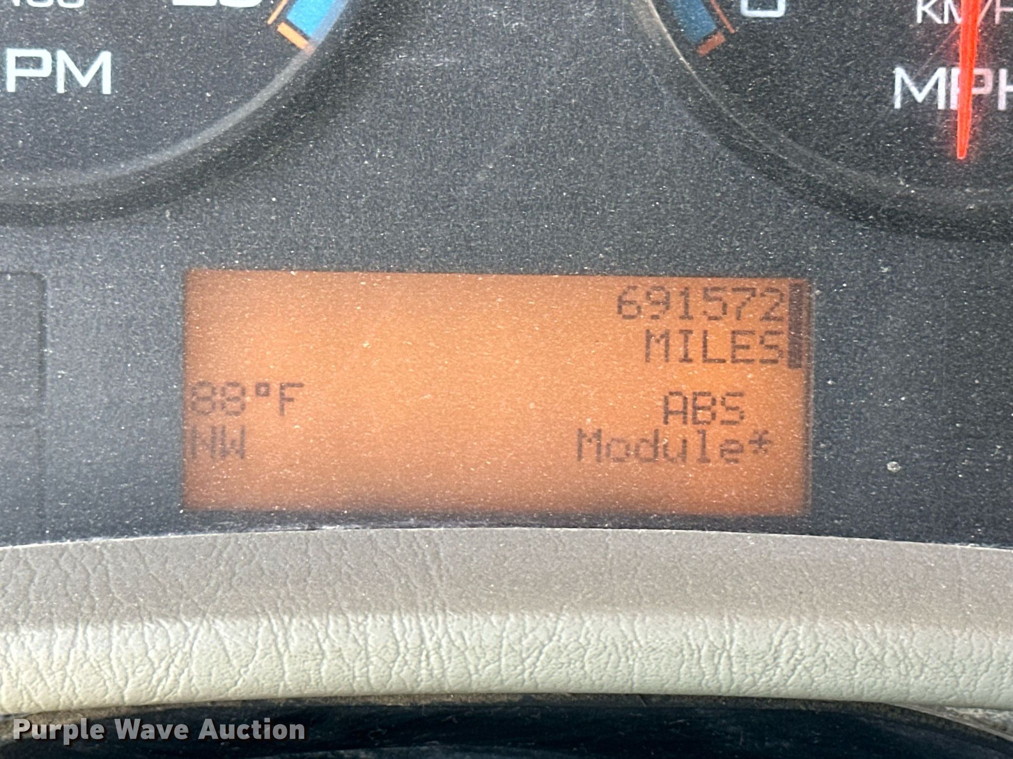 2013 International WorkStar 7600 dump truck. Miles: 691,572 on odometer, Hours: 21,515 on meter, VIN: 1HTGSSJT5DJ235512. Engine International, Displacement: 13L, Cylinders: 6, Fuel type: Diesel. Transmission Eaton Fuller, Manual. Chassis Axles: 4, Pusher axle Steerable, Differential lock: Full, Suspension: Spring over walking beam, Brakes: Air, PTO, Wheelbase: 590". Interior AC, Heat, Heated mirrors, Power windows, Cruise control. Features Dump bed 18' L x 99" W, Bed type: Steel, Roll tarp, Ram: Single, End gate: Air operated. Tires Front: 425/65R22.5, Rear: 11R22.5, Lift axle: 255/70R22.5. Notes Dash warning indicator: Check engine, ABS. Kansas title. Title distribution may be delayed up to 14 days from verification of funds. Huber Sand Inc.. Garden City, KS 67846