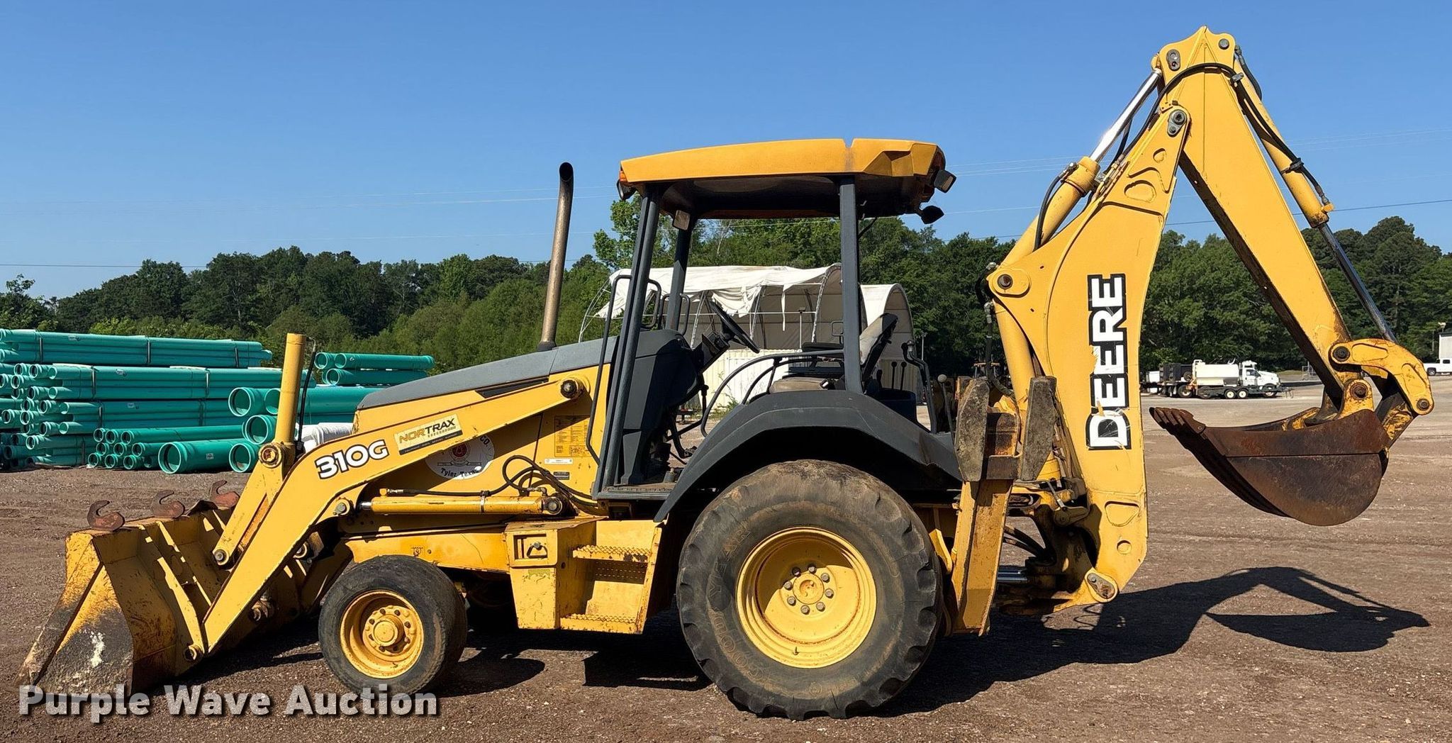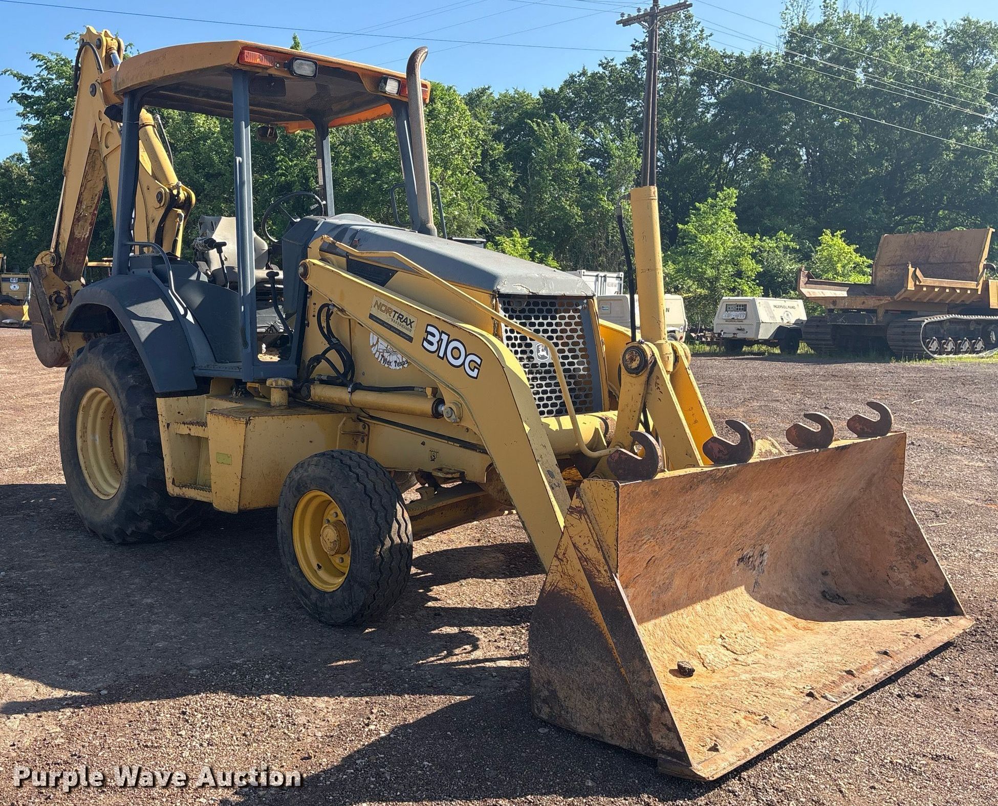2005 John Deere 310G backhoe. Hours: 3,496 on meter, Serial: T0310GX951221. Engine John Deere 4045DT058, Displacement: 4.5L, Cylinders: 4, Fuel type: Diesel, kW: 56. Transmission Shuttle shift, 4F - 4R. Chassis Differential lock. Operators station OROPS, Backhoe controls: Wobble stick / two stick. Features Loader Bucket John Deere AT307071, Capacity: 1.12 cu.yd., Width: 84", Cutting edge: Weld-on, Backhoe Bucket Width: 24", Teeth: 5.. Tires Front: 11L-16, Rear: 19.5L-24. A E Shull & CO. Tyler, TX 75707