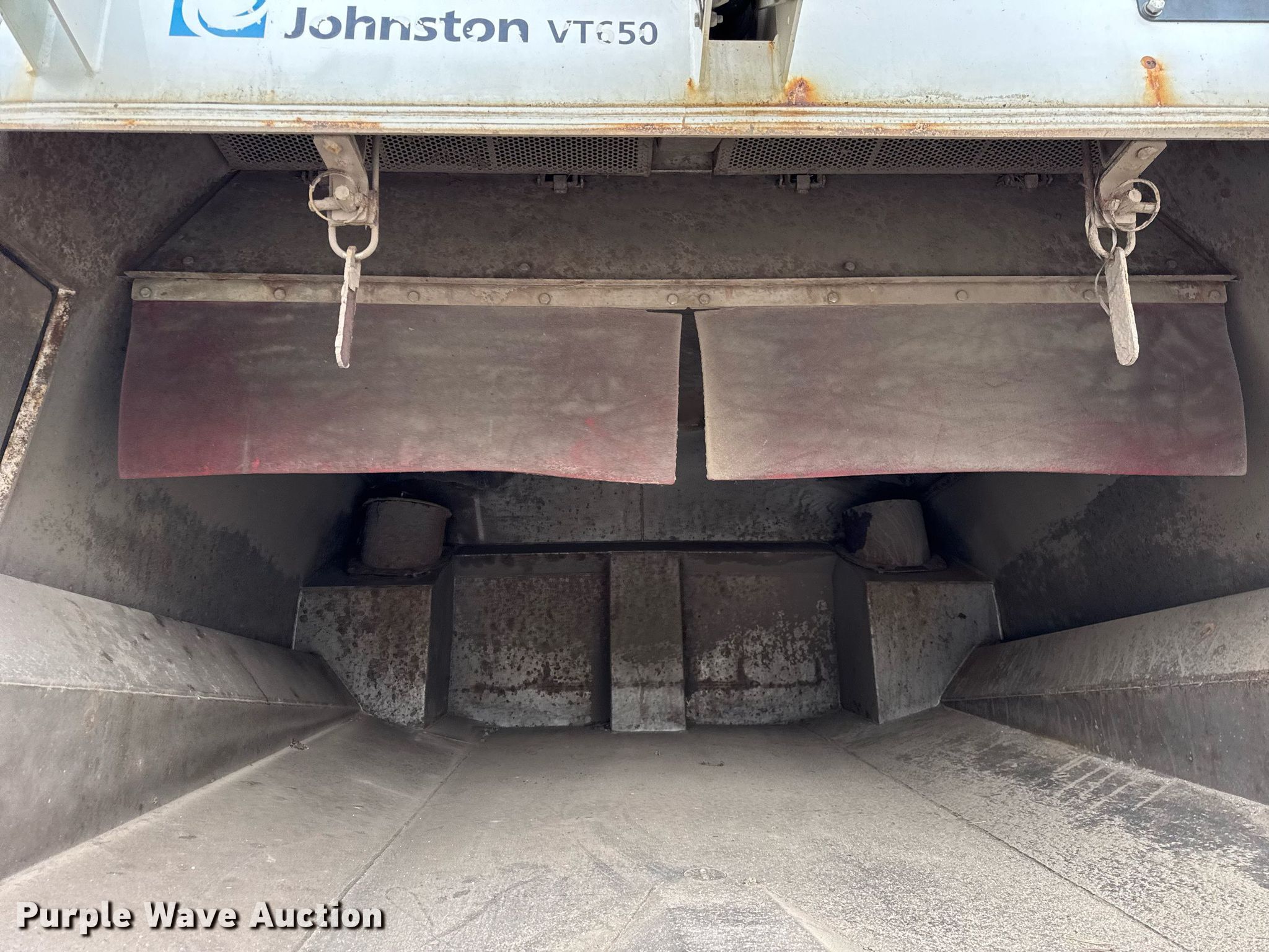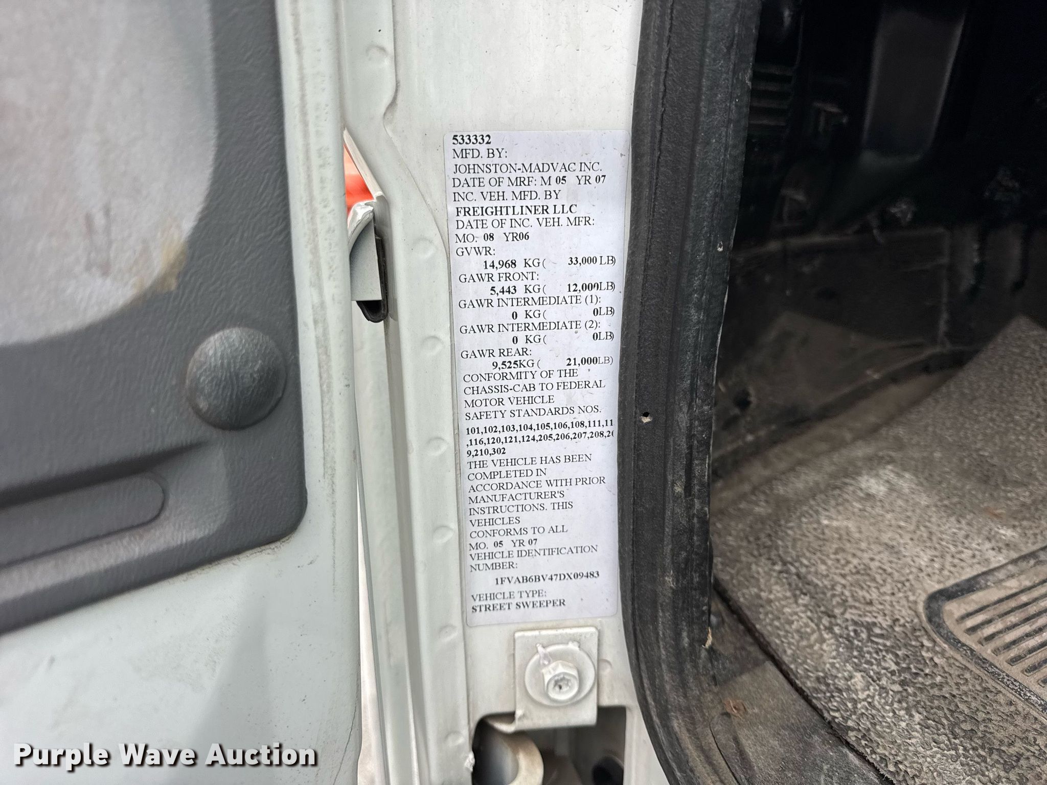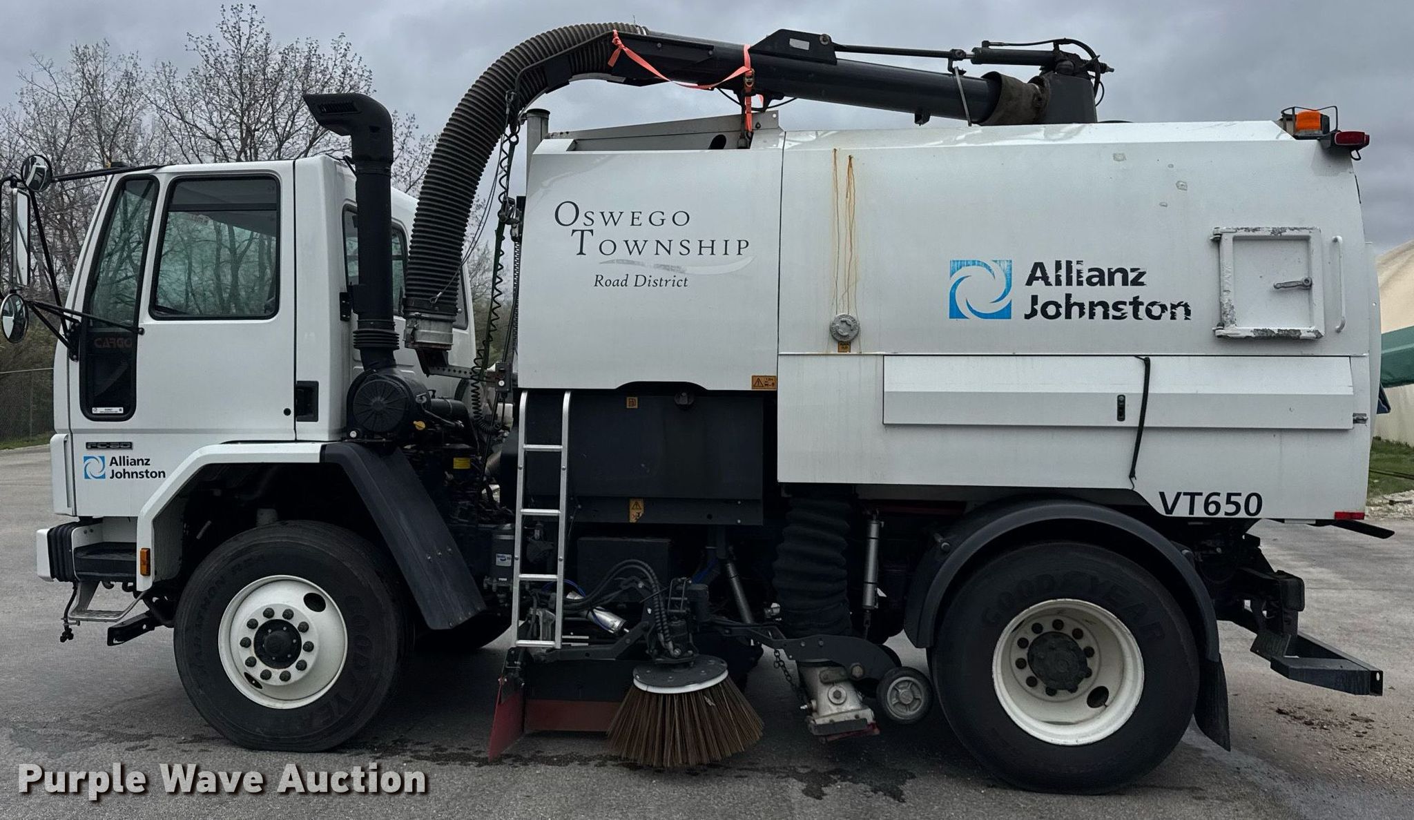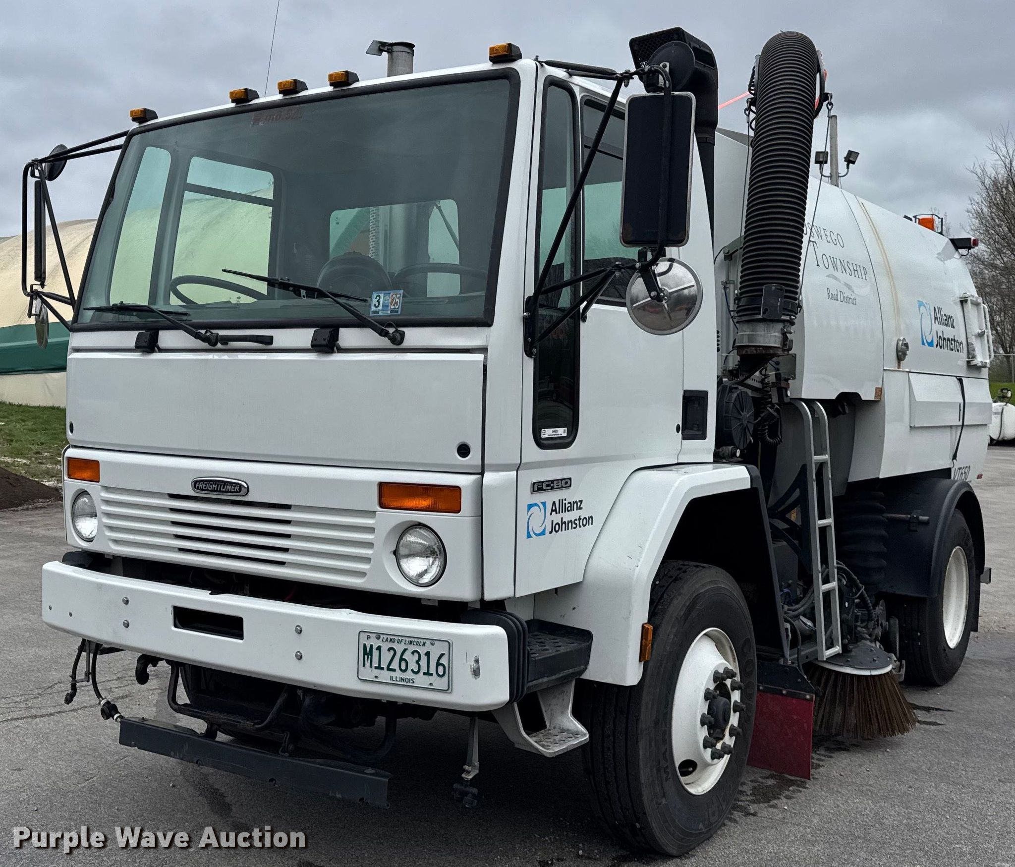 2007 Freightliner FC80 street sweeper truck. Kilometers: 19,755 on odometer, Kilometers: 19,784 on second odometer, VIN: 1FVAB6BV47DX09483. Engine Cummins, Displacement: 5.9L, Cylinders: 6, Fuel type: Diesel. Transmission Automatic. Chassis Suspension: Spring, Brakes: Air. Operators station AC, Heat, Dual operating station. Features Broom Width: 56", Water spray system Capacity: 343 gallons, Sweeper bed Sweeper bed type: Vacuum Alliaz Johnston VT650, Left gutter broom Diameter: 24", Right gutter broom Diameter: 24", Engine John Deere Powertech, Displacement: 4.5L, Cylinders: 4. Tires Size: 11R22.5. Notes Decals will be removed prior to auction, Manuals, Non-operational boom, rusted. Illinois title. Title distribution may be delayed up to 30 days from verification of funds. Oswego Township Highway Commission - Open inspection May 22. Oswego, IL 60543