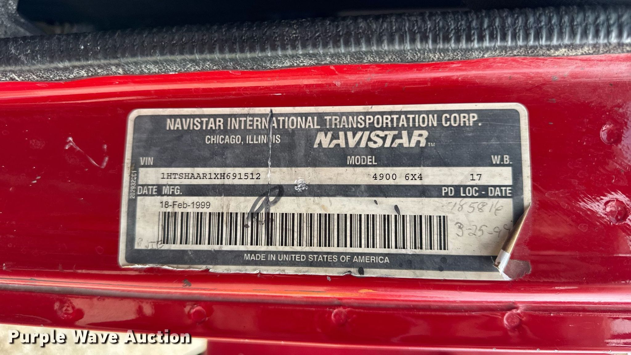 Purple Wave is selling a used Construction Dump Truck in Illinois. This item is a 1999 International F4900 dump truck with the following: Miles: 93,274 on odometer, Hours: 8,021 on meter, VIN: 1HTSHAAR1XH691512