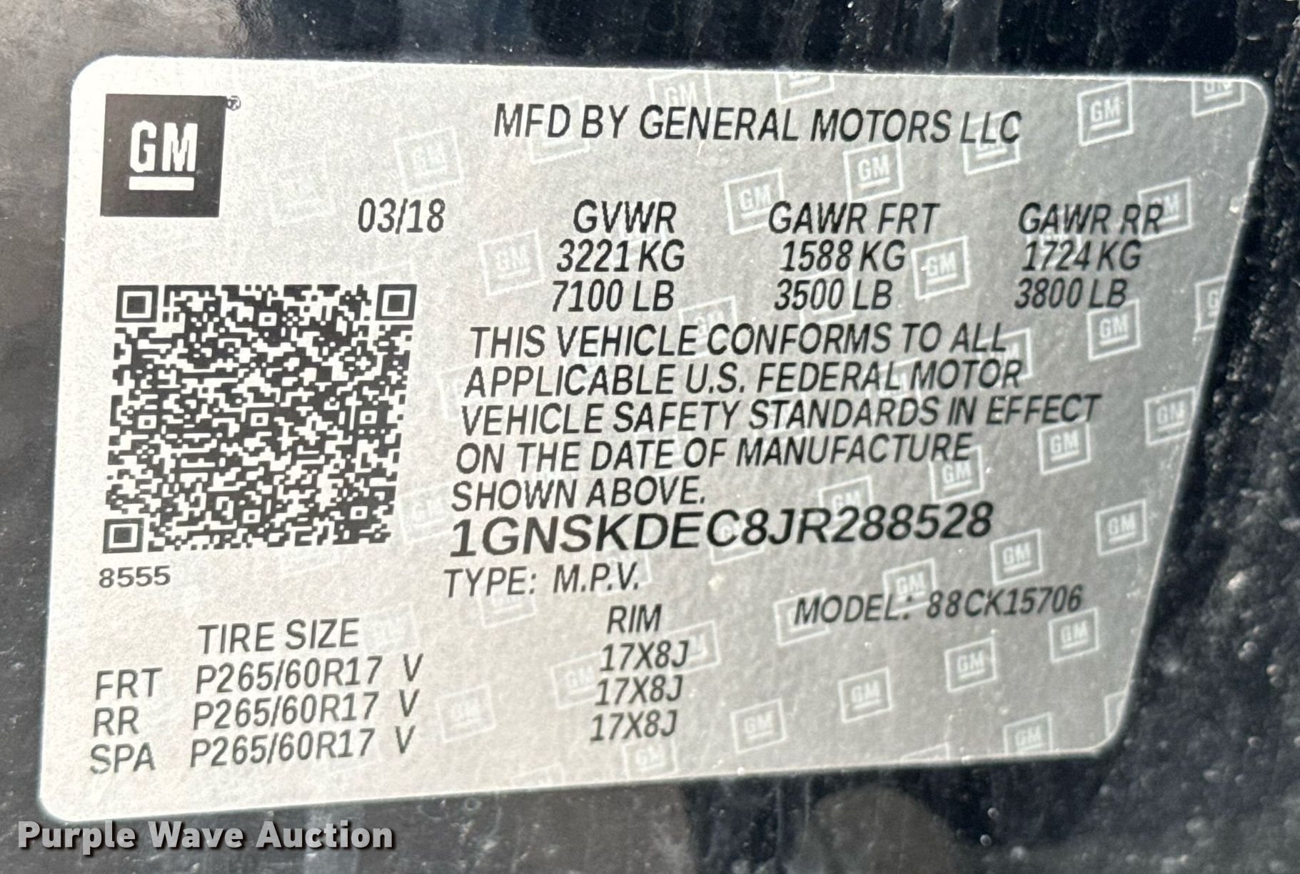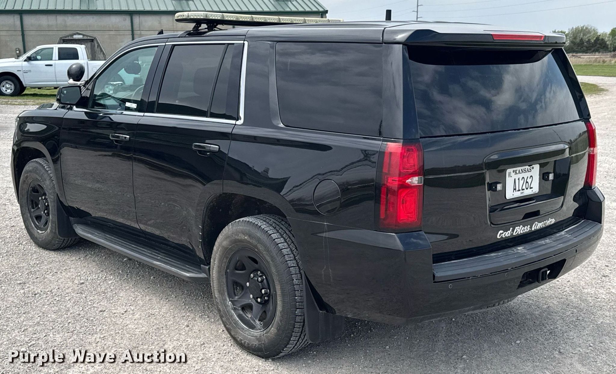 Purple Wave is selling a used Passenger Vehicle in Kansas. This item is a 2018 Chevrolet Tahoe Police SUV with the following: Miles: 119,626 on odometer, Miles or hours may vary, unit still in use, VIN: 1GNSKDEC8JR288528