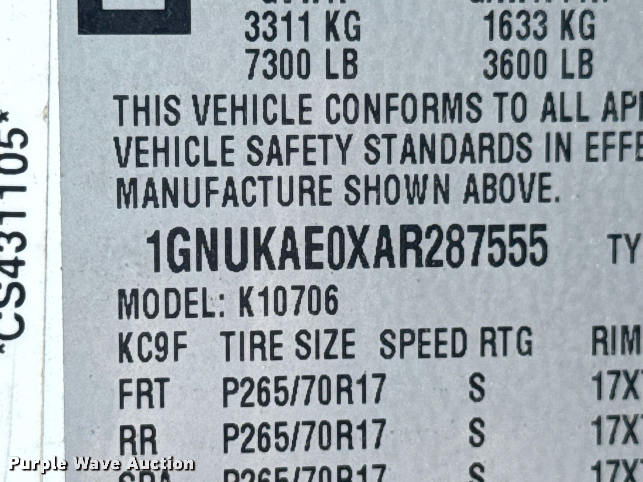 Purple Wave is selling a used Passenger Vehicle in Oklahoma. This item is a 2010 Chevrolet Tahoe SUV with the following: Miles: 115,292 on odometer, VIN: 1GNUKAE0XAR287555