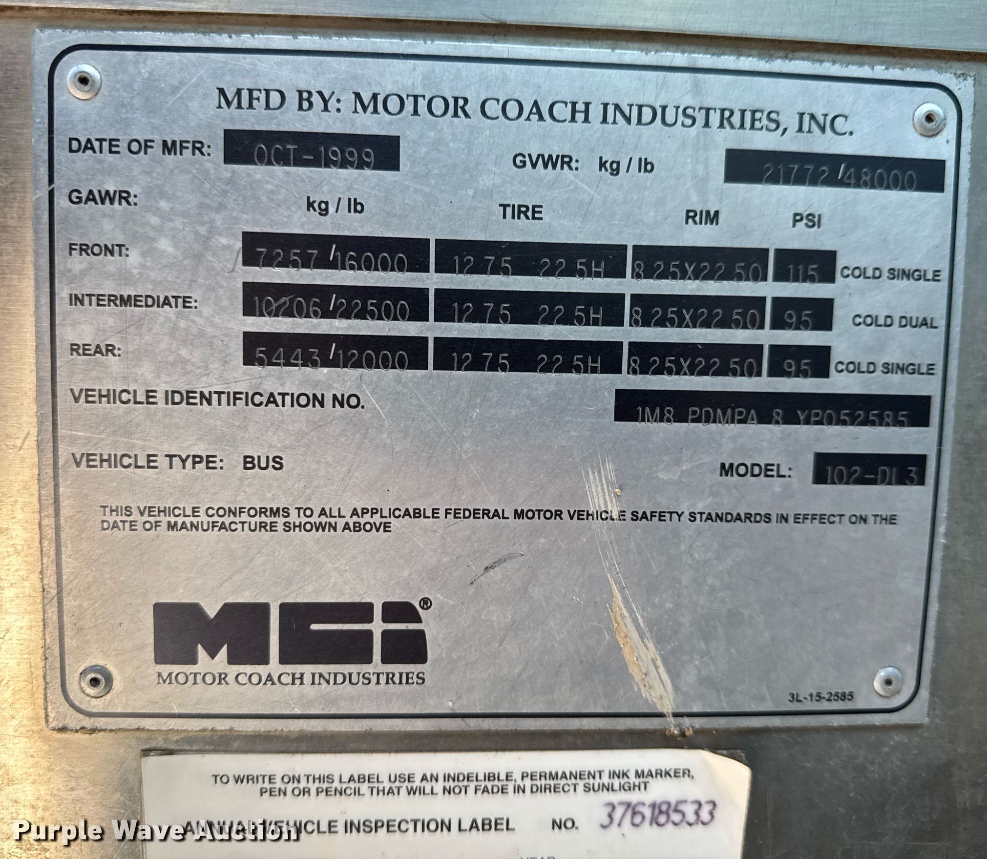 2000 MCI 102-DL3 coach bus | SOLD! May 27 Government Auction