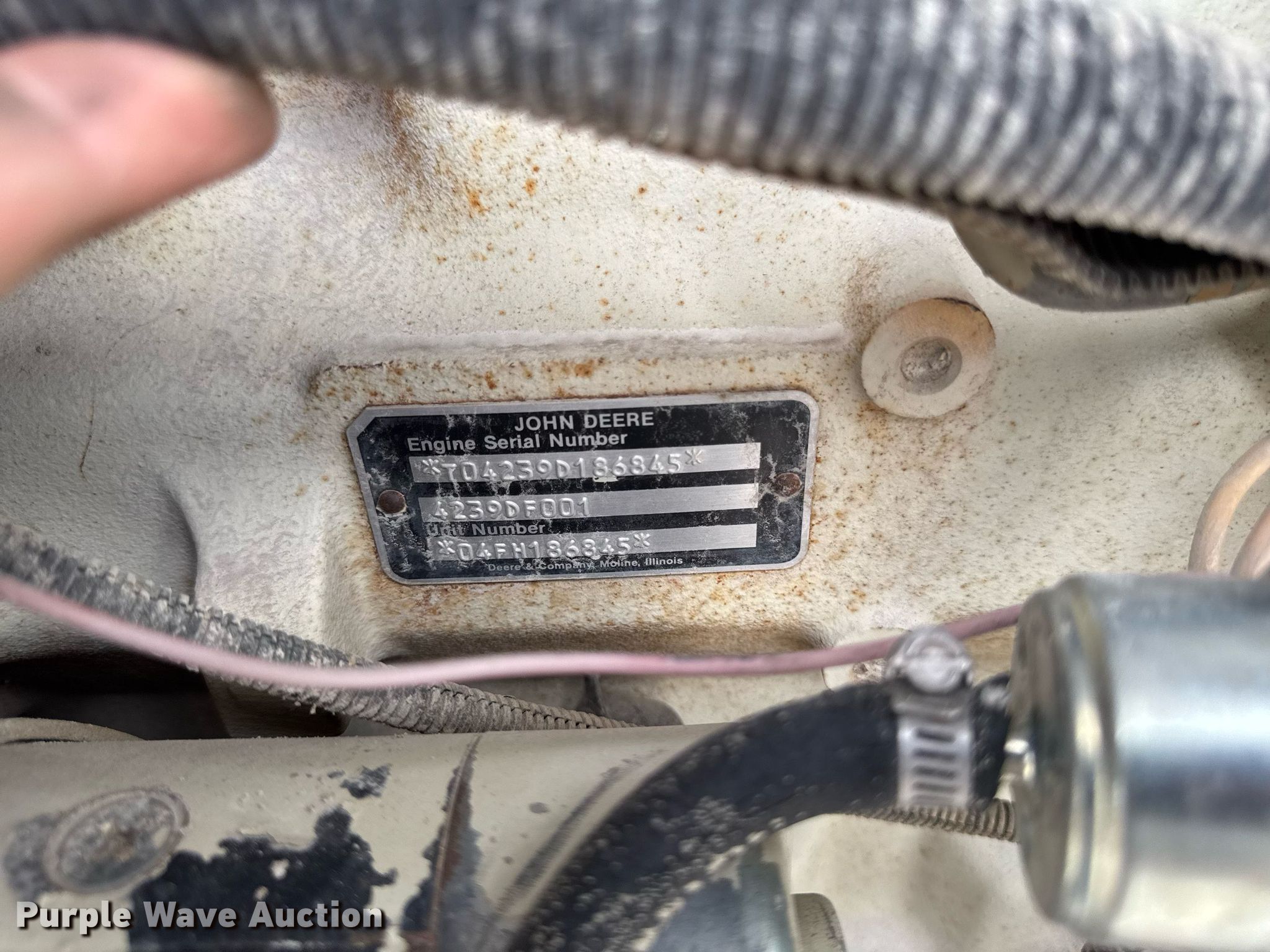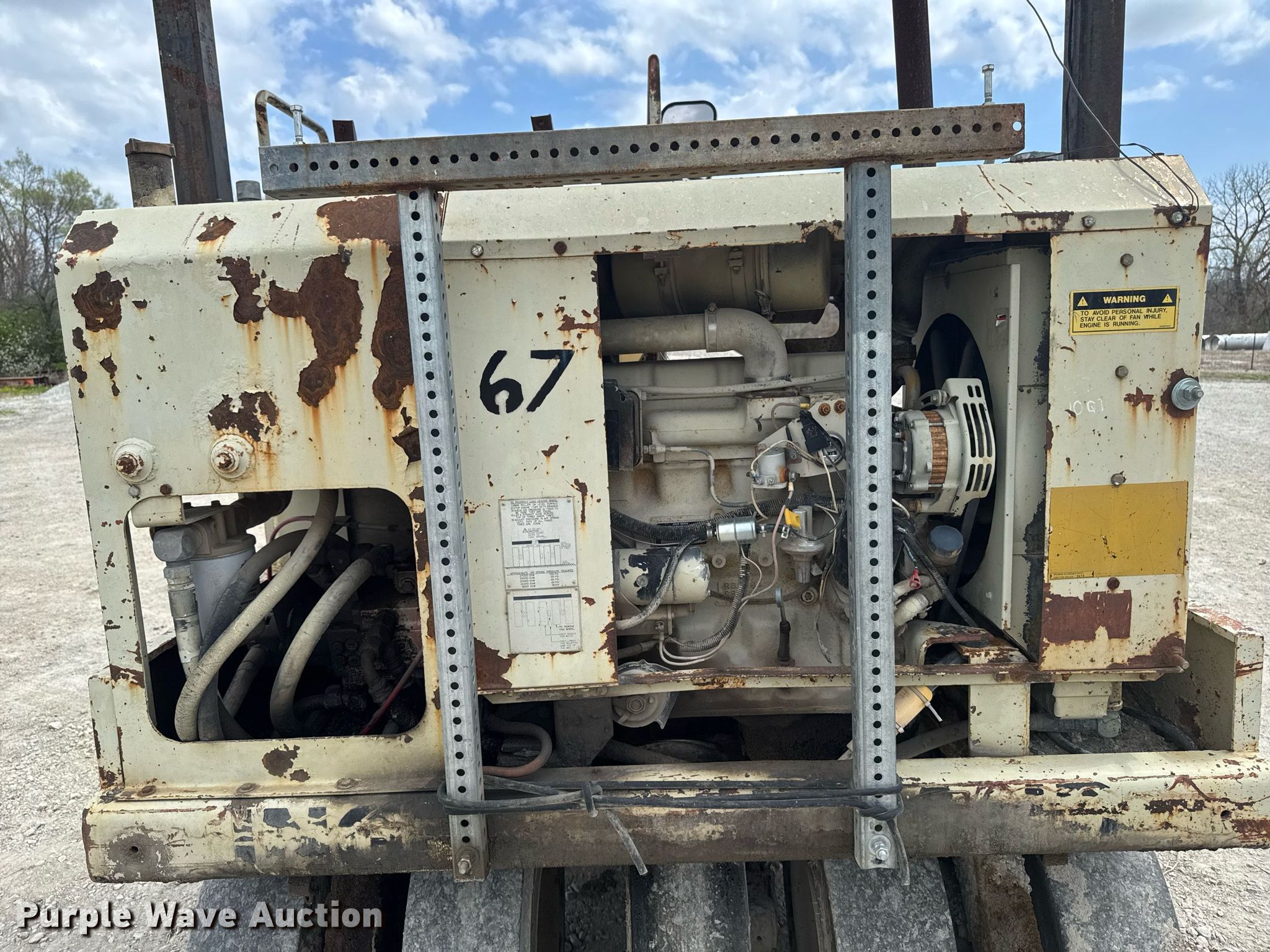 Ingersoll-Rand PT-120R pneumatic roller. Hours: Unknown, Serial: 3181876A1. Engine John Deere 4239DF001, Serial: T04239D186845, Cylinders: 4, Fuel type: Diesel. Transmission Hydrostatic, Two speed travel, 2F - 2R. Features Water spray applicator: Front. Tires Size: 7.5-15. Notes Hydraulic leak, Non-operational hour meter. Decatur County Secondary Roads. Leon, IA 50144