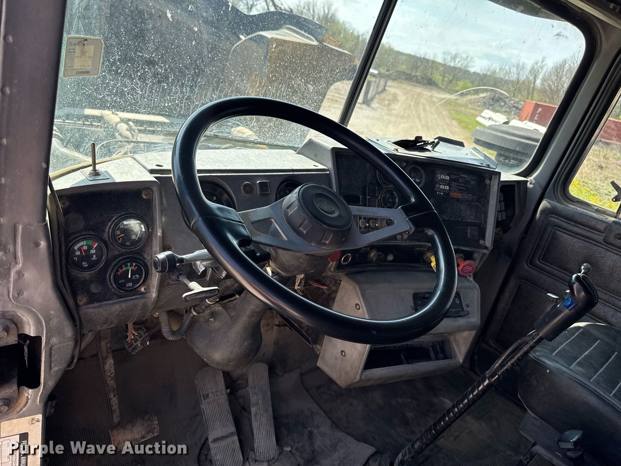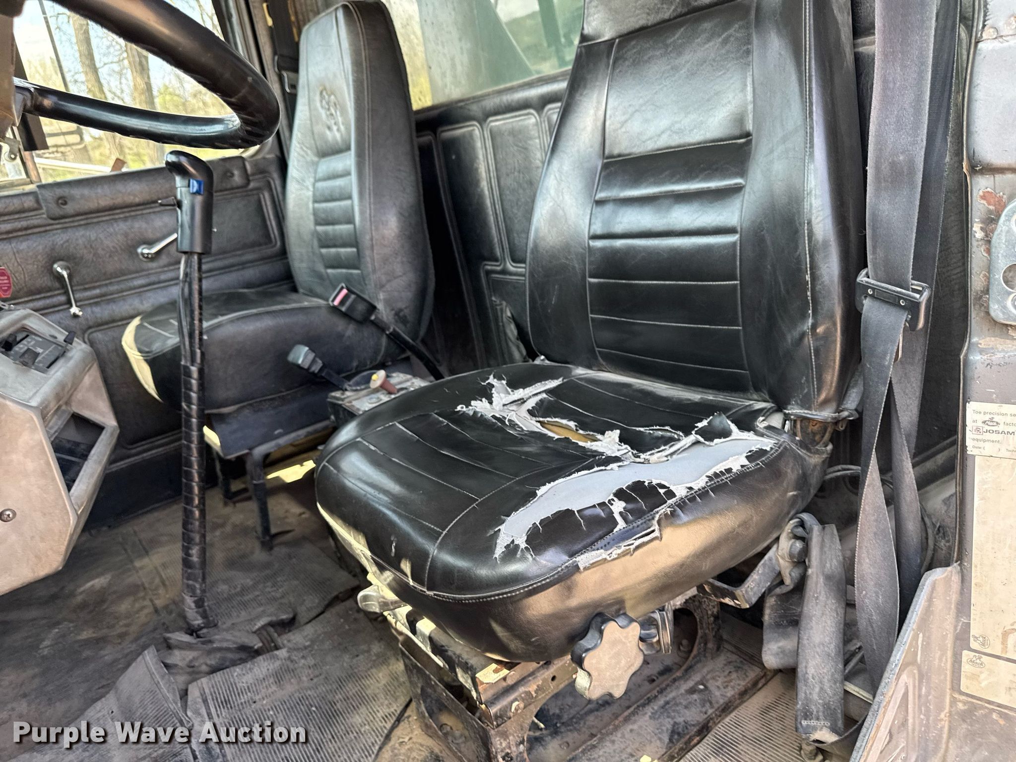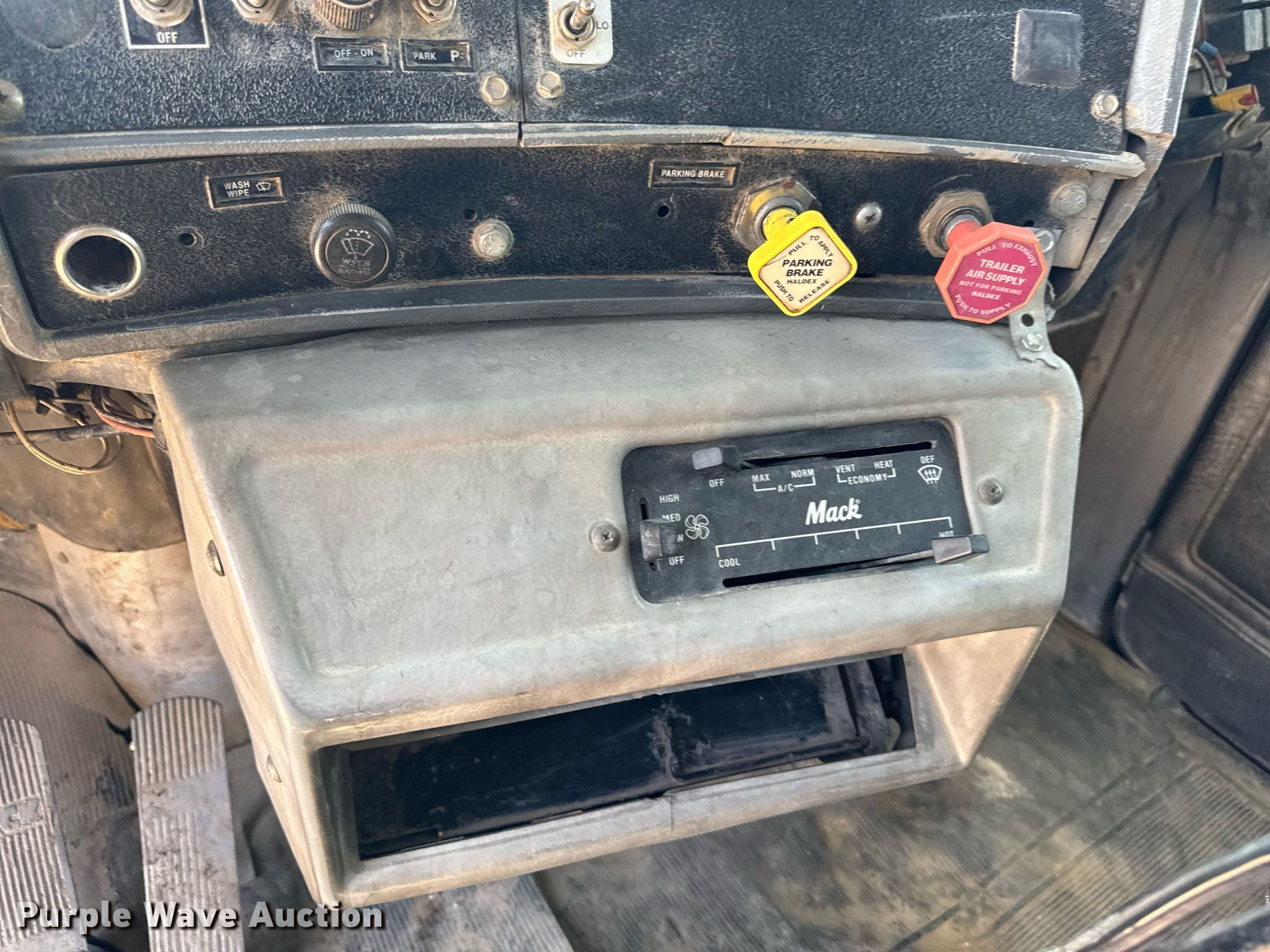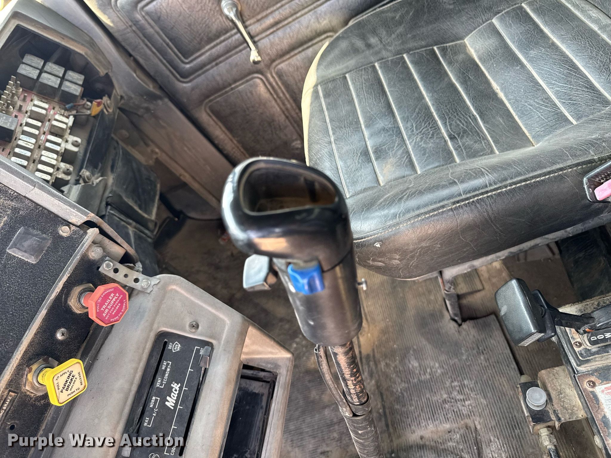 1998 Mack RD688S dump truck. Miles: 499,554 on odometer, Hours: 28,377 on meter, VIN: 1M2P267C7WM035370. Engine Mack E7-350, Displacement: 12.0L, Cylinders: 6, Fuel type: Diesel, HP: 350, Engine brake. Transmission Eaton Fuller 8LL, Manual, Speed: 10. Chassis Double frame, Axles: Tandem, Suspension: Camelback, Brakes: Air, PTO. Interior AC, Heat, Heated mirrors. Features Dump bed 17' L x 96" W, Side height: 63", Side board height: 12", Bed type: Steel, Roll tarp, Ram: Single, End gate: Air operated. Tires Front: 385/65R22.5, Rear: 11R24.5. Notes Windshield chipped or cracked, Dump bed issues, slow. Iowa title. Title distribution may be delayed up to 14 days from verification of funds. Decatur County Secondary Roads. Leon, IA 50144