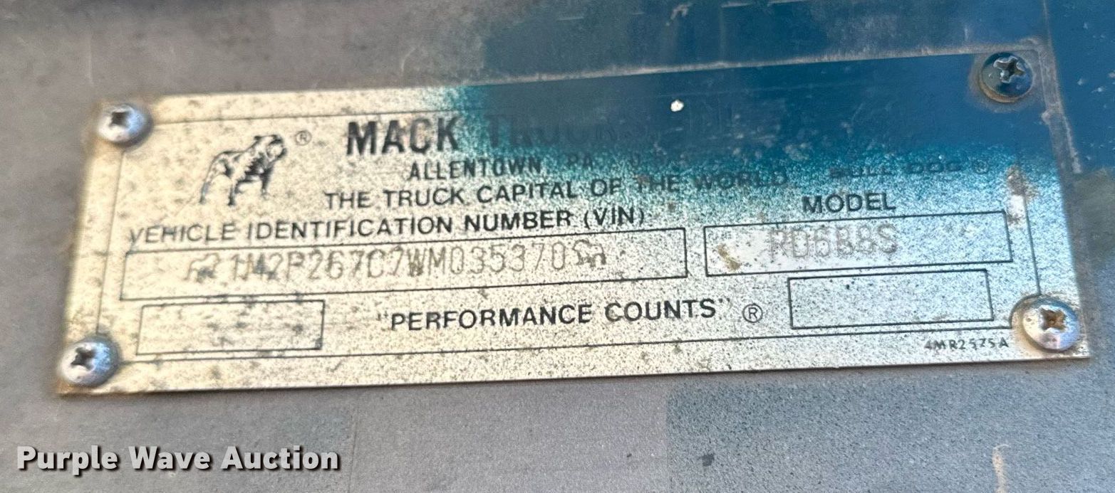 Take a look at this used 1998 Mack RD688S dump truck being sold on May 27th, 2025 in the SOLD! May 27 Government Auction made by Mack. Take a look at all of the item information below or take a look at similar auctions for Construction Trucks.