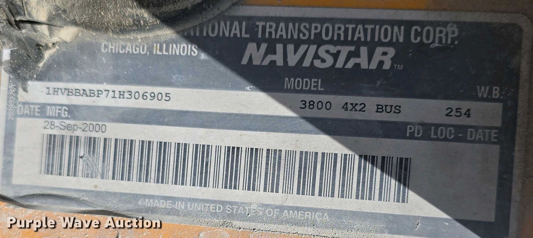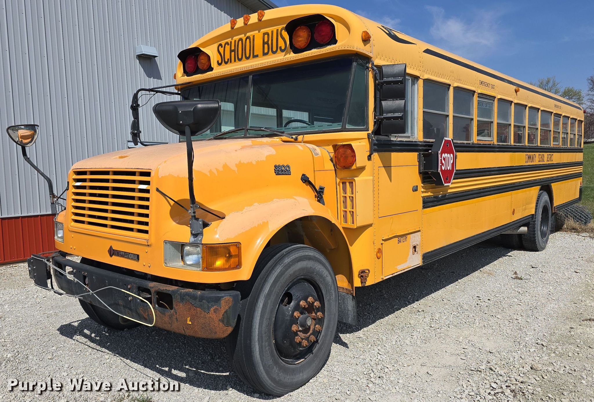2003 Blue Bird 3800 school bus. Miles: 153,880 on odometer, Hours: 6,053 on meter, VIN: 1HVBBABP71H306905, Unit #: 2. Engine International T444E, Displacement: 7.3L, Cylinders: 8, Fuel type: Diesel. Transmission Automatic. Chassis Axles: Single, Suspension: Spring, Brakes: Hydraulic, GVWR: 27,500 lbs, Wheelbase: 254". Interior Heat, Heated mirrors, Cruise control, Passengers: 65. Tires Size: 11R22.5. Notes Dead battery. Iowa title. Seller is a government entity who will be assigning and distributing the title. Please contact the seller for distribution questions. Treynor, IA 51575
