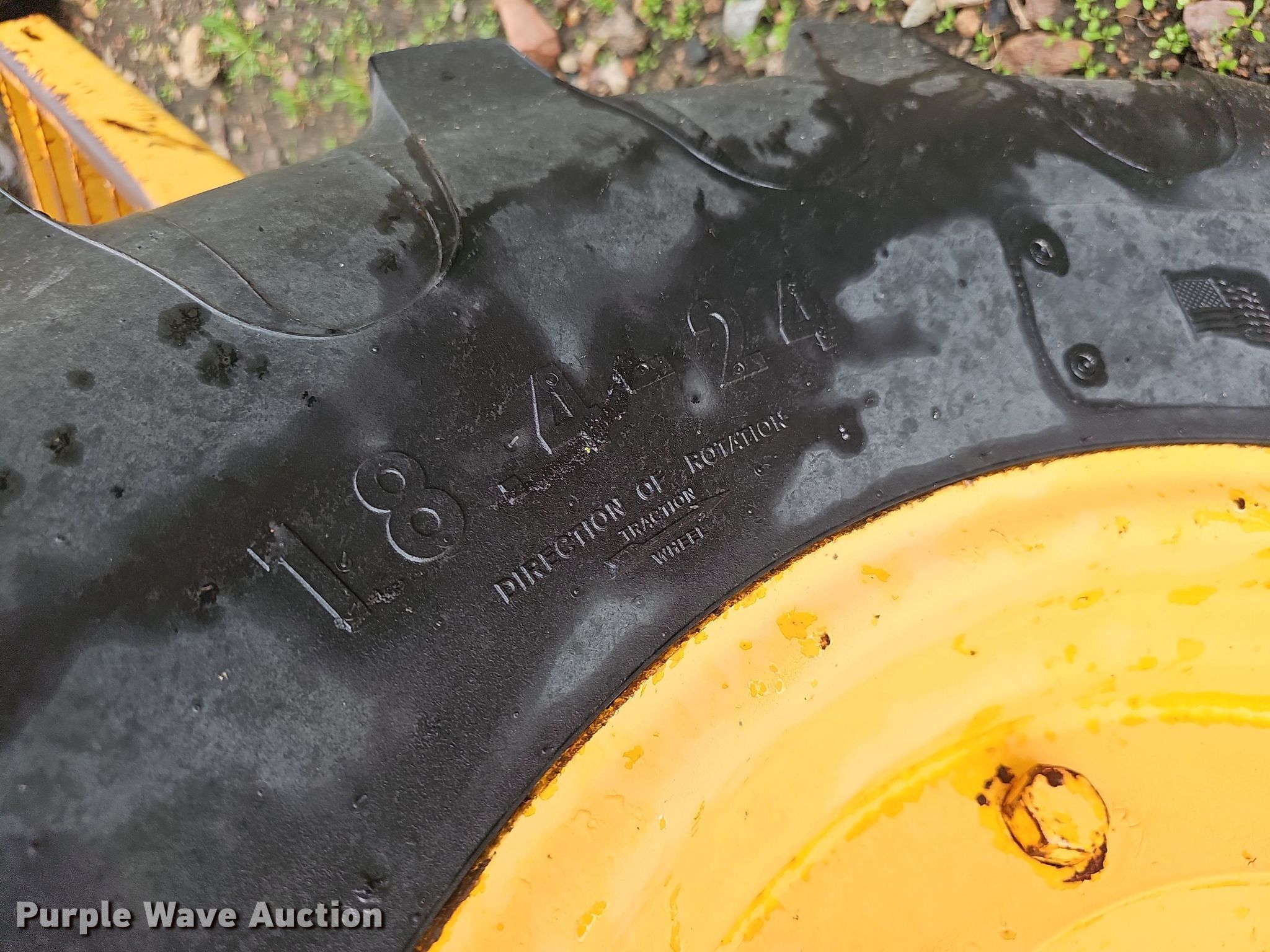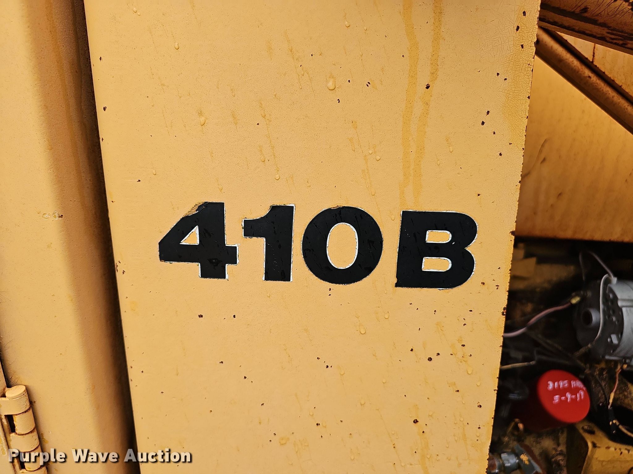 1981 John Deere 410B backhoe. Hours: 3,195 on meter, Serial: 150858. Engine John Deere, Serial: 222545, Cylinders: 4, Fuel type: Diesel. Transmission Powershift, 4F - 4R. Operators station Enclosed cab, Backhoe controls: Wobble stick / two stick. Features Loader Bucket leveler, Width: 89", Cutting edge: Bolt-on, Backhoe Auxiliary hydraulics, Bucket Width: 24", Teeth: 5.. Tires Front: 10.00-16, Rear: 18.4-24. Notes Non-operational engine, Non-operational unit. Village of Utica Nebraska. Utica, NE 68456