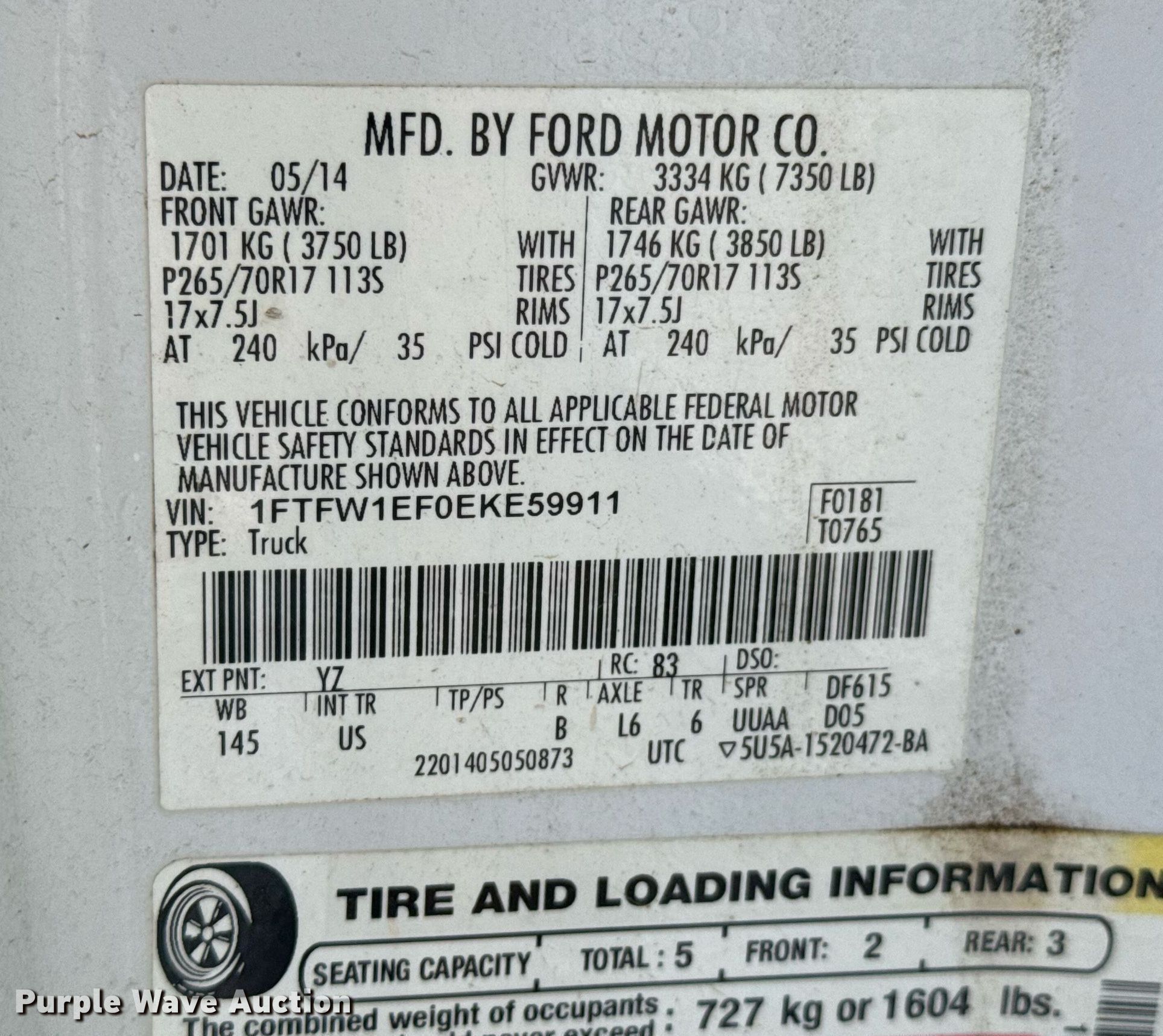 Purple Wave is selling a used 1/2 Ton Pickup or Van in Oklahoma. This item is a 2014 Ford F150 SuperCrew pickup truck with the following: Miles: 137,003 on odometer, VIN: 1FTFW1EF0EKE59911