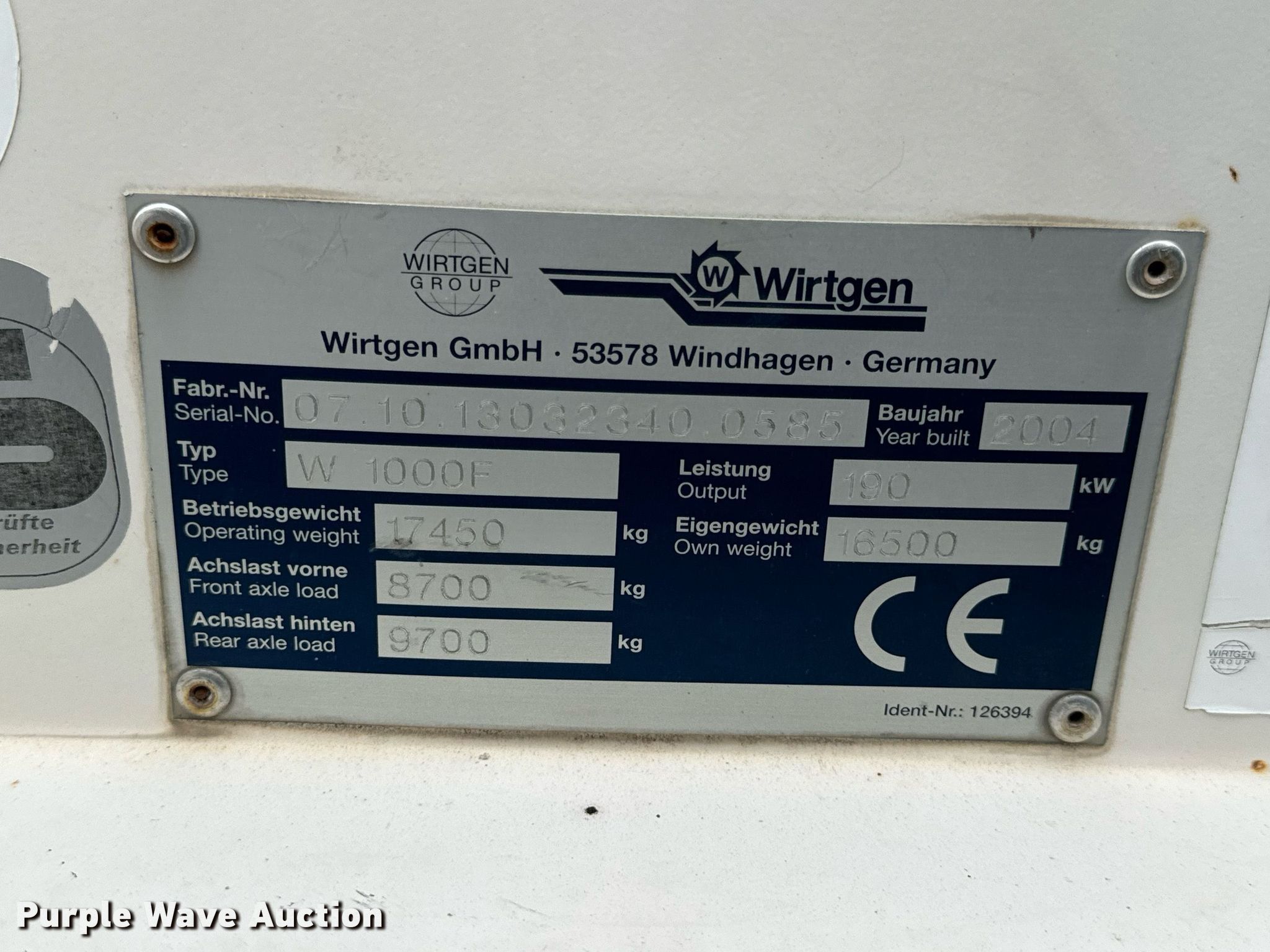 This 2004 Wirtgen W1000F milling machine will sell to the highest bidder regardless of price.