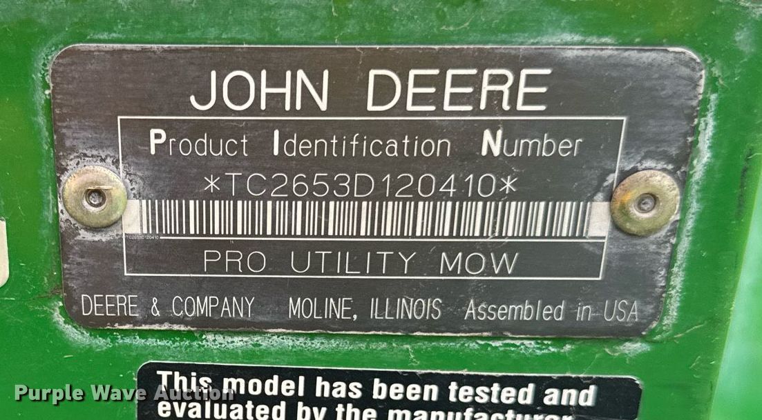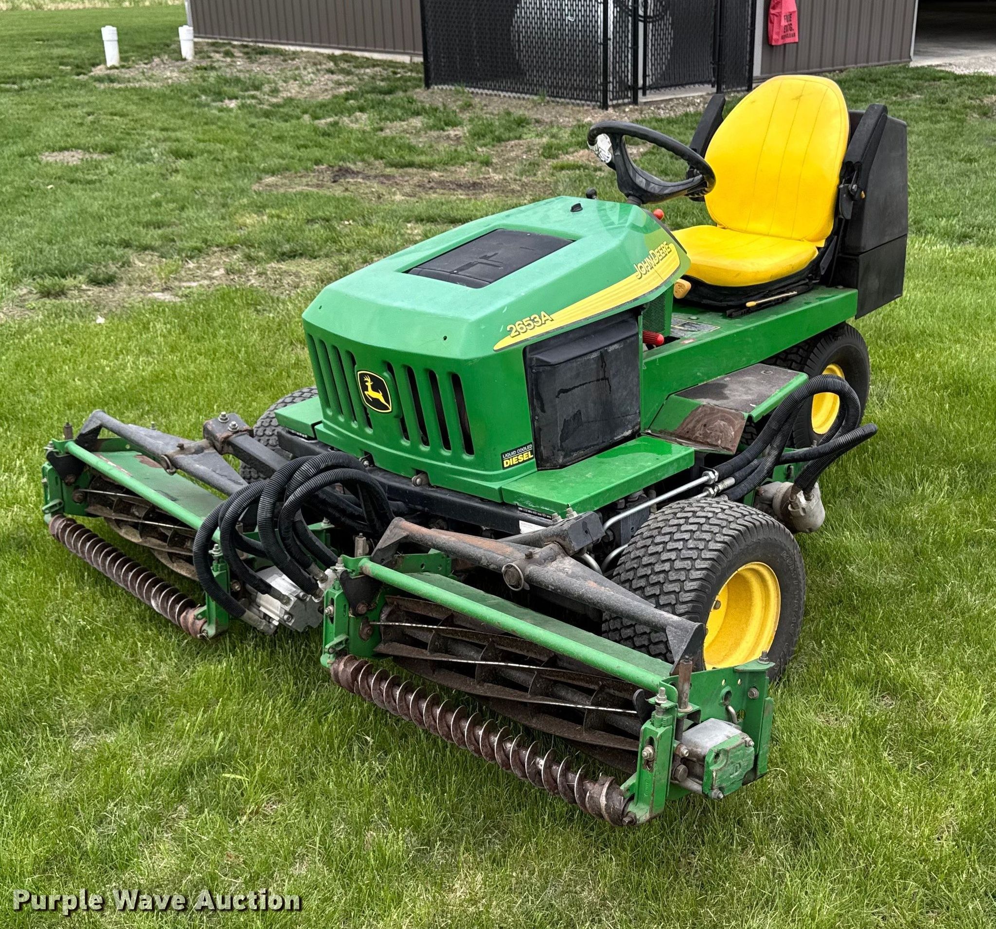 Purple Wave is selling a used Commercial Turf Mower in Iowa. This item is a John Deere 2653A reel mower with the following: Hours: Unknown, Cutting width: 84", Serial: TC2653D120410