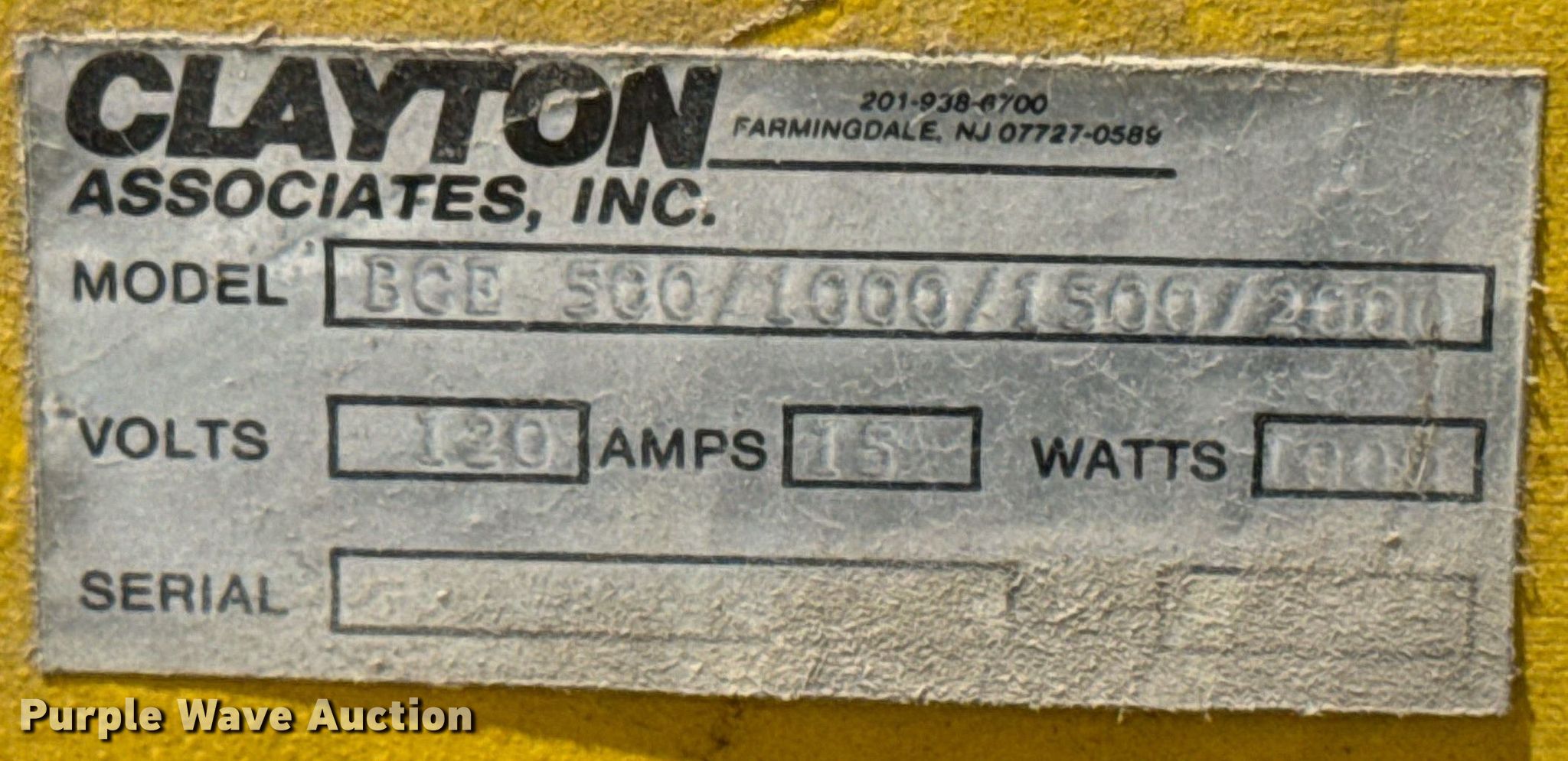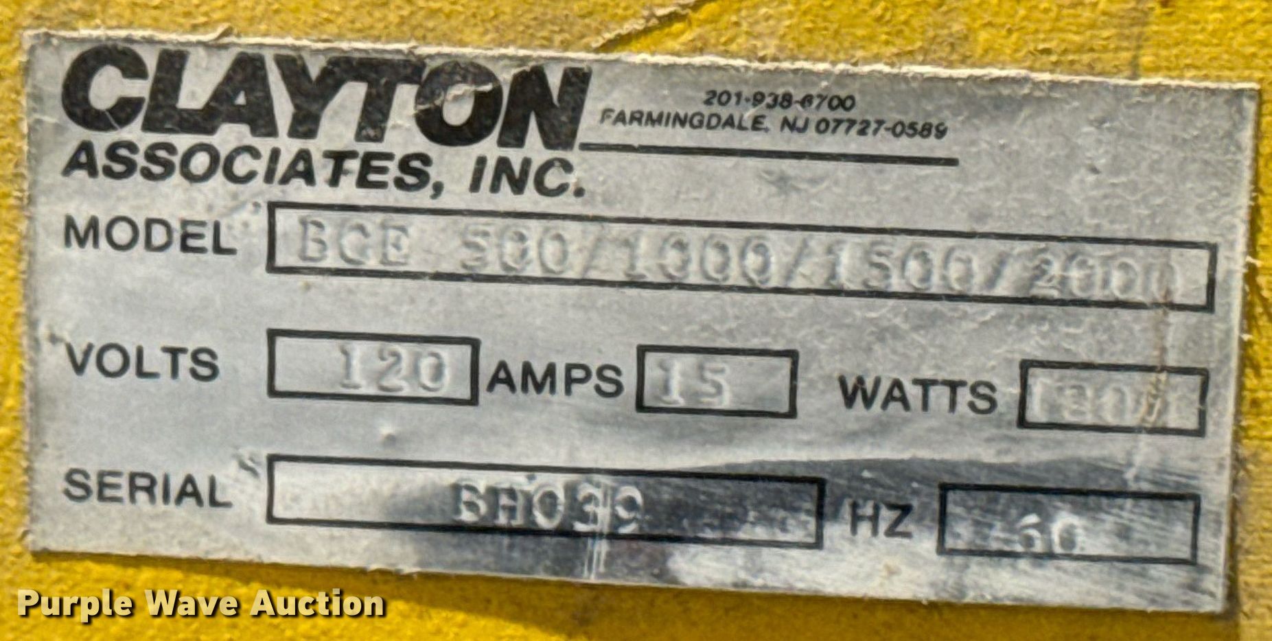 Clayton BCE 500 brake cleaner. Serial: BH039. Electric Motor Volts: 120, Phase: Single. Notes Additional filters included. Carroll County Secondary Roads. Carroll, IA 51401