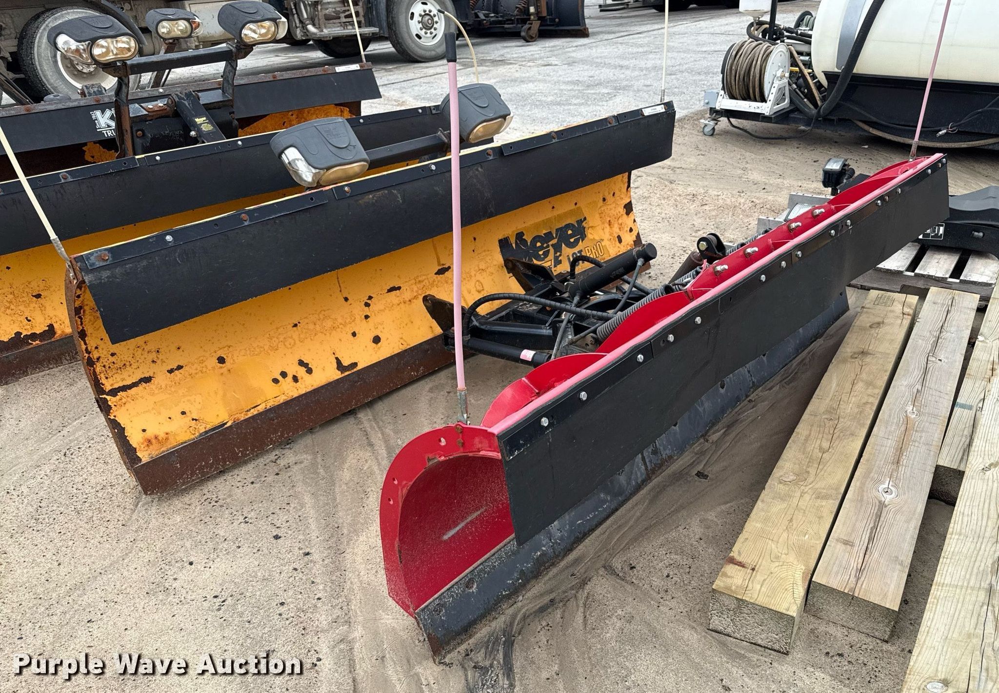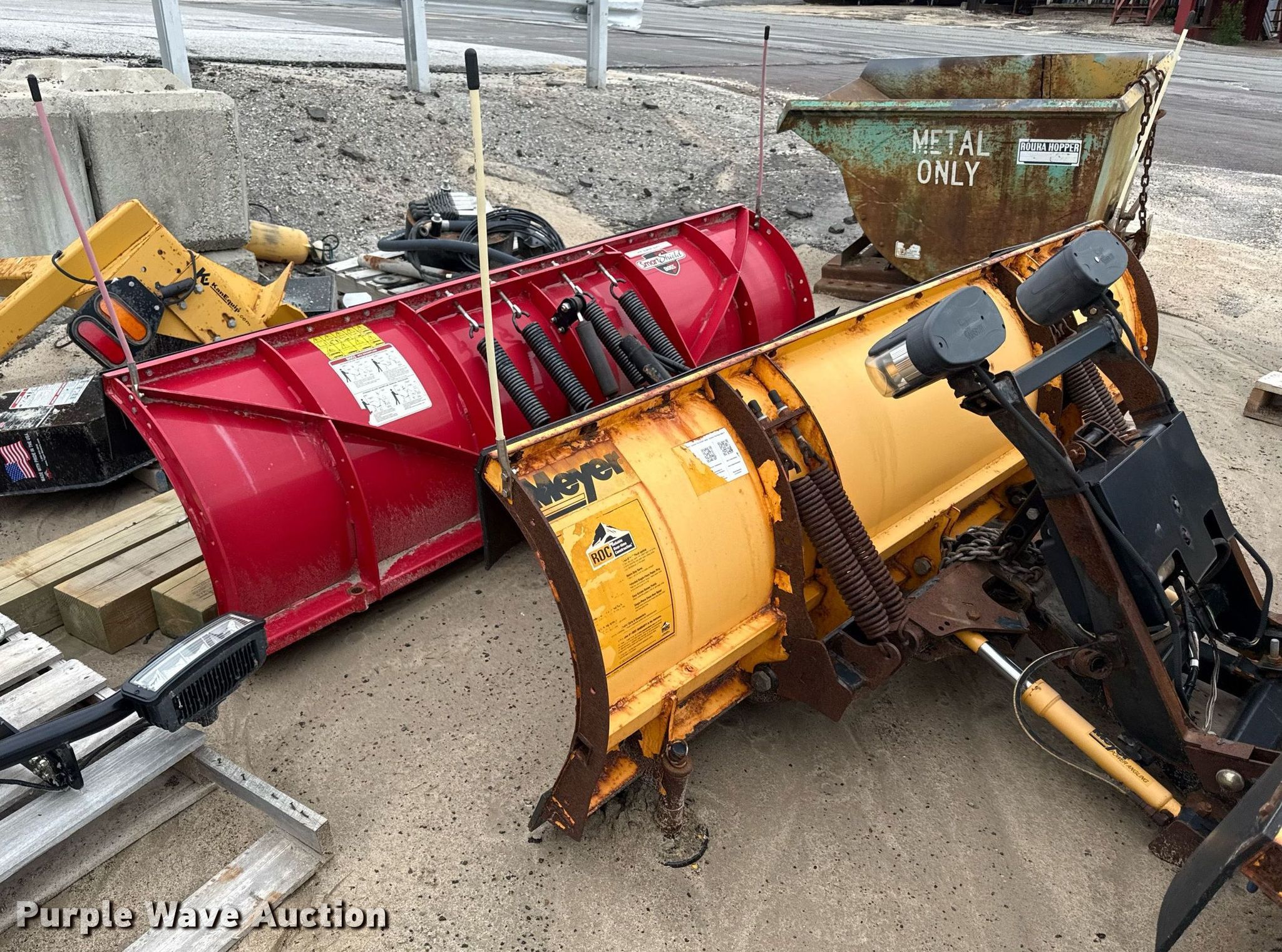Purple Wave is selling a used Automotive Parts or Acces. in Kansas. This item is a (2) snow plows with the following: Meyer snow plow, Width: 9', Boss snow plow, Width: 8'