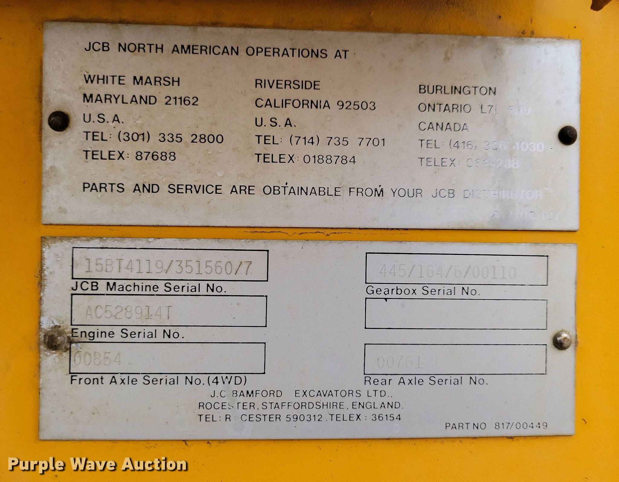 Purple Wave is selling a used Tractor Loader Backhoe in South Dakota. This item is a 1990 JCB 1550 B backhoe with the following: Hours: 4,559 on meter