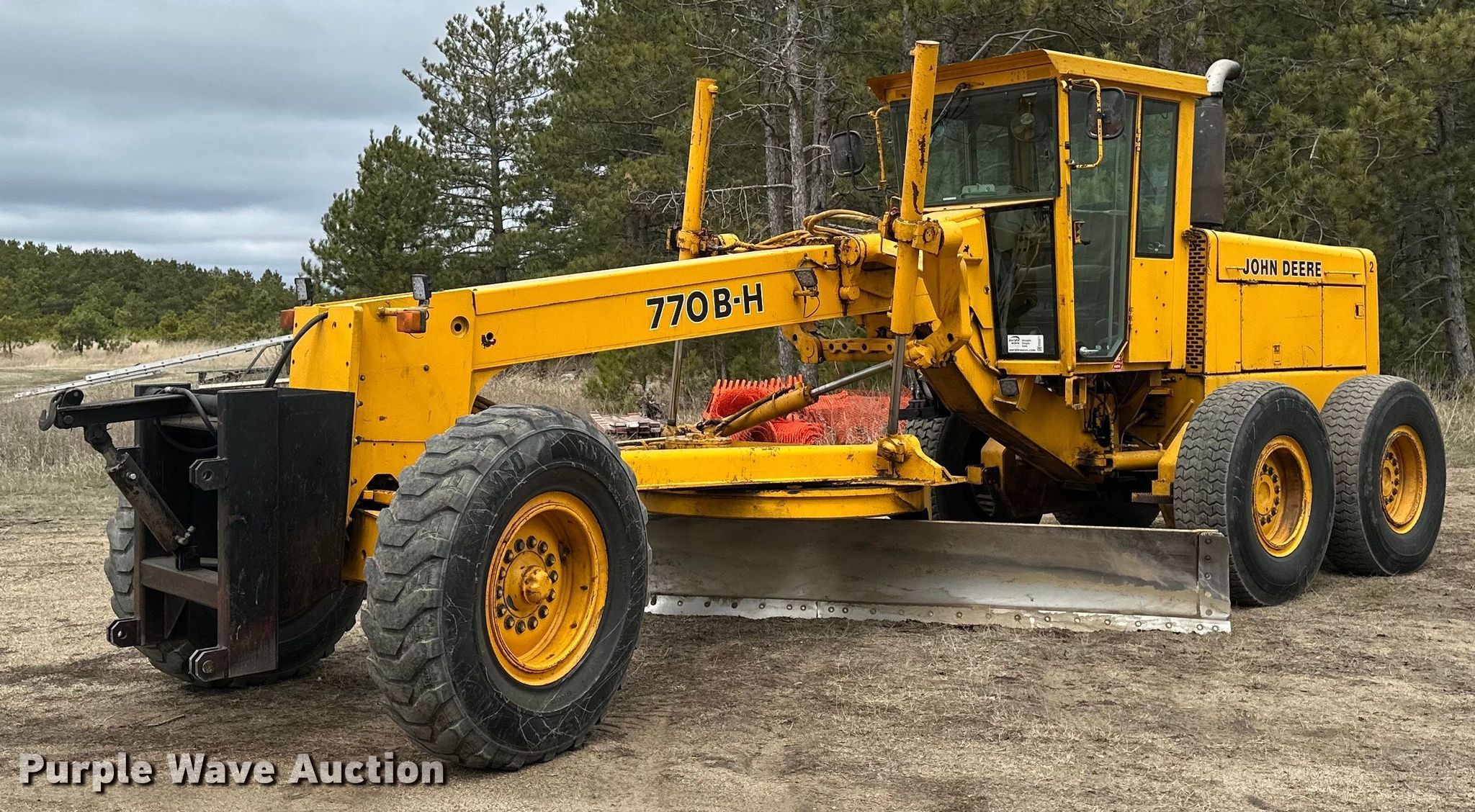 Purple Wave is selling a used Motor Grader in Minnesota. This item is a 1986 John Deere 770BH motor grader with the following: Hours: 1,198 on meter, Serial: DW770BH511821