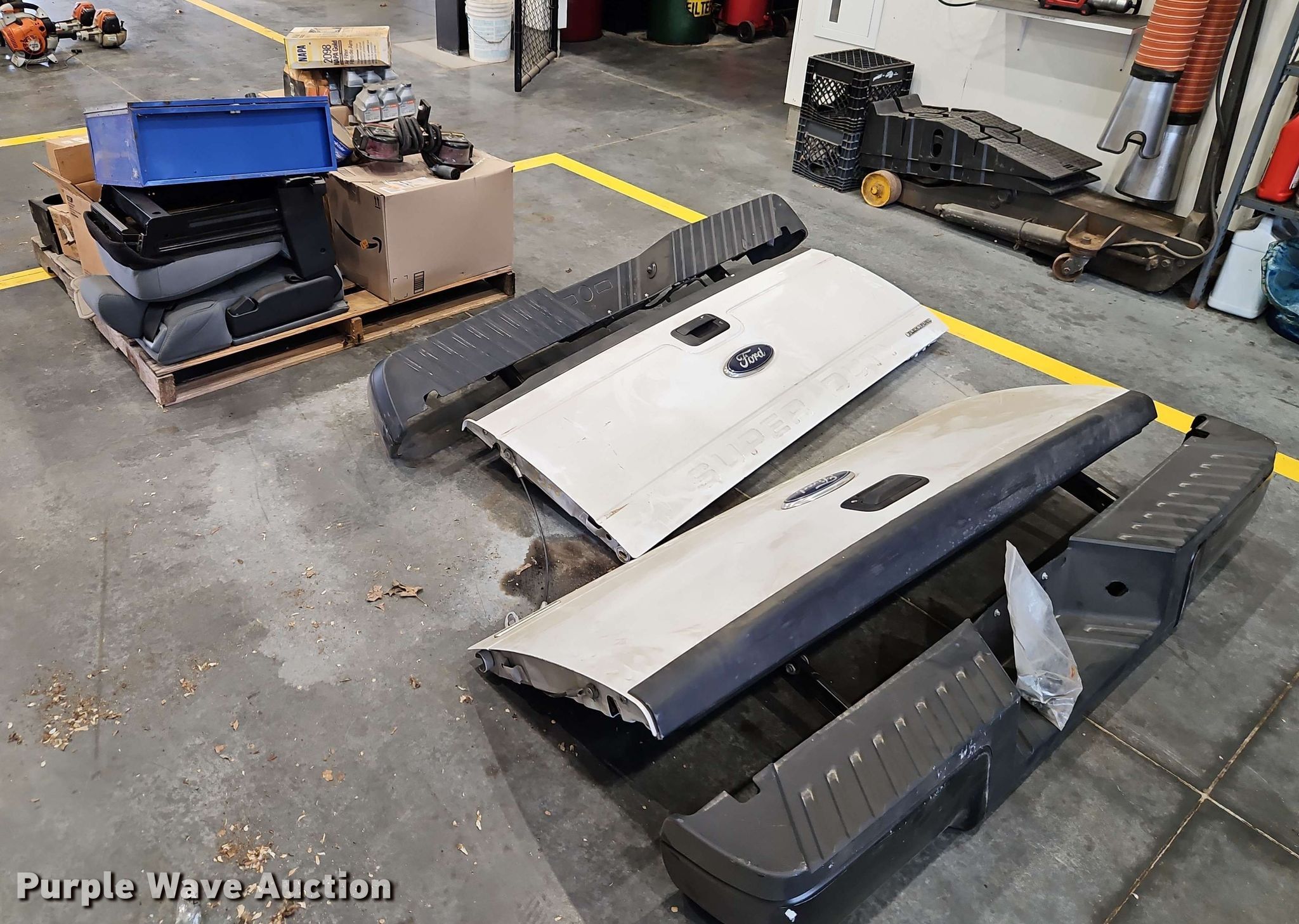 Purple Wave is selling a used Automotive Parts or Acces. in Kansas. This item is a (2) 2014 Ford F250 tailgates and rear bumper with the following: Parts, Tools