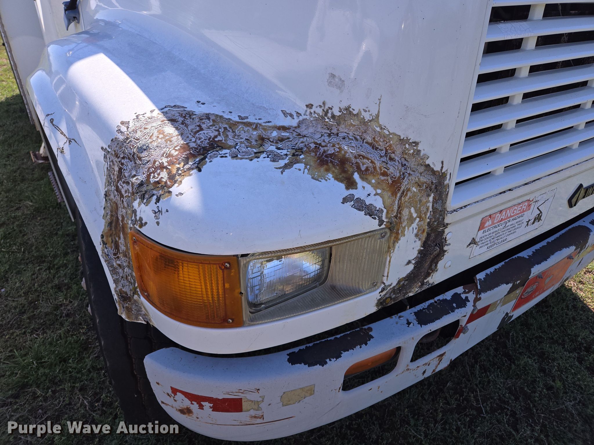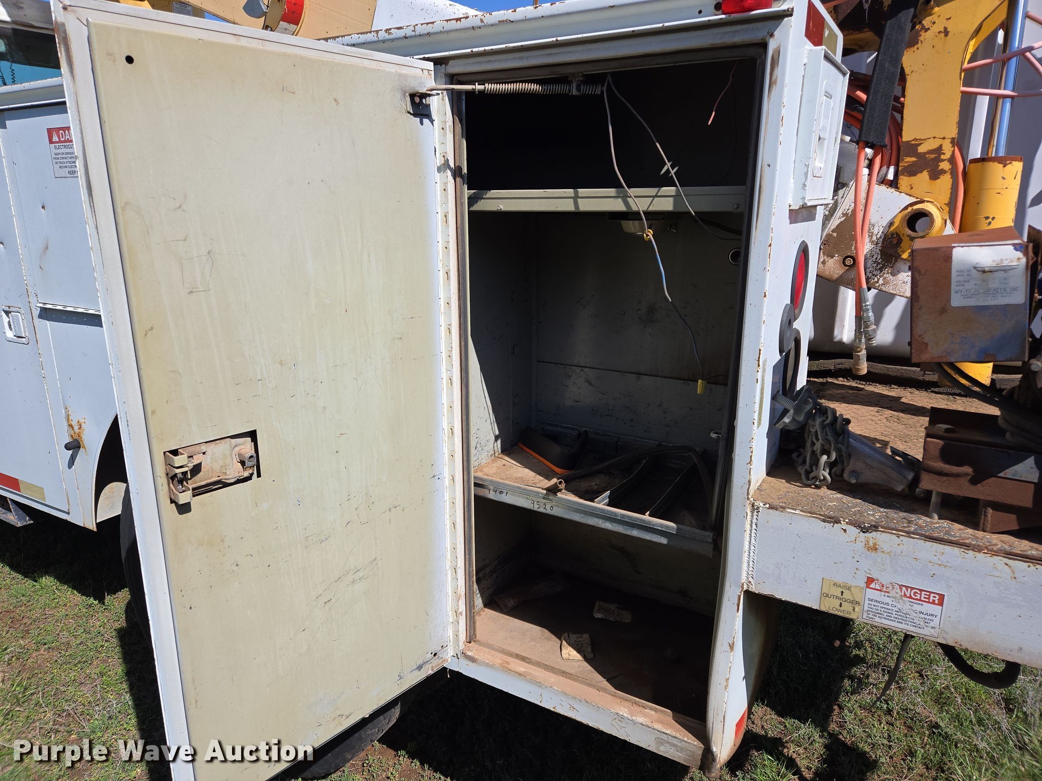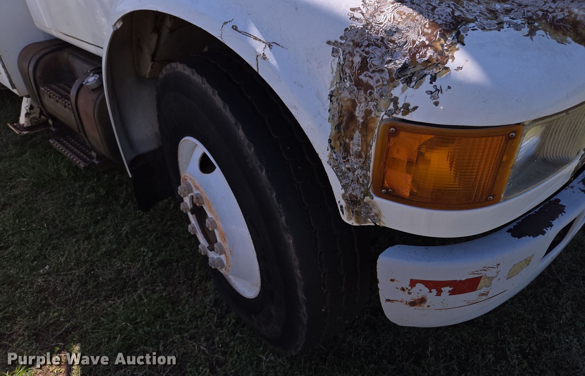 Purple Wave is selling a used Bucket Truck in Oklahoma. This item is a 2000 International 4700 bucket truck with the following: Miles: 79,806 on odometer, Hours: 11,132 on meter, VIN: 1HTSCABL1YH220518