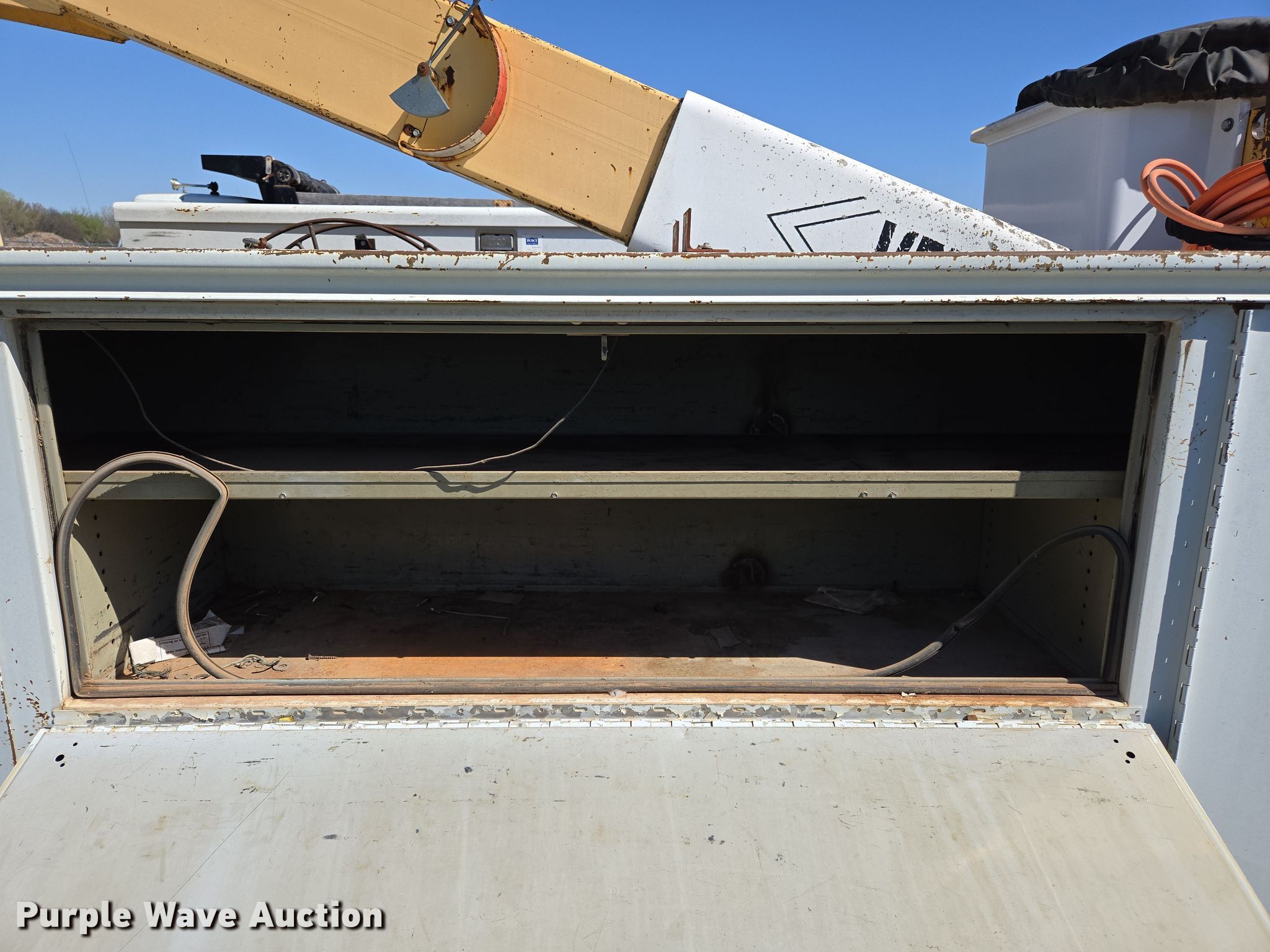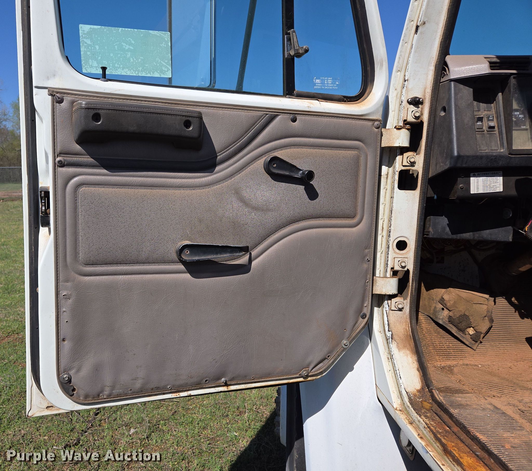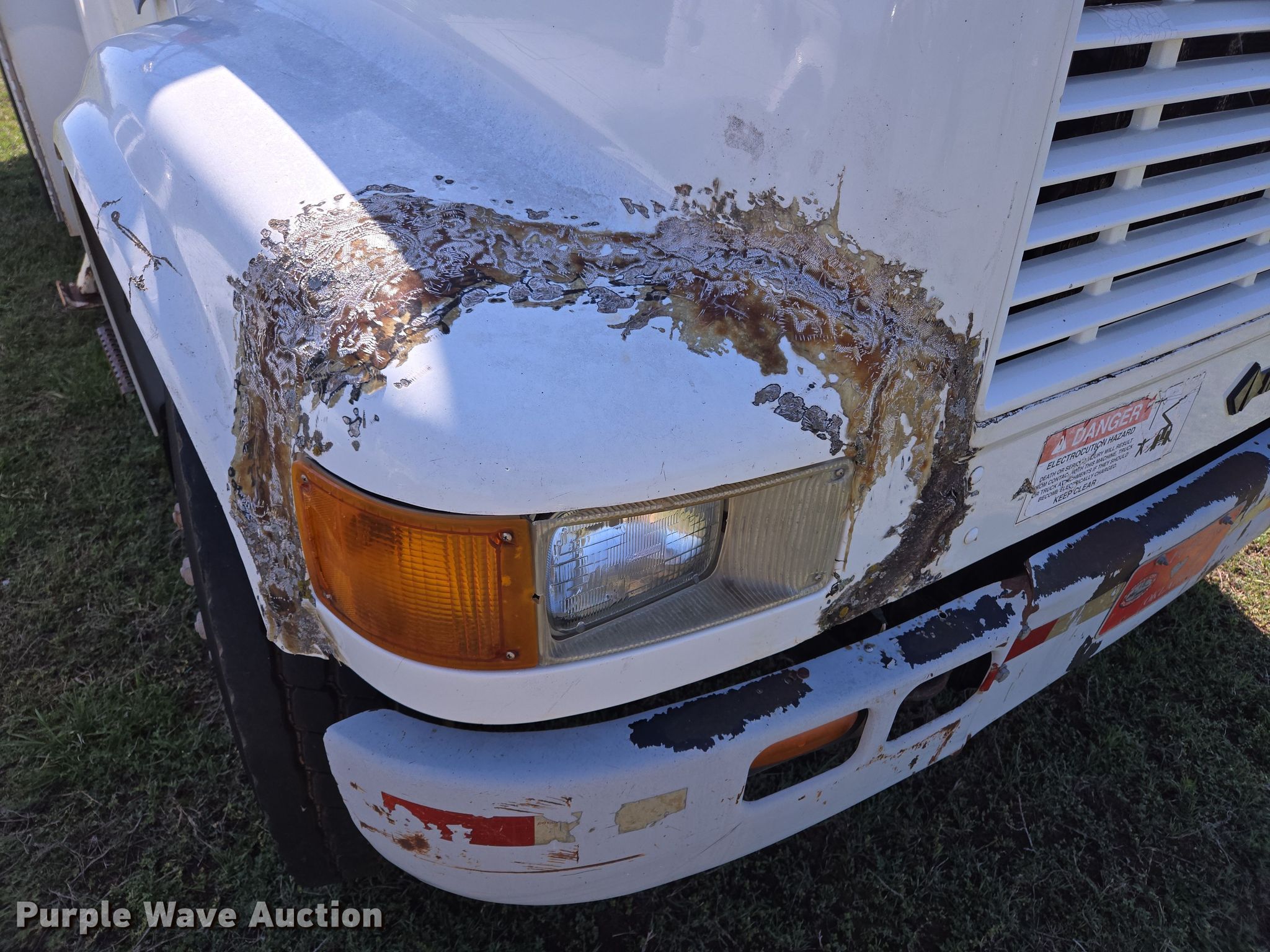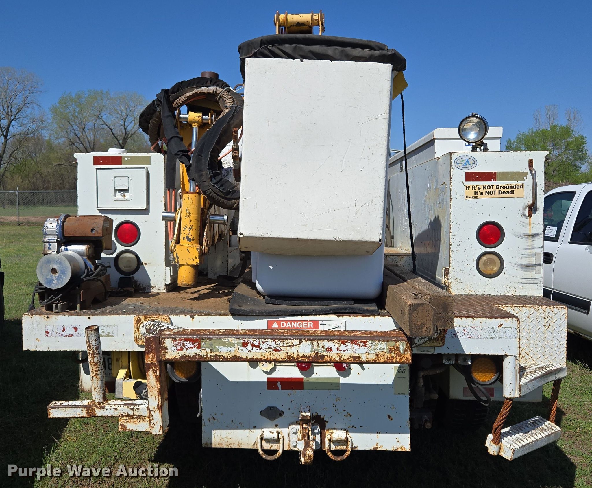 Purple Wave is selling a used Bucket Truck in Oklahoma. This item is a 2000 International 4700 bucket truck with the following: Miles: 79,806 on odometer, Hours: 11,132 on meter, VIN: 1HTSCABL1YH220518