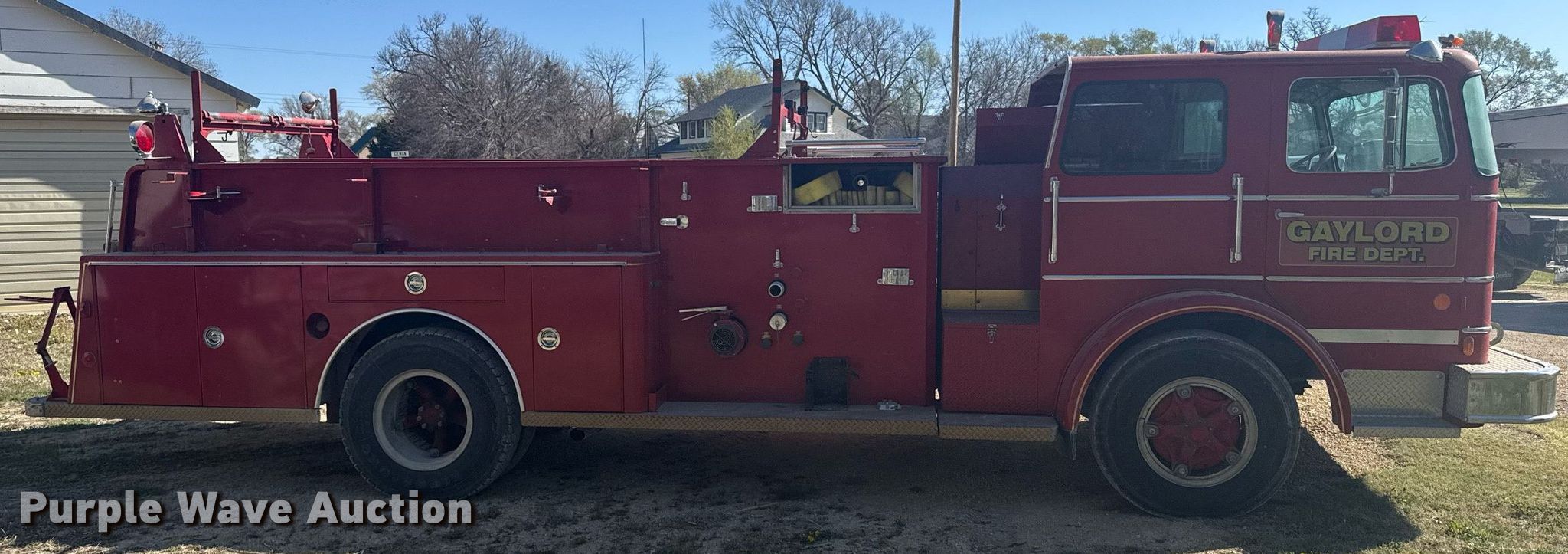 1971 International C0 8190 pumper fire truck. Miles: 13,687 on odometer, Hours: 1,378 on meter, VIN: 228902G426951. Engine Cylinders: 8, Fuel type: Gas. Transmission Manual, Speed: 5. Chassis Axles: Single, Suspension: Spring, Brakes: Hydraulic, GVWR: 30,500 lbs, Wheelbase: 164". Interior Heat. Features Fire truck body Tank Capacity: 400 gallons, Pump 1,000 gpm, PA/ siren controls. Tires Size: 9.00R20. Notes Dead battery. Kansas title. Title distribution may be delayed up to 14 days from verification of funds. Gaylord, KS 67638