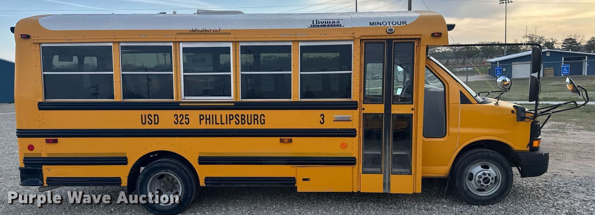 Purple Wave is selling a used Bus in Kansas. This item is a 2015 Thomas Built Savana G4500 school bus with the following: Miles: 114,016 on odometer, Hours: 4,825 on meter, VIN: 1GD675BG0E1142892