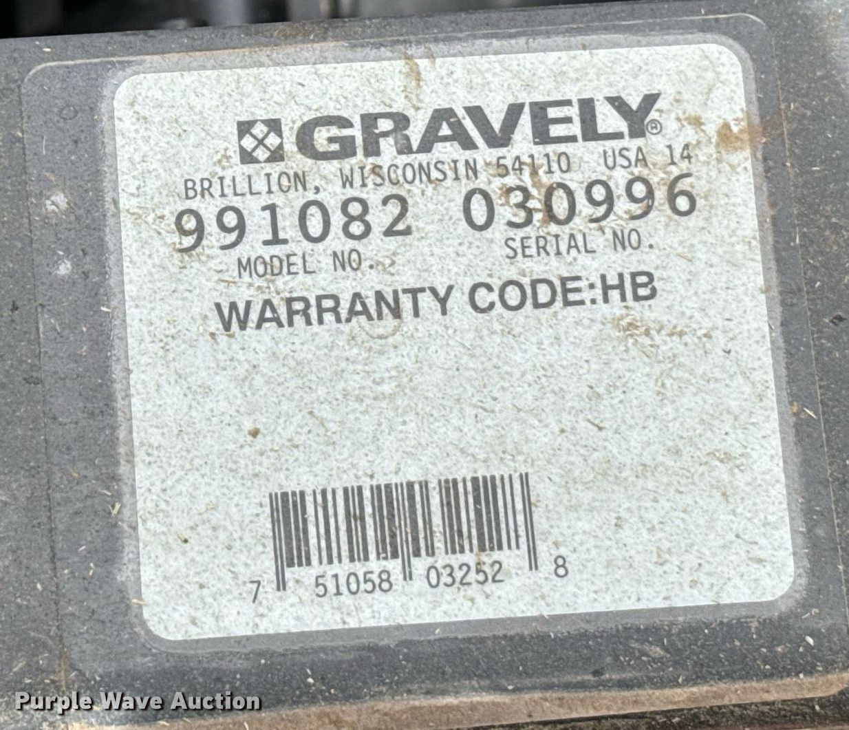 Purple Wave is selling a used Lawn Mower in Kansas. This item is a Gravely ZT 48 HD ZTR lawn mower with the following: Hours: 1,316 on meter, Cutting width: 48", Serial: 030996