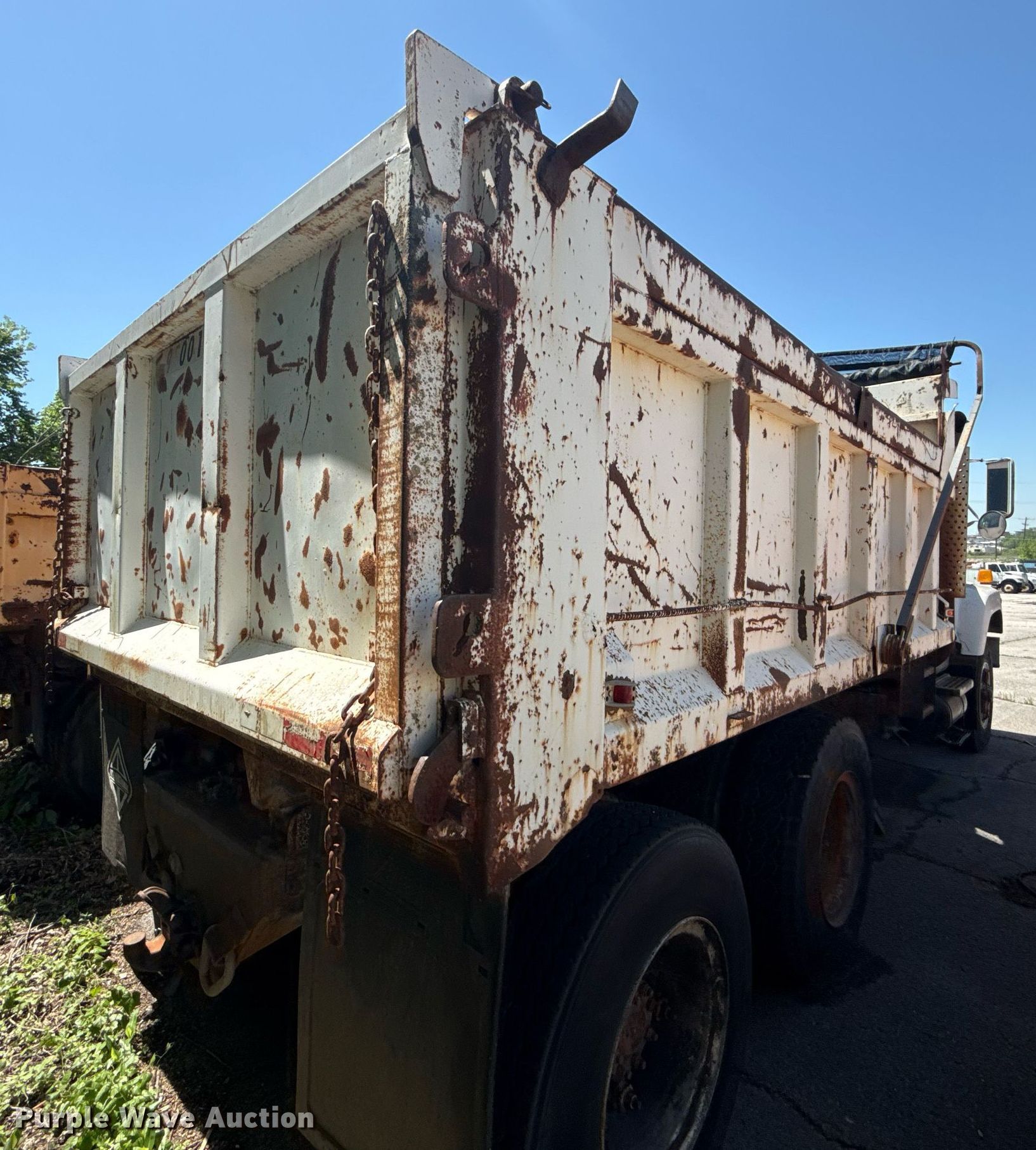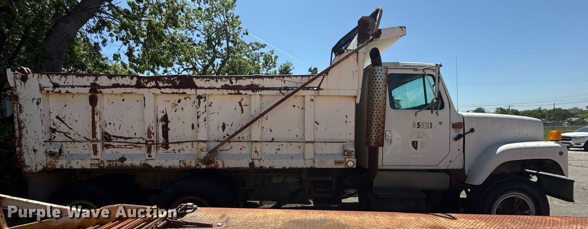 1995 International 2554 dump truck. Miles: 84,047 on odometer, Hours: 5,075 on meter, VIN: 1HTGCAAR9SH633919, Unit #: 405. Engine Displacement: 7.6L, Cylinders: 6, Fuel type: Diesel. Transmission Automatic. Chassis Axles: Tandem, Differential lock: Inter-axle, Suspension: Spring over walking beam, Brakes: Air, PTO. Interior AC, Heat, Brake controller. Features Dump bed Leland, 14' L x 96" W, Side height: 40", Side board height: 7", Bed type: Steel, Roll tarp, End gate: Manual. Tires Front: 11R22.5, Rear: 10.00R20. Notes Dead battery, Non-operational unit Unit must be towed or hauled. Oklahoma title. Seller is a government entity who will be assigning and distributing the title. Please contact the seller for distribution questions. Title distribution may be delayed up to 30 days from verification of funds. City of Tulsa. 108 N Trenton Ave. Tulsa, OK 74120