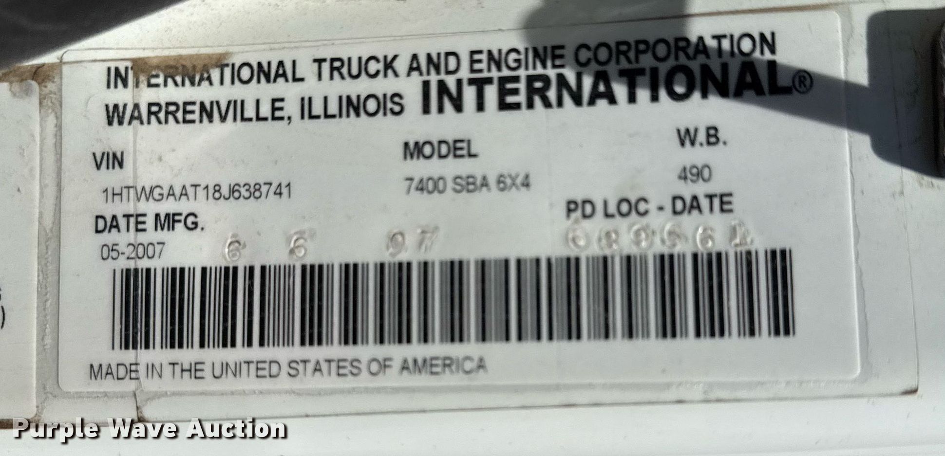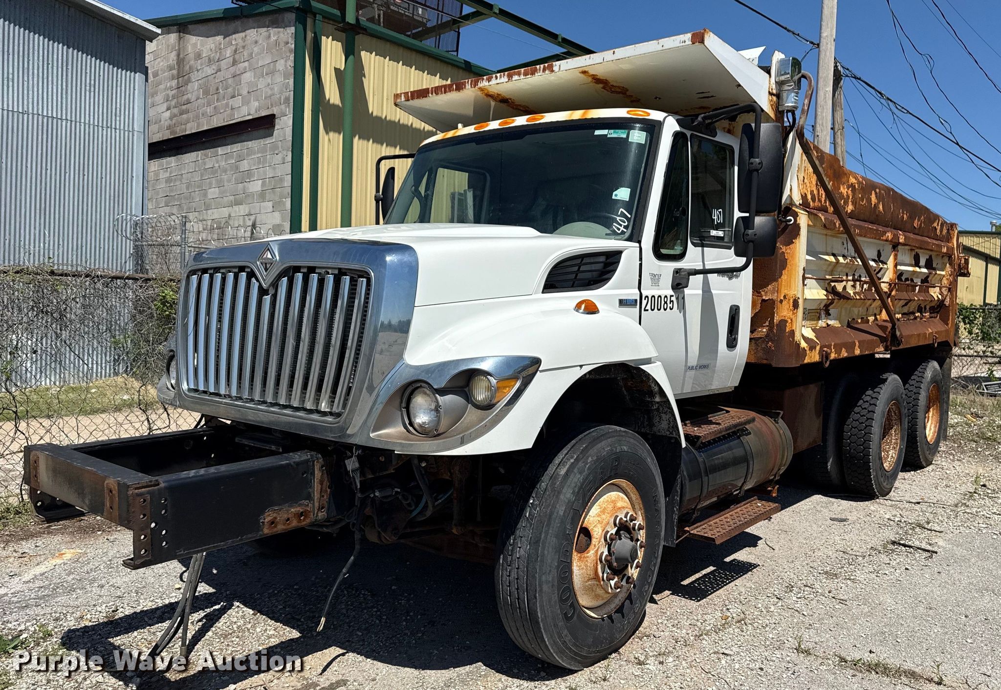 Purple Wave is selling a used Construction Dump Truck in Oklahoma. This item is a 2008 International 7400 dump truck with the following: Miles: Unknown, VIN: 1HTWGAAT18J638741, Unit #: 407