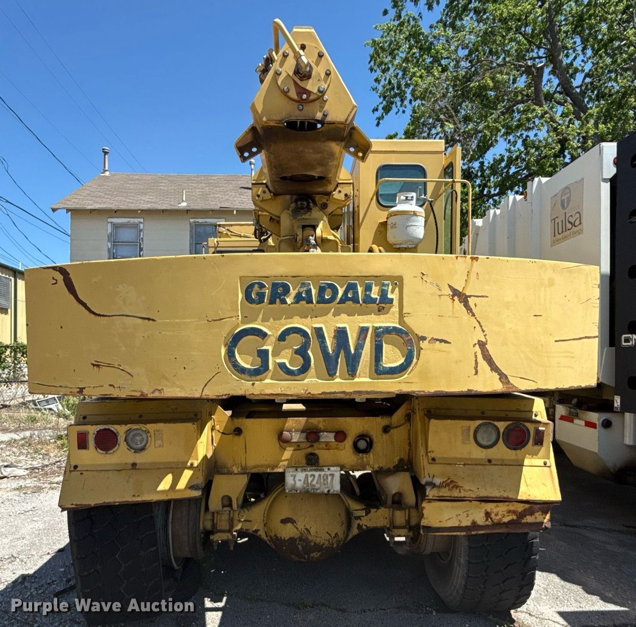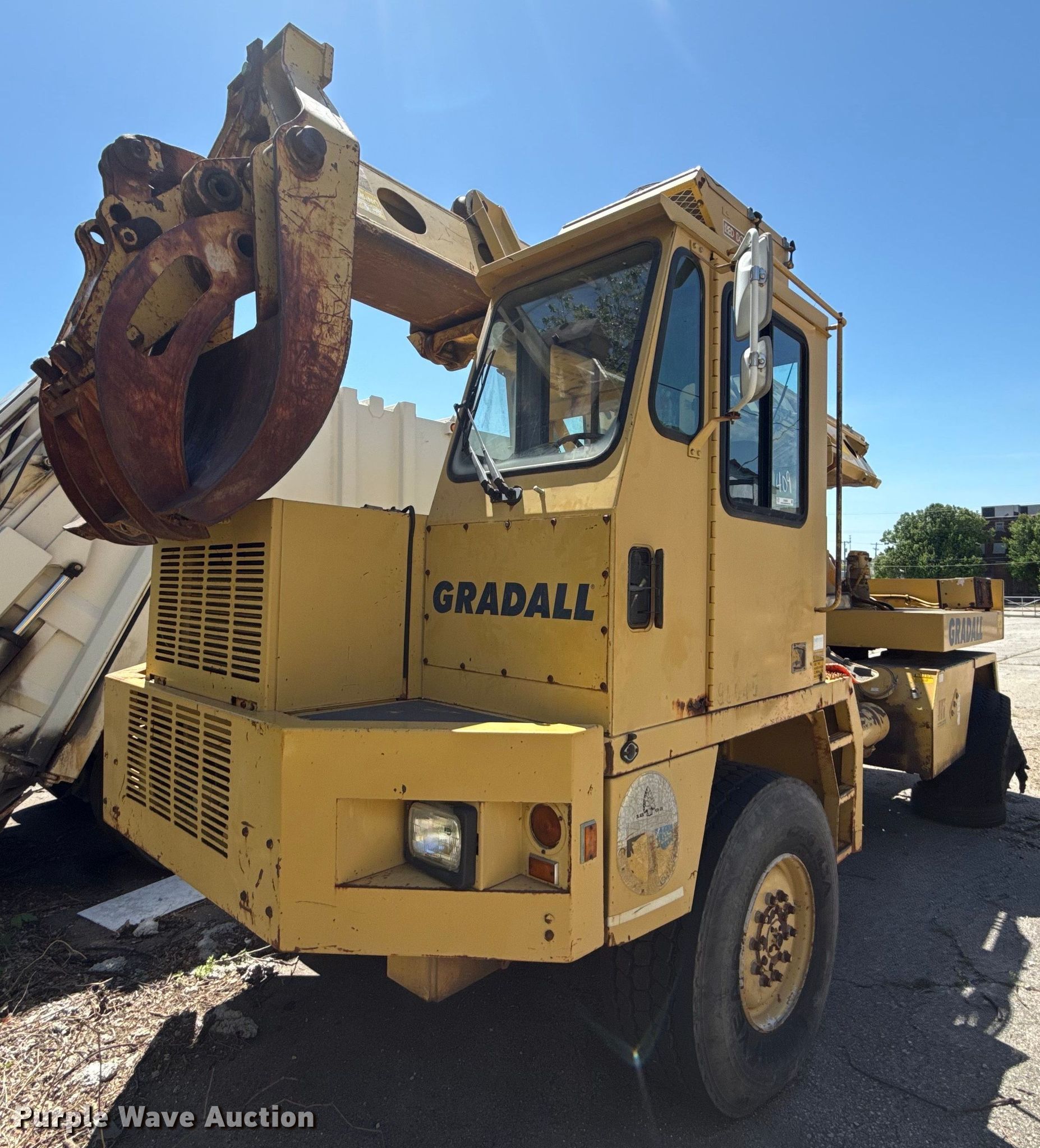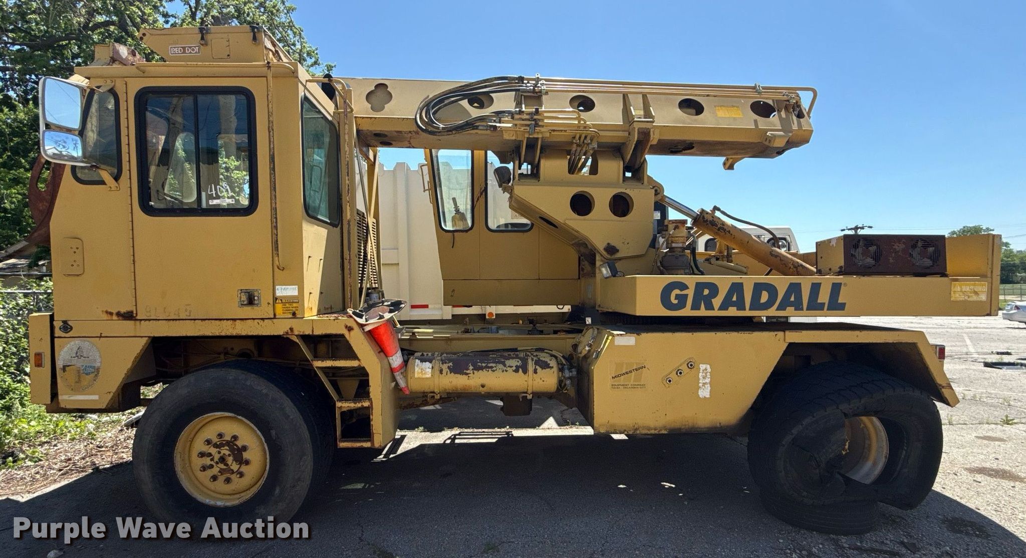Purple Wave is selling a used Wheeled Excavator in Oklahoma. This item is a 1996 Gradall G3WD wheeled excavator with the following: Miles: 27,804 on odometer, Hours: 6,530 on meter, Serial: 0135348, Unit #: 408