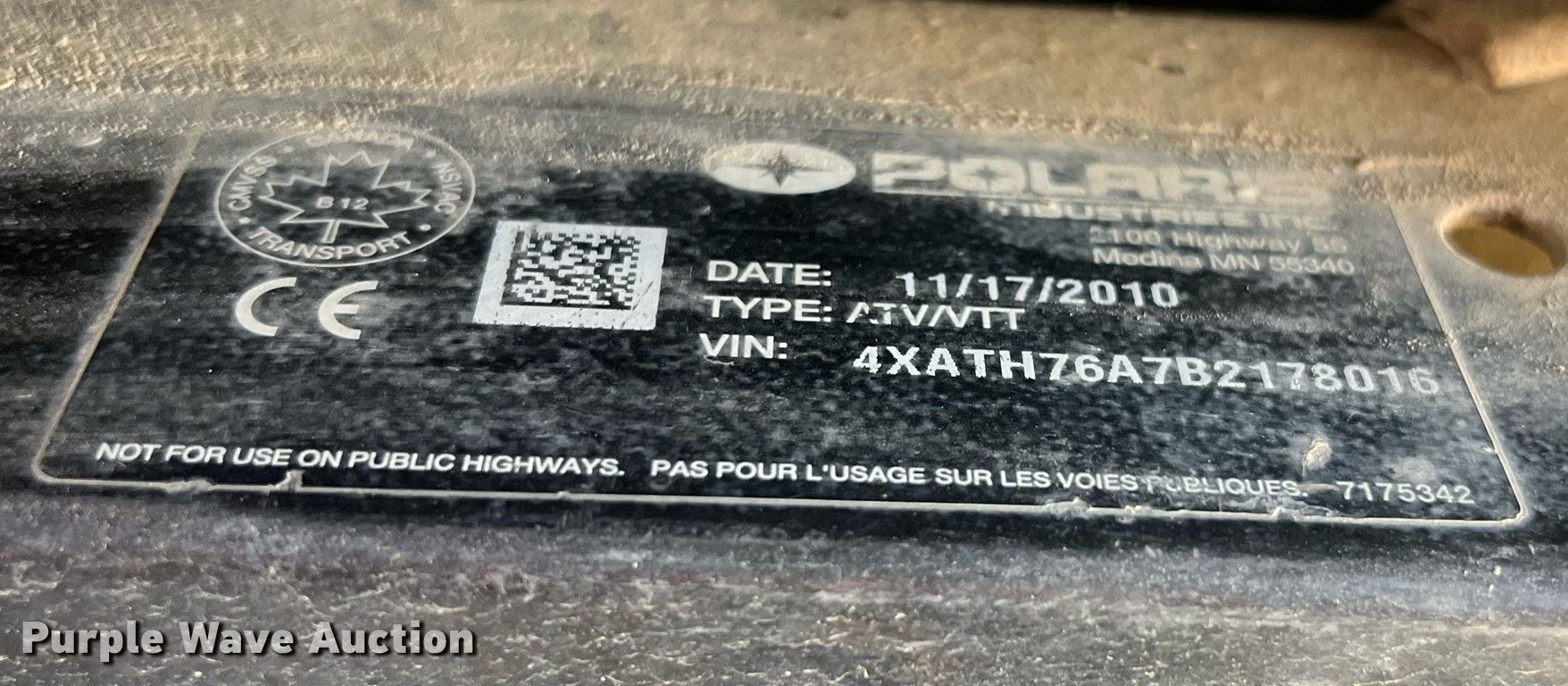 Purple Wave is selling a used Utility Vehicle in Oklahoma. This item is a 2011 Polaris Ranger XP utility vehicle with the following: Miles: 6,756 on odometer, VIN: 4XATH76A7B2178016, Unit #: 702
